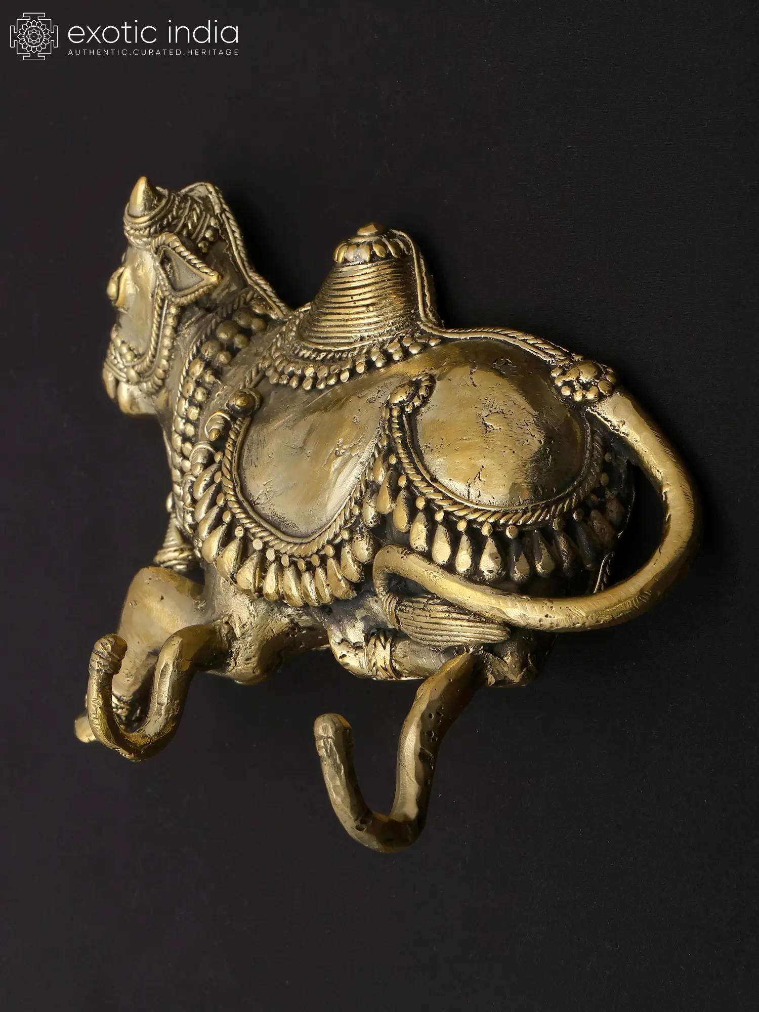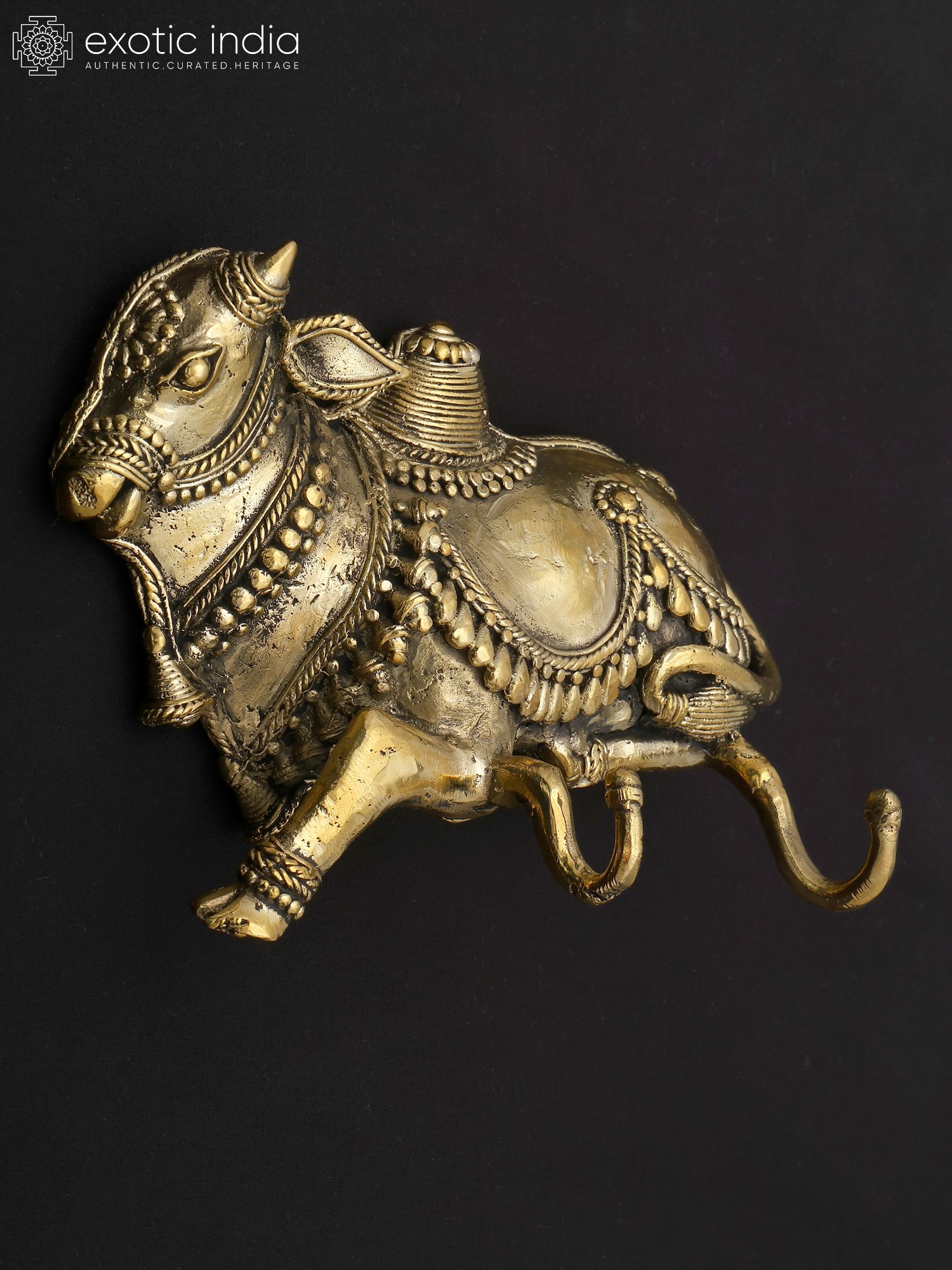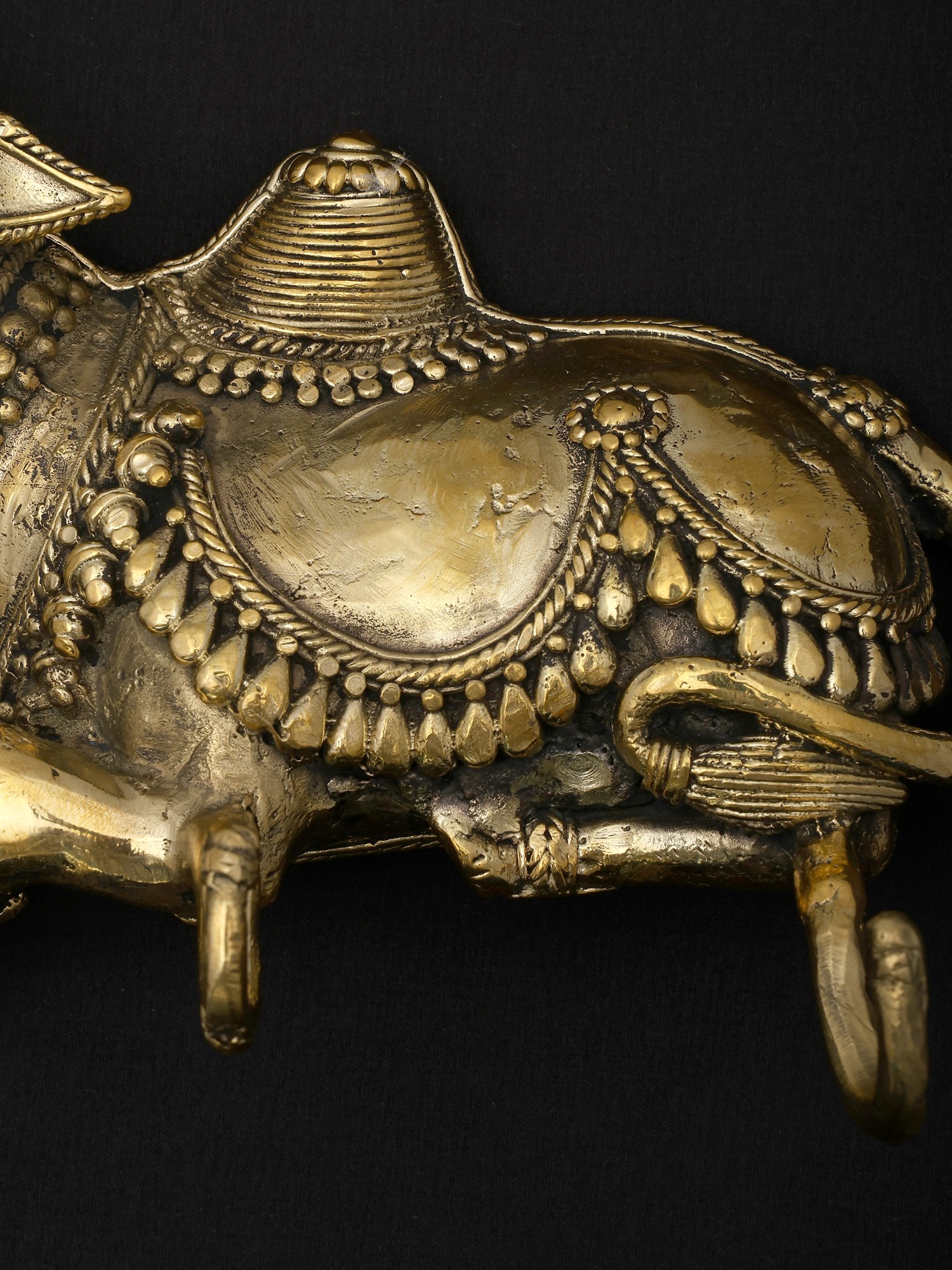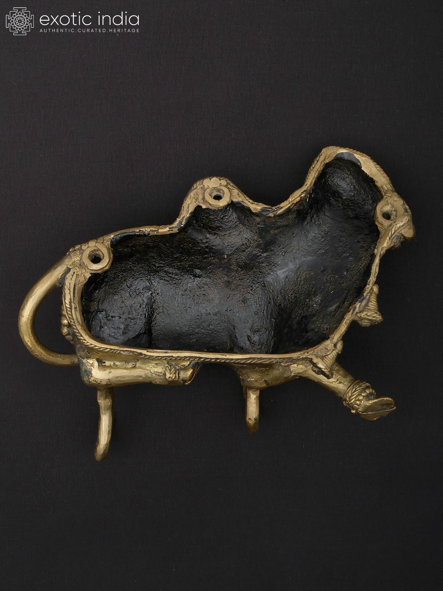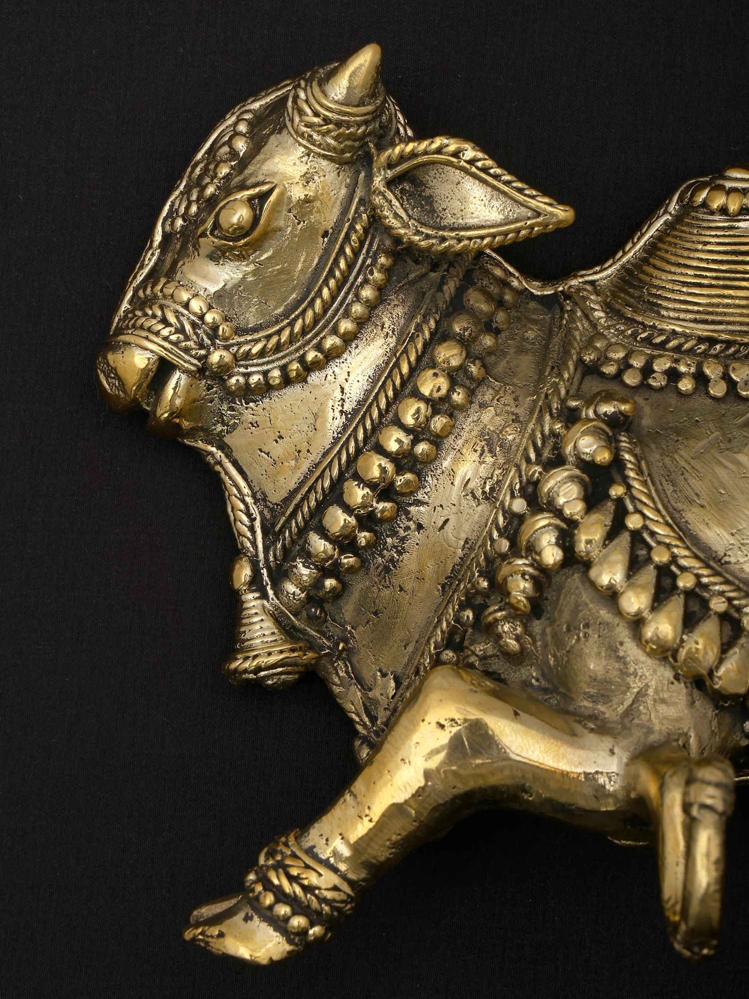 Nandi in Ananda- Bull of Lord Shiva Brass Statue on Wooden Base