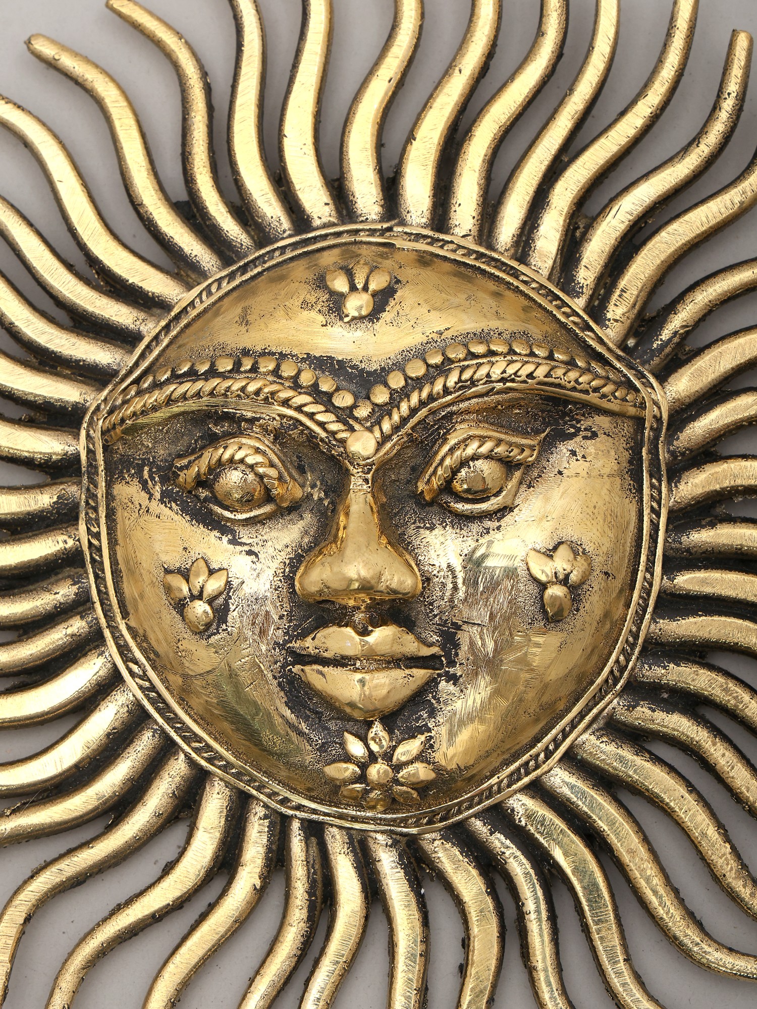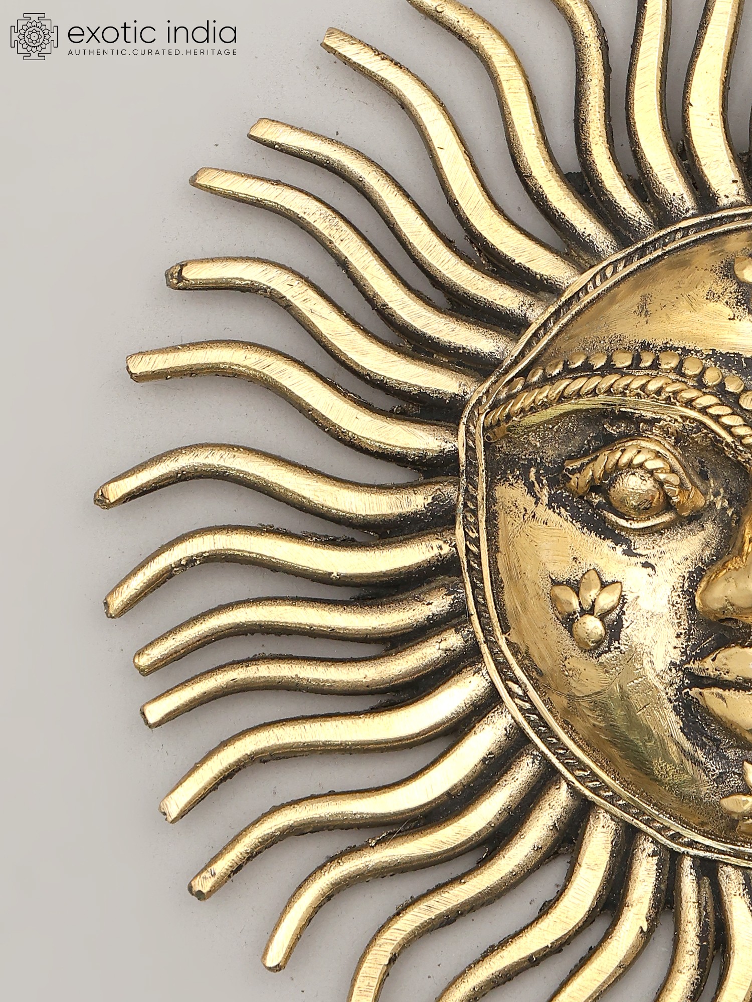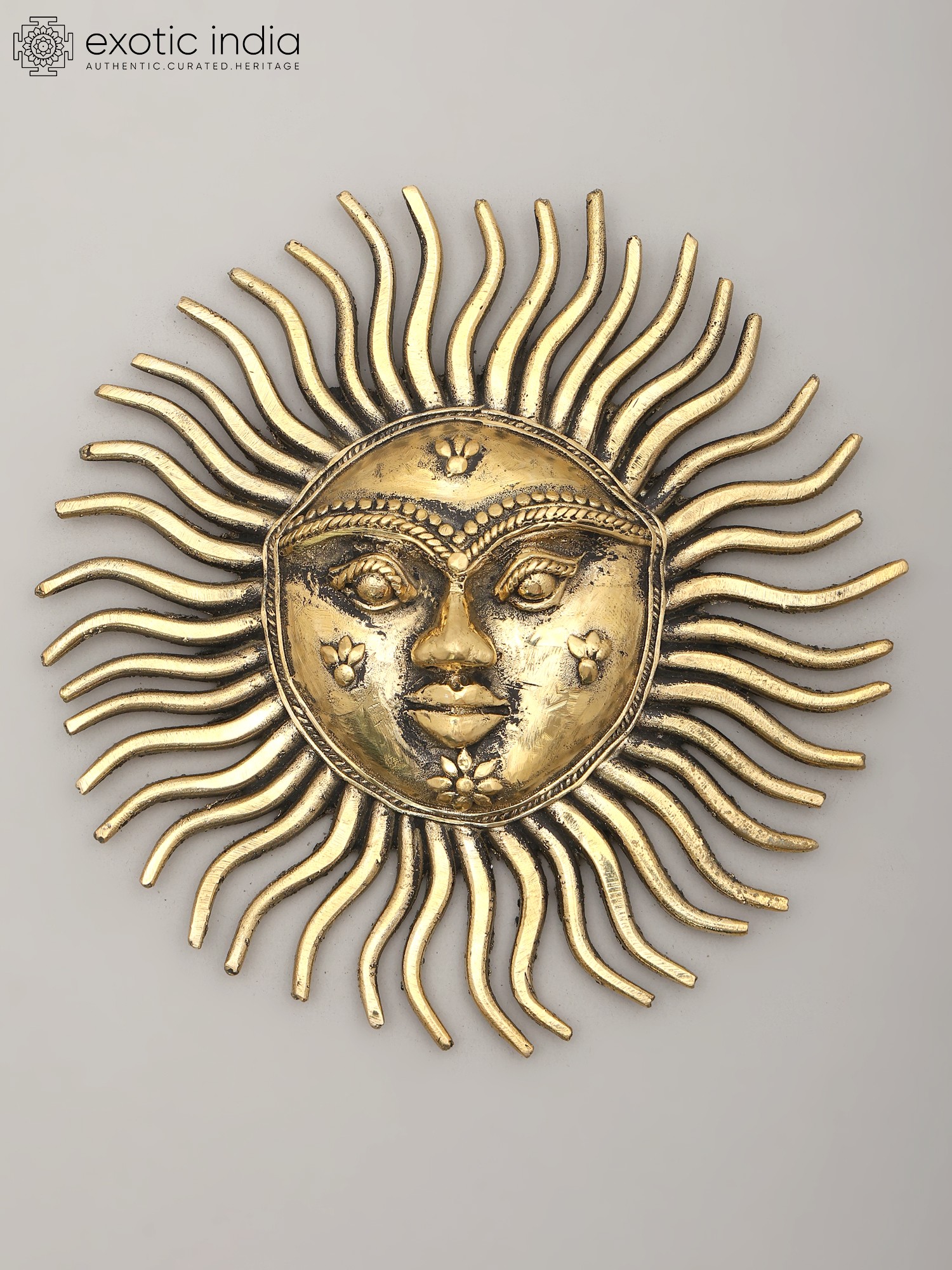 8" Surya Wall-Hanging Statue: Auspicious Motif of Sun with Bells in Brass | Handmade | Made in India
