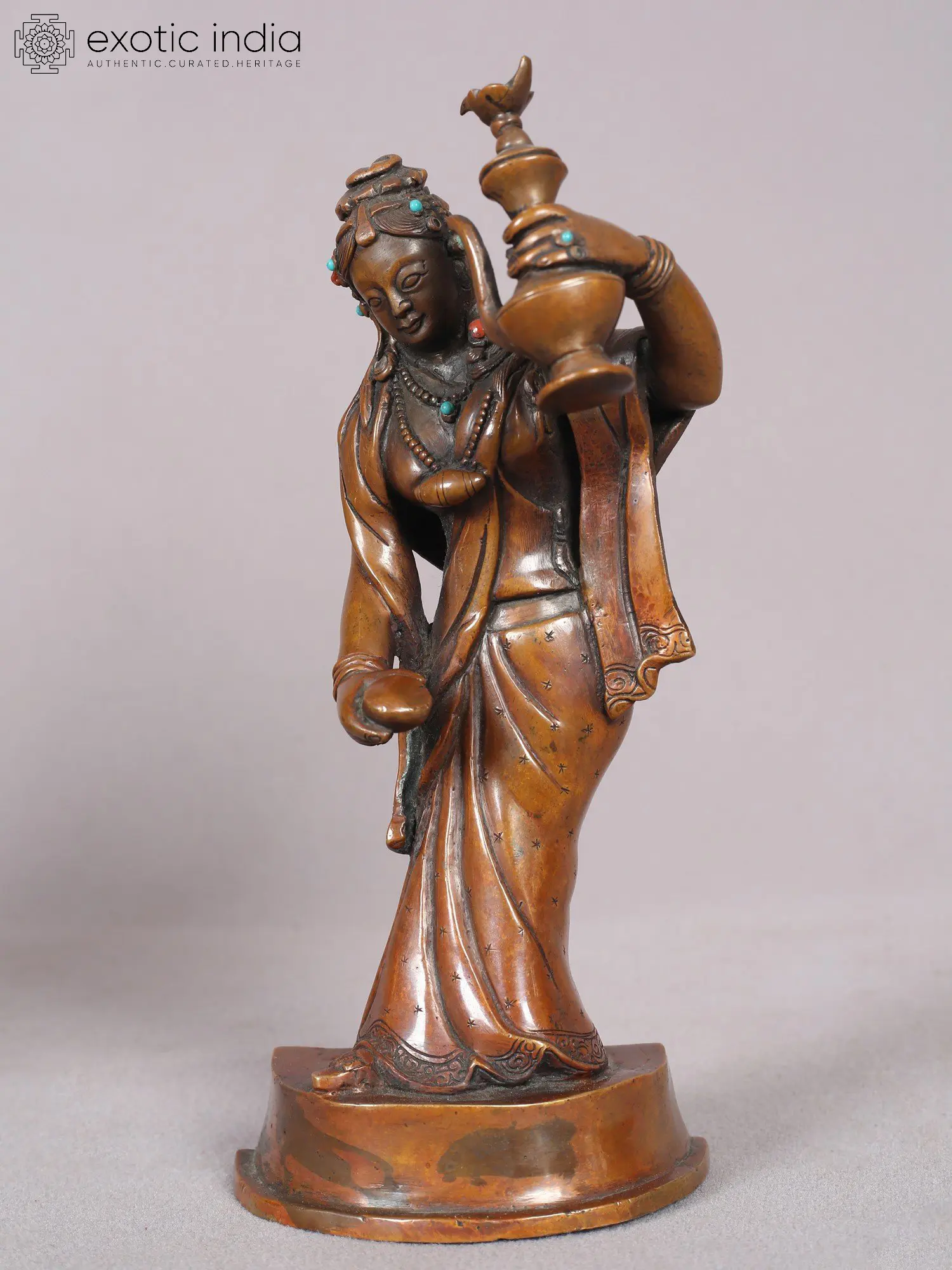 This sculpture gracefully embodies the essence of the Wine Lady, showcasing her hands delicately cradling a vessel of wine—the epitome of pleasure and celebration. Her inviting gaze and captivating smile extend an alluring invitation to partake in life's abundance of joys. This exquisite representation transcends temporal and cultural boundaries, symbolizing the timeless and universal appreciation of beauty and the celebration of life's precious moments. Whether displayed for aesthetic delight or as a conversation piece, the Wine Lady sculpture infuses any setting with a touch of sophistication, allure, and a reminder to savor life's pleasures.