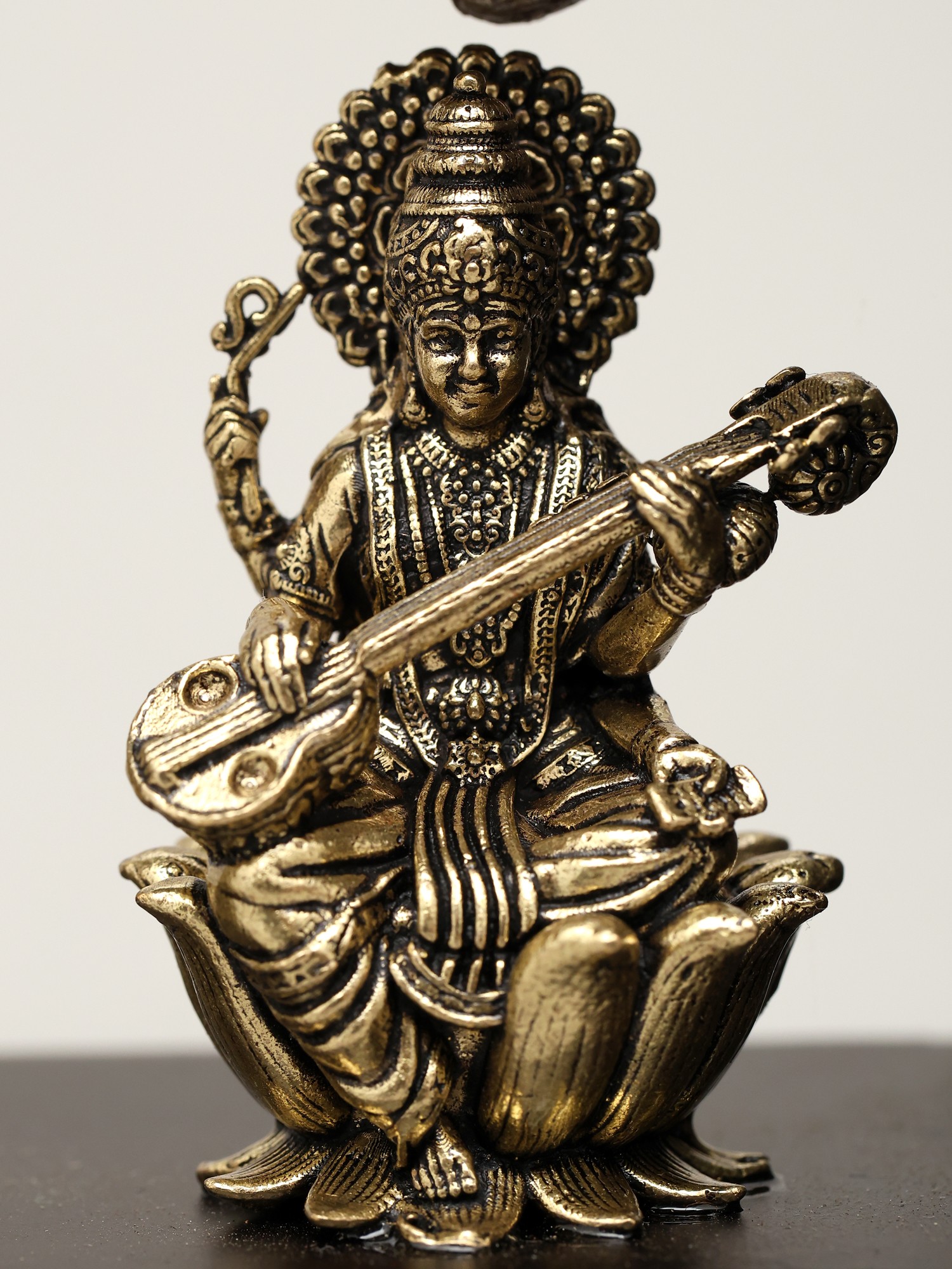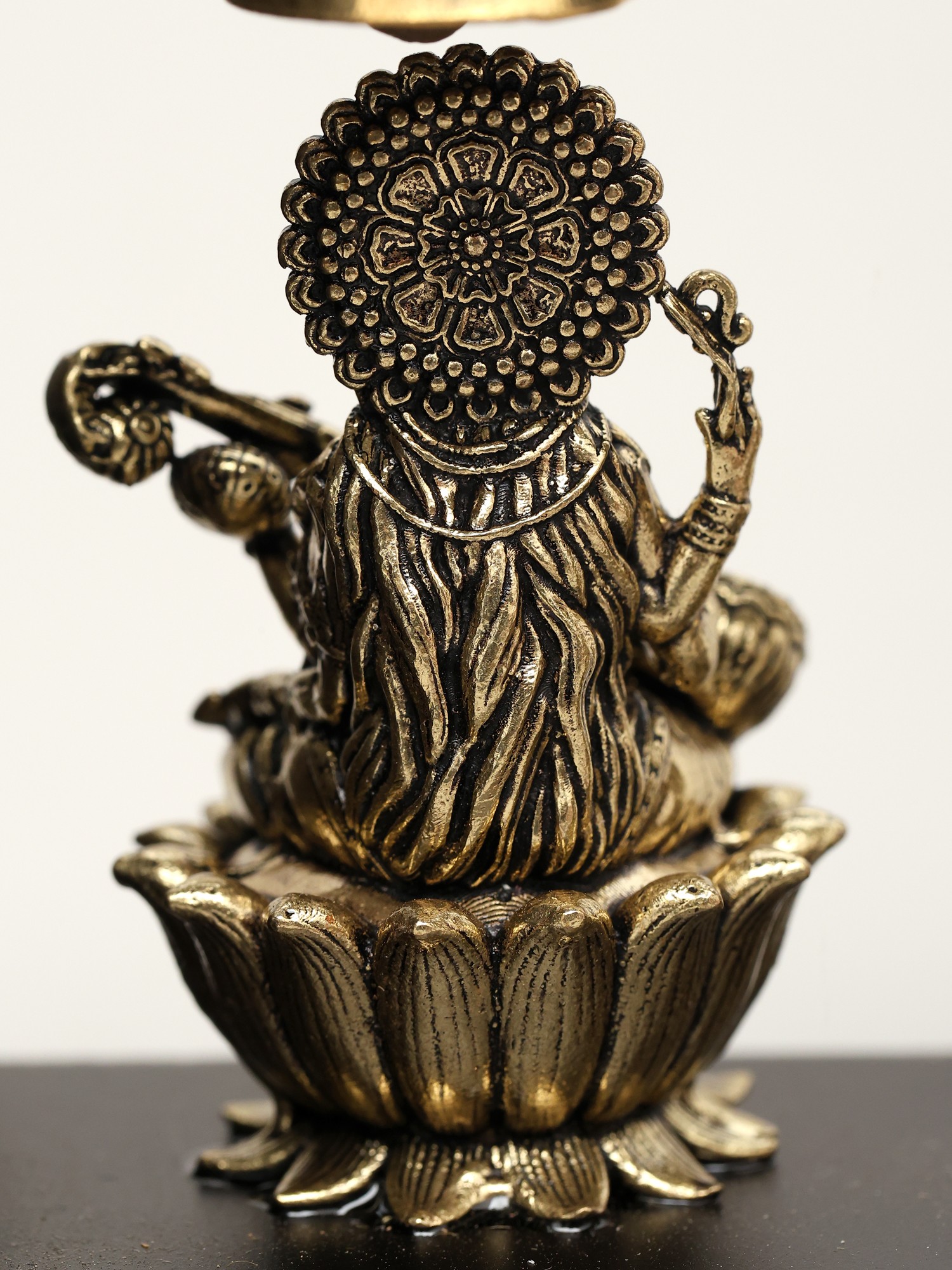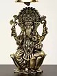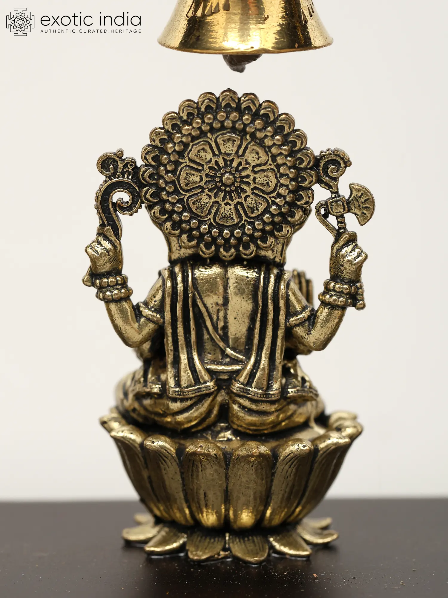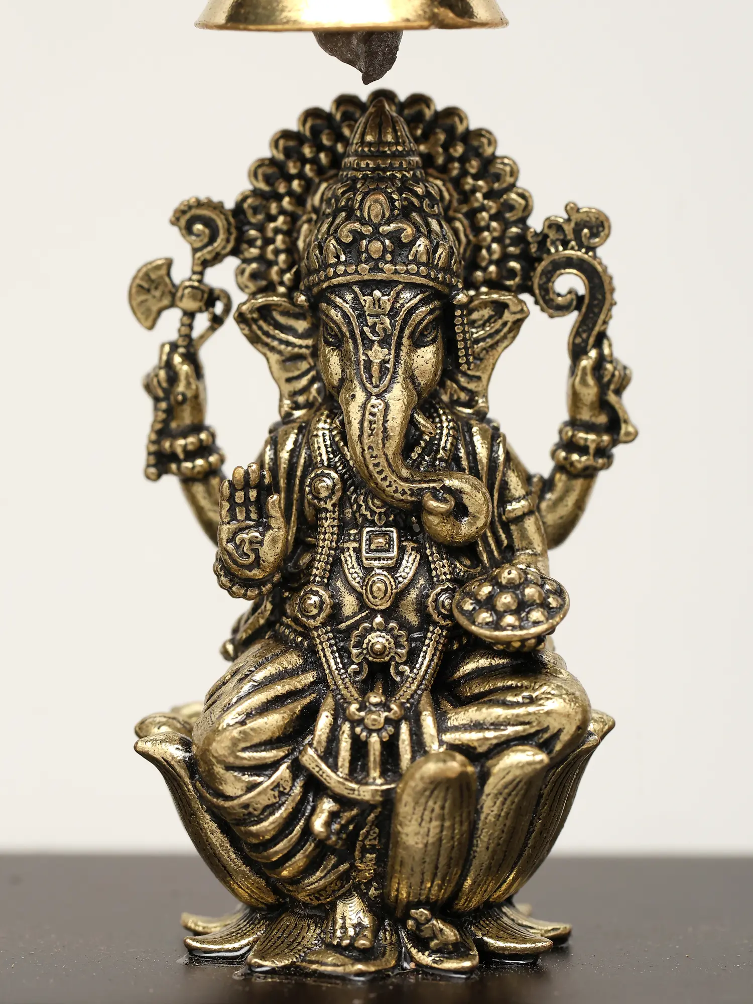 12" Superfine Sitting Lakshmi Ganesha with Dangling Bells | Wood Framed Brass Sculptures | Wall Hanging