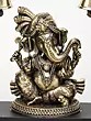 6" Small Four Armed Sitting Lord Ganesha | Brass Statue with Inlay Work