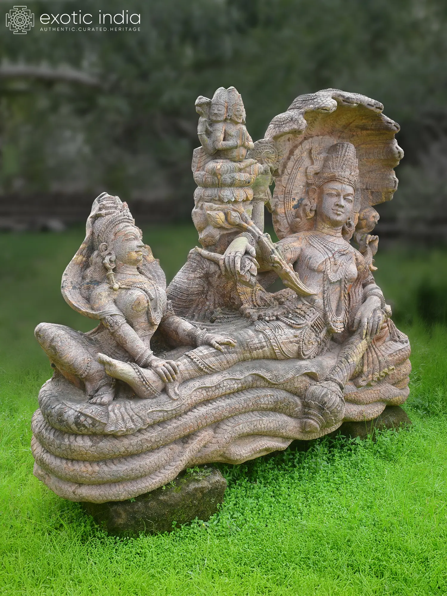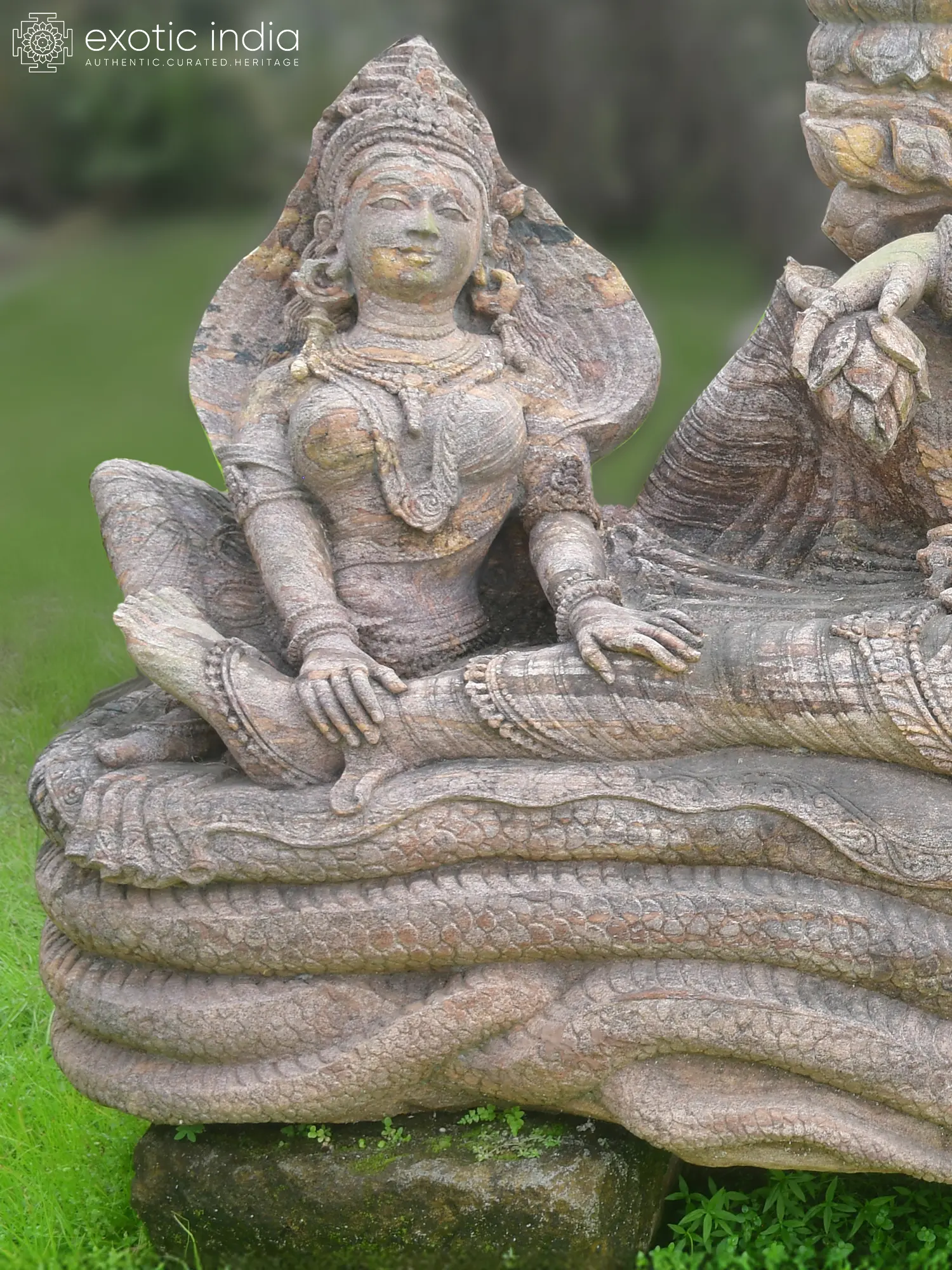 48" Large Sheshashayi Lord Vishnu with Goddess Lakshmi | Granite Stone Statue