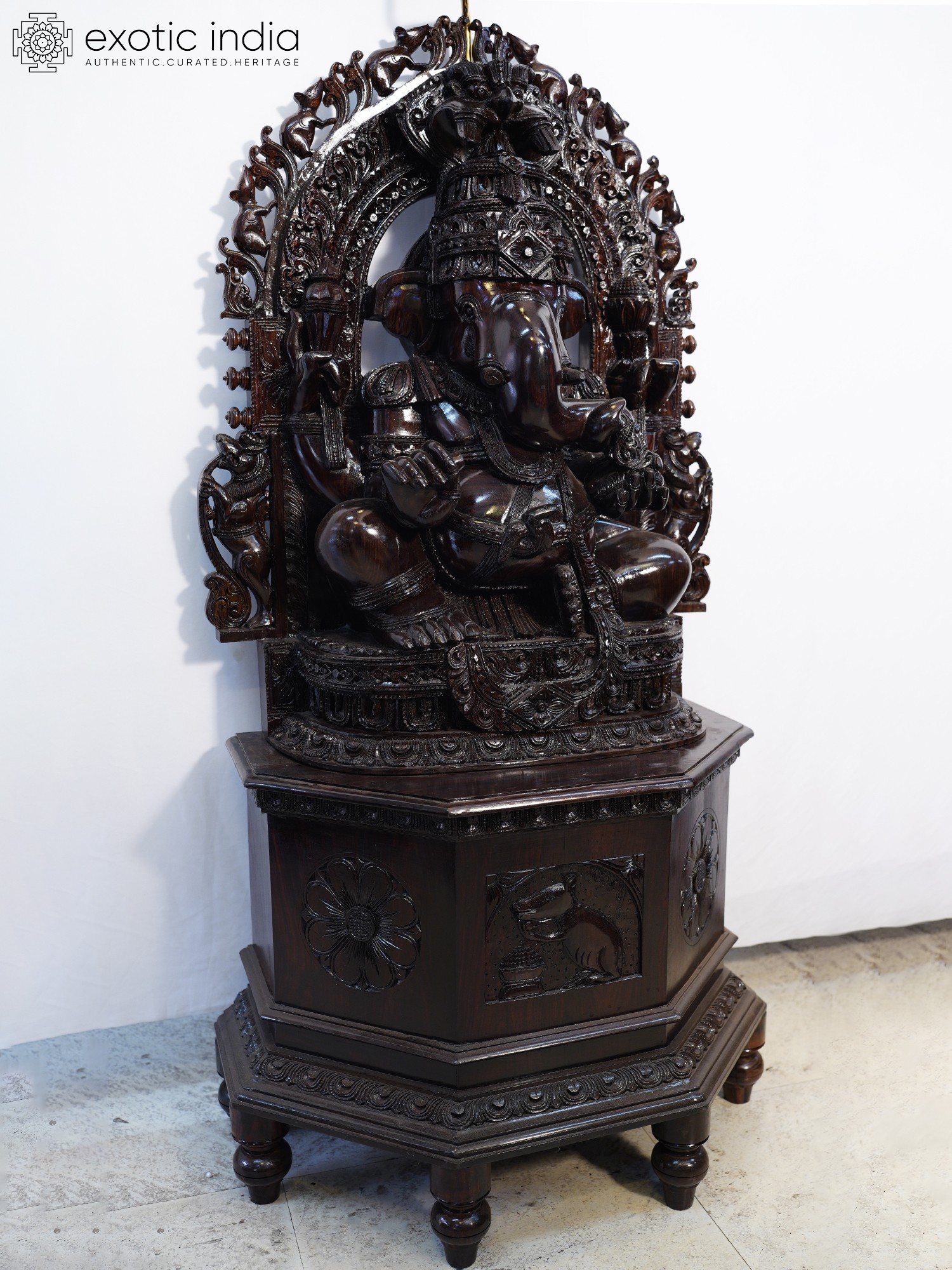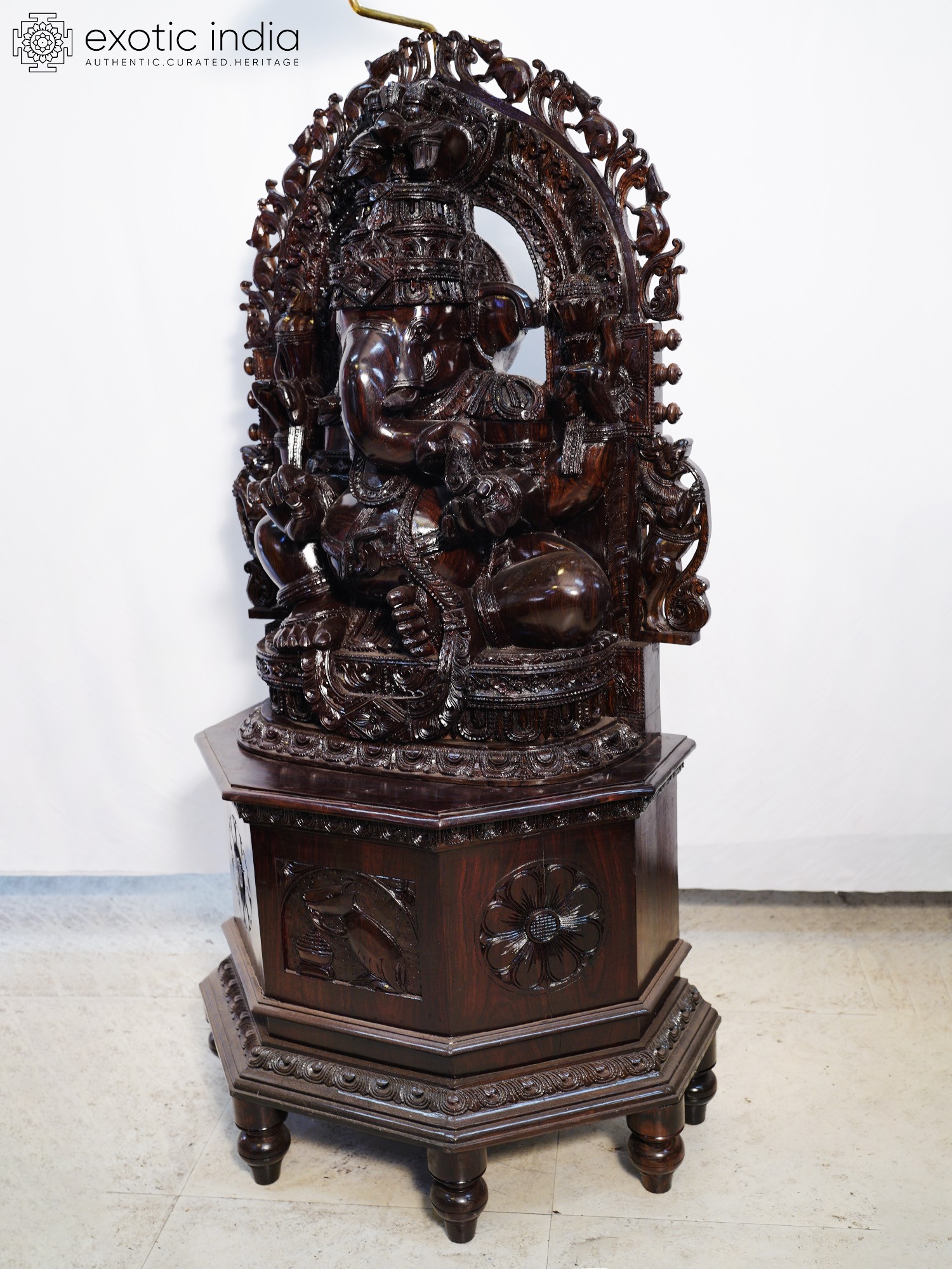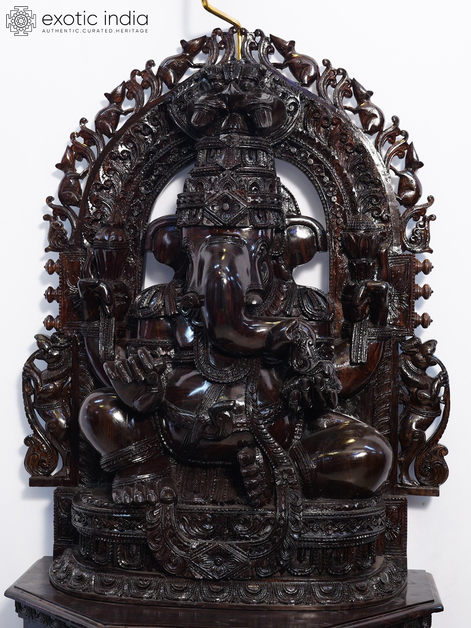 Large Size Lord Ganesha Wooden Statue Seated atop His Vahana