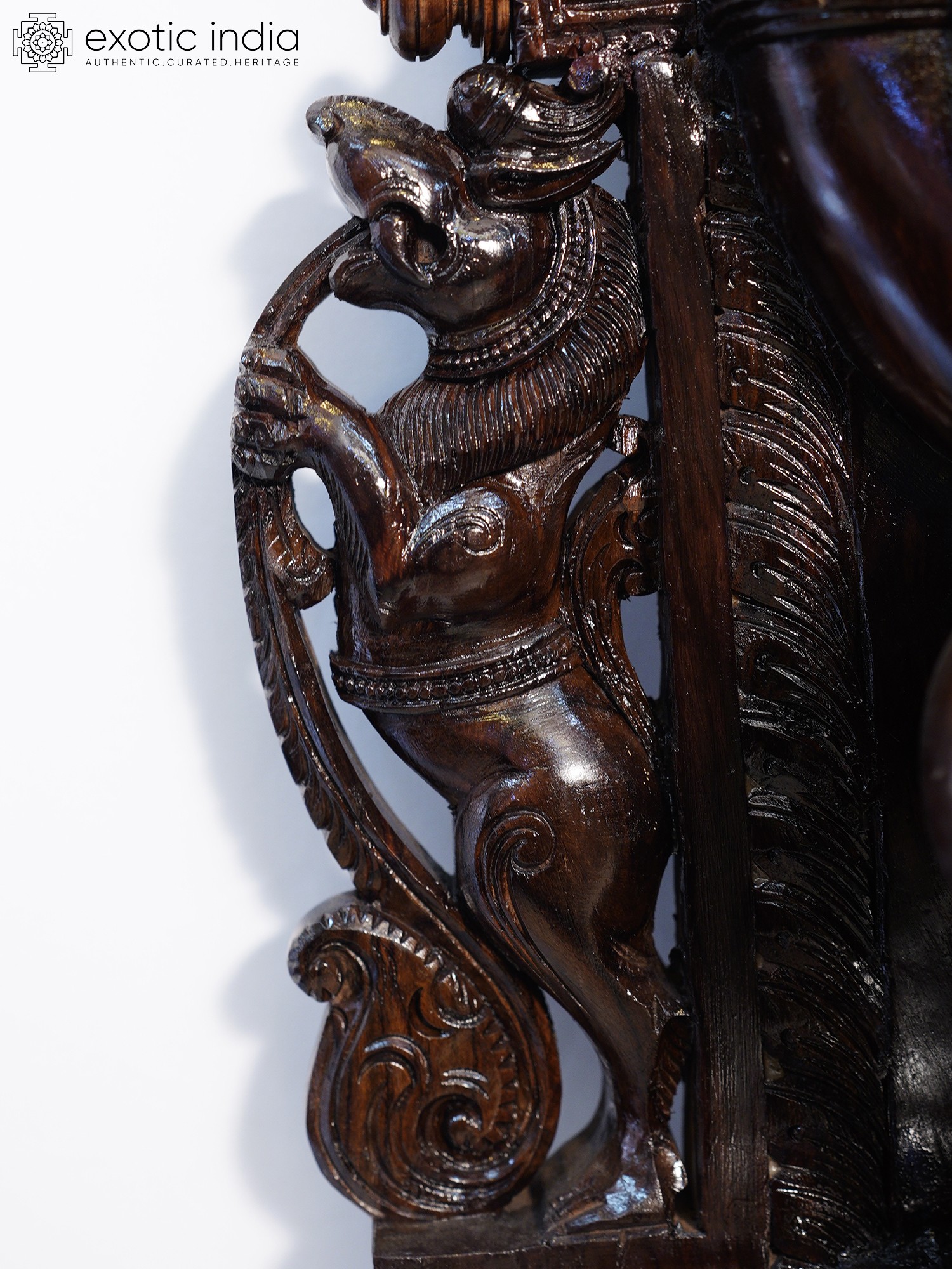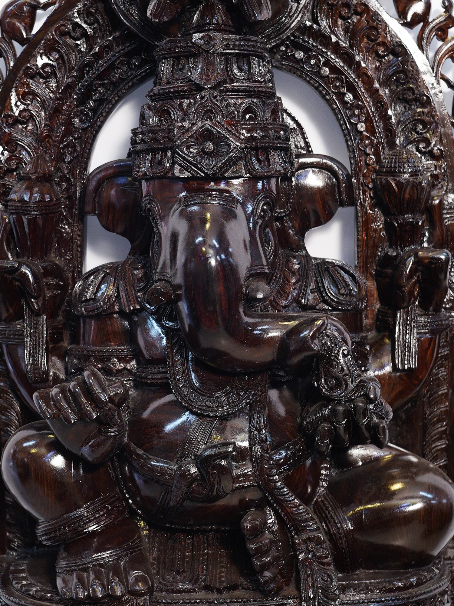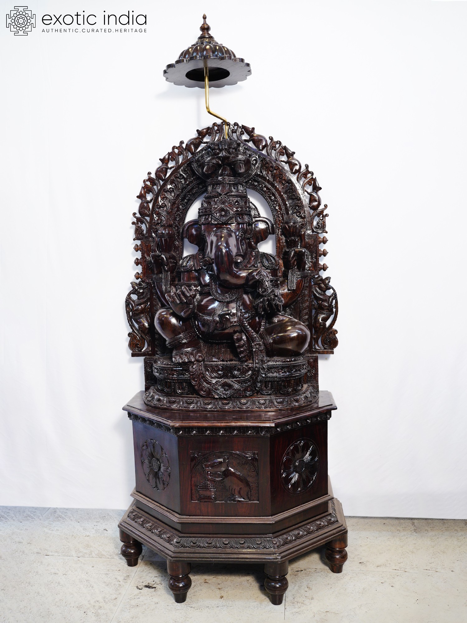 Large Size Lord Ganesha Wooden Statue Seated atop His Vahana