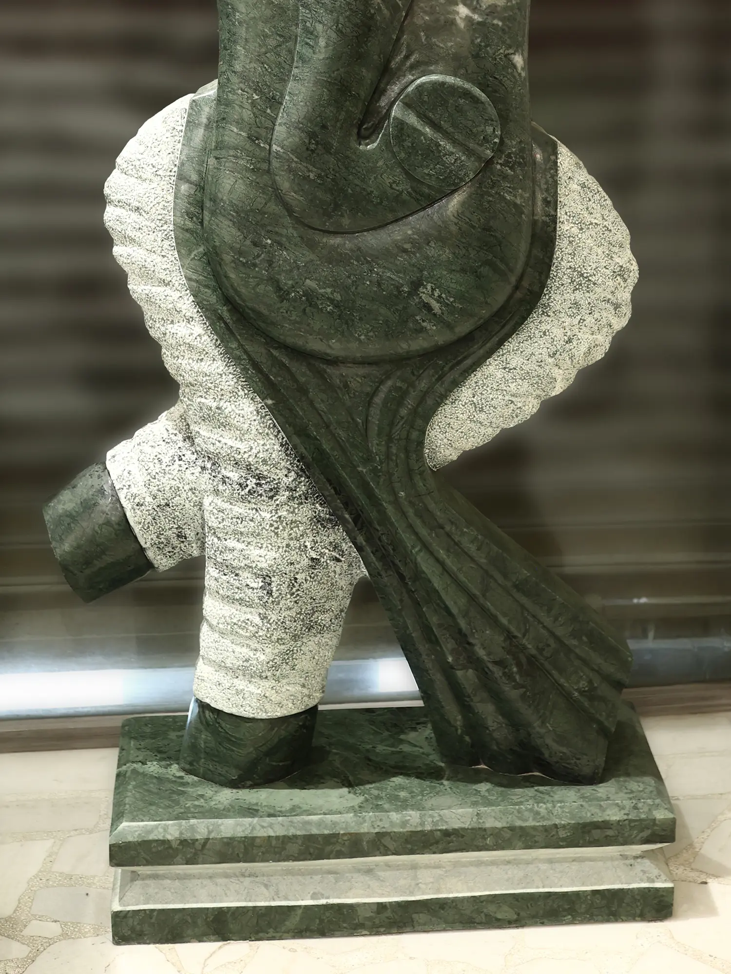 This magnificent sculpture captures the essence of Lord Ganesha, the beloved elephant-headed deity, in a moment of ecstatic dance. Rendered in natural marble, this artwork transcends traditional depictions, offering a contemporary interpretation that is both powerful and graceful. The artist has masterfully sculpted the divine form, imbuing it with a sense of dynamic movement. The flowing lines and curves suggest the rhythm and energy of Ganesha’s cosmic dance, a celebration of creation, prosperity, and the overcoming of obstacles. Ganesha, revered as the Remover of Obstacles and the patron of arts and sciences, is often depicted in joyous motion. His dance is not merely a physical act but a spiritual expression, symbolizing the ceaseless cycles of the universe. Tales from Hindu mythology speak of Ganesha’s playful nature and his love for music and dance. It is said that he once danced with such fervor that he stopped the moon from rising, in his enthusiasm to entertain the gods. This sculpture embodies that vibrant spirit, inviting viewers to partake in the joy and auspiciousness he represents. ––––––––––