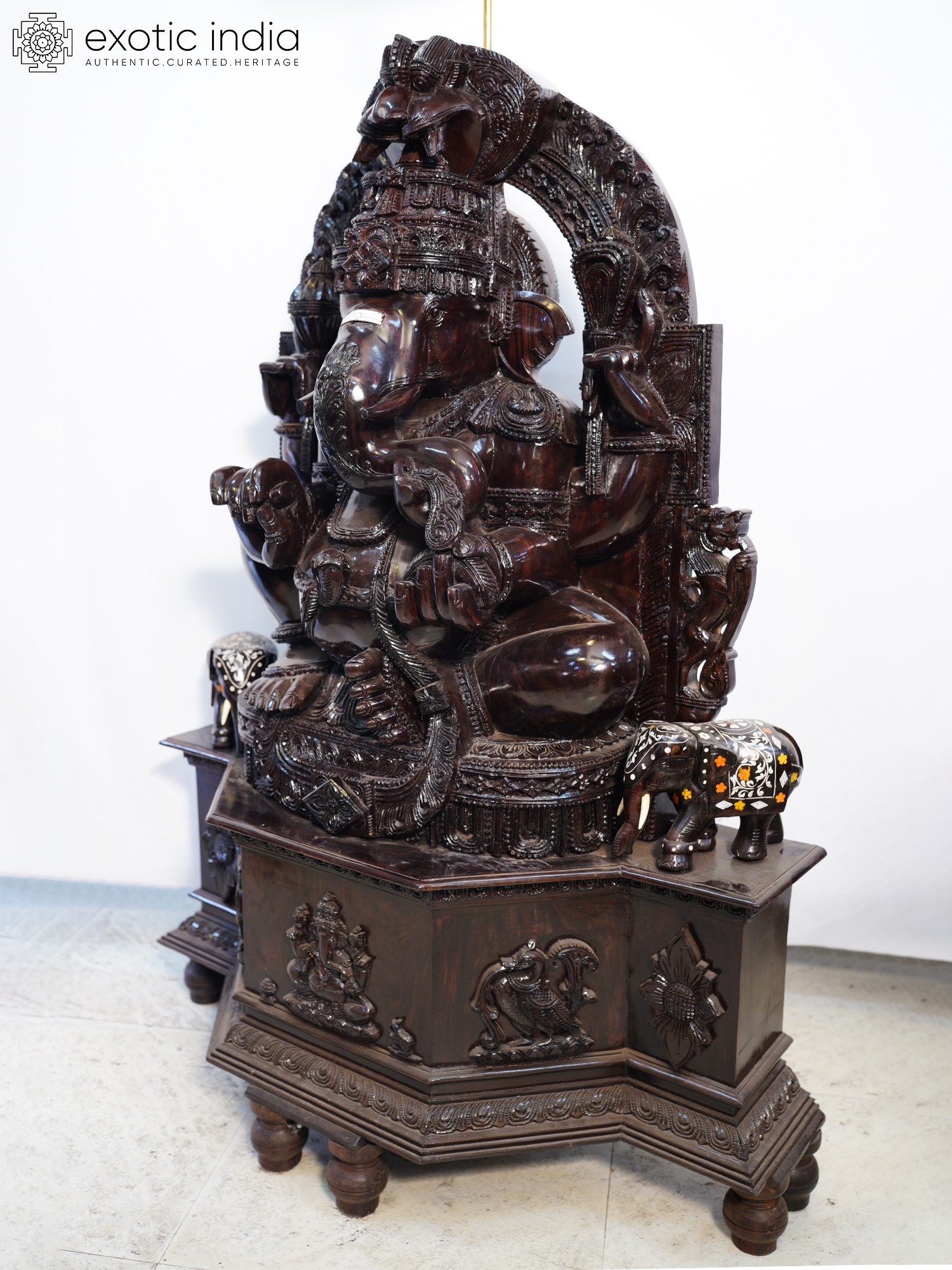 96" Huge Panchmukhi Lord Ganesha Wooden Statue | South Indian Temple Wood Carving
