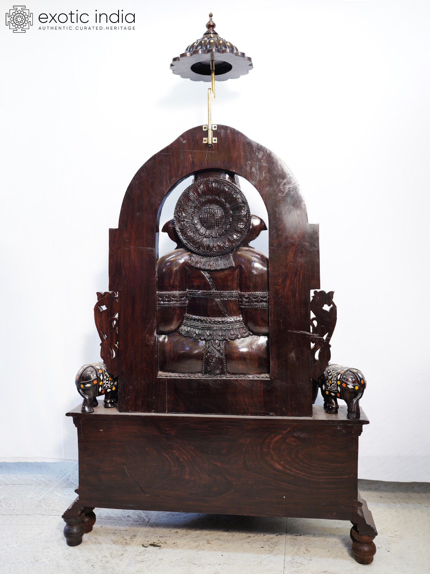 Large Size Lord Ganesha Wooden Statue Seated atop His Vahana