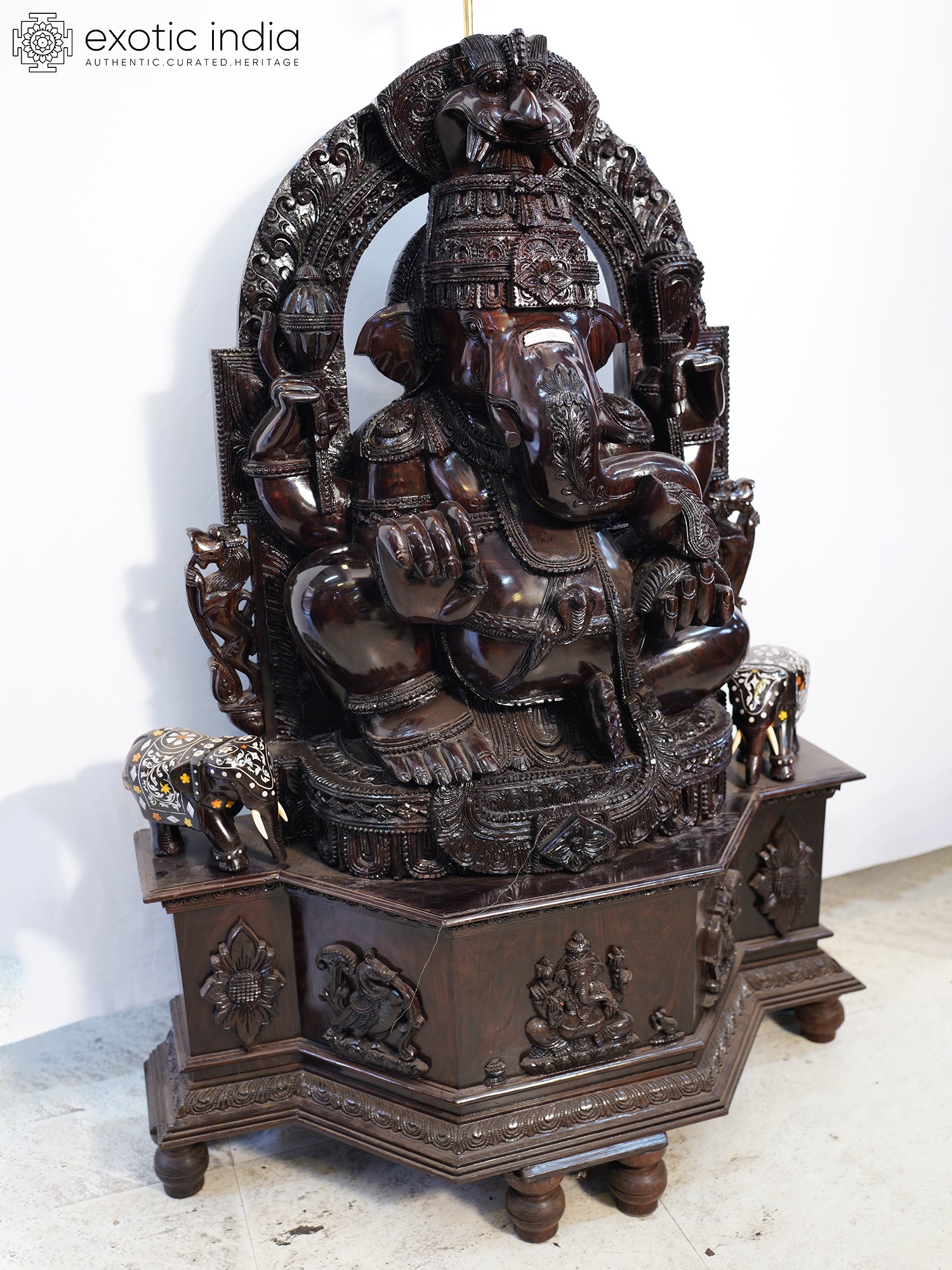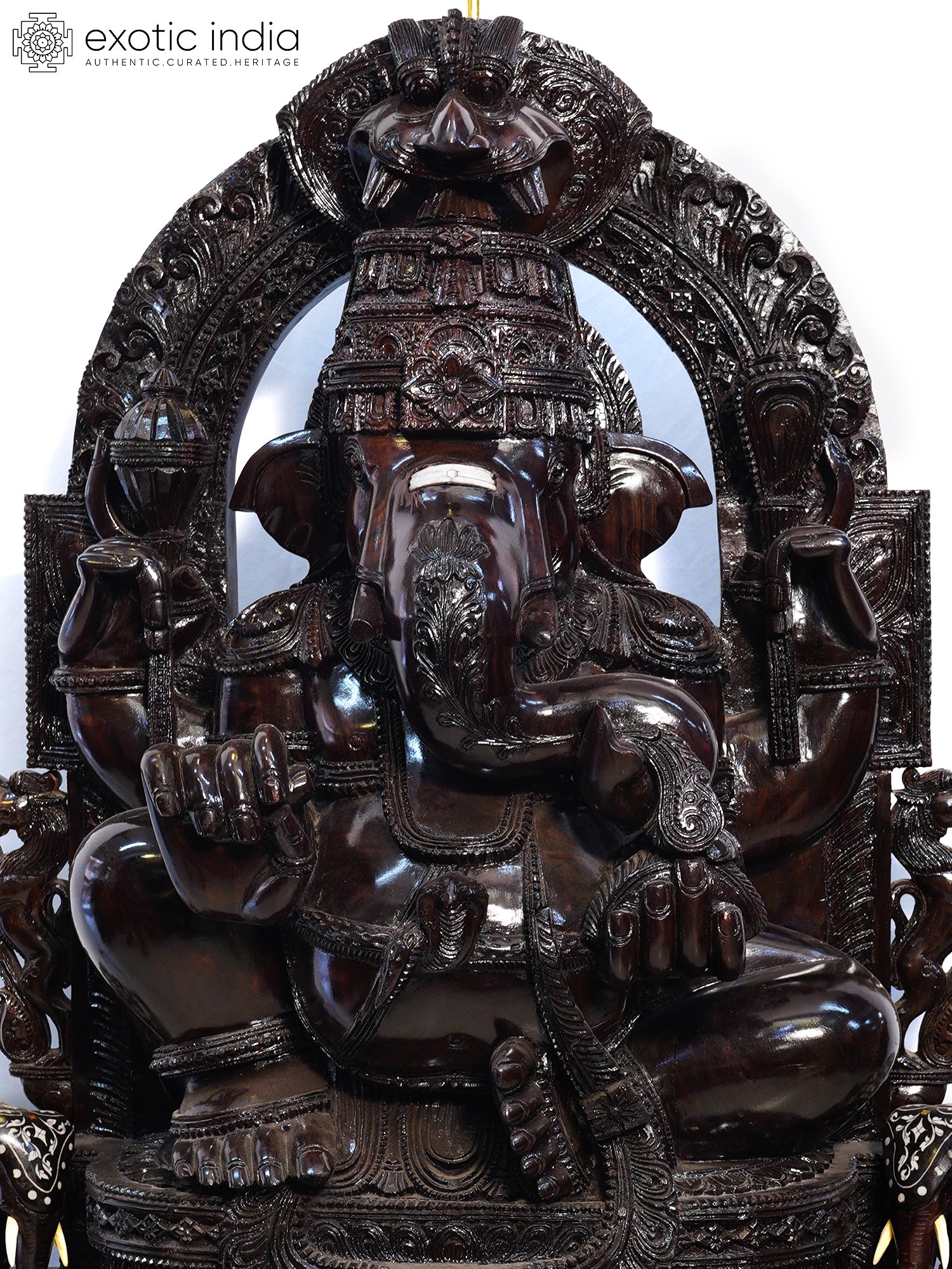 48" Trimukha Ganesha Seated on His Rat with Kirtimukha Arch