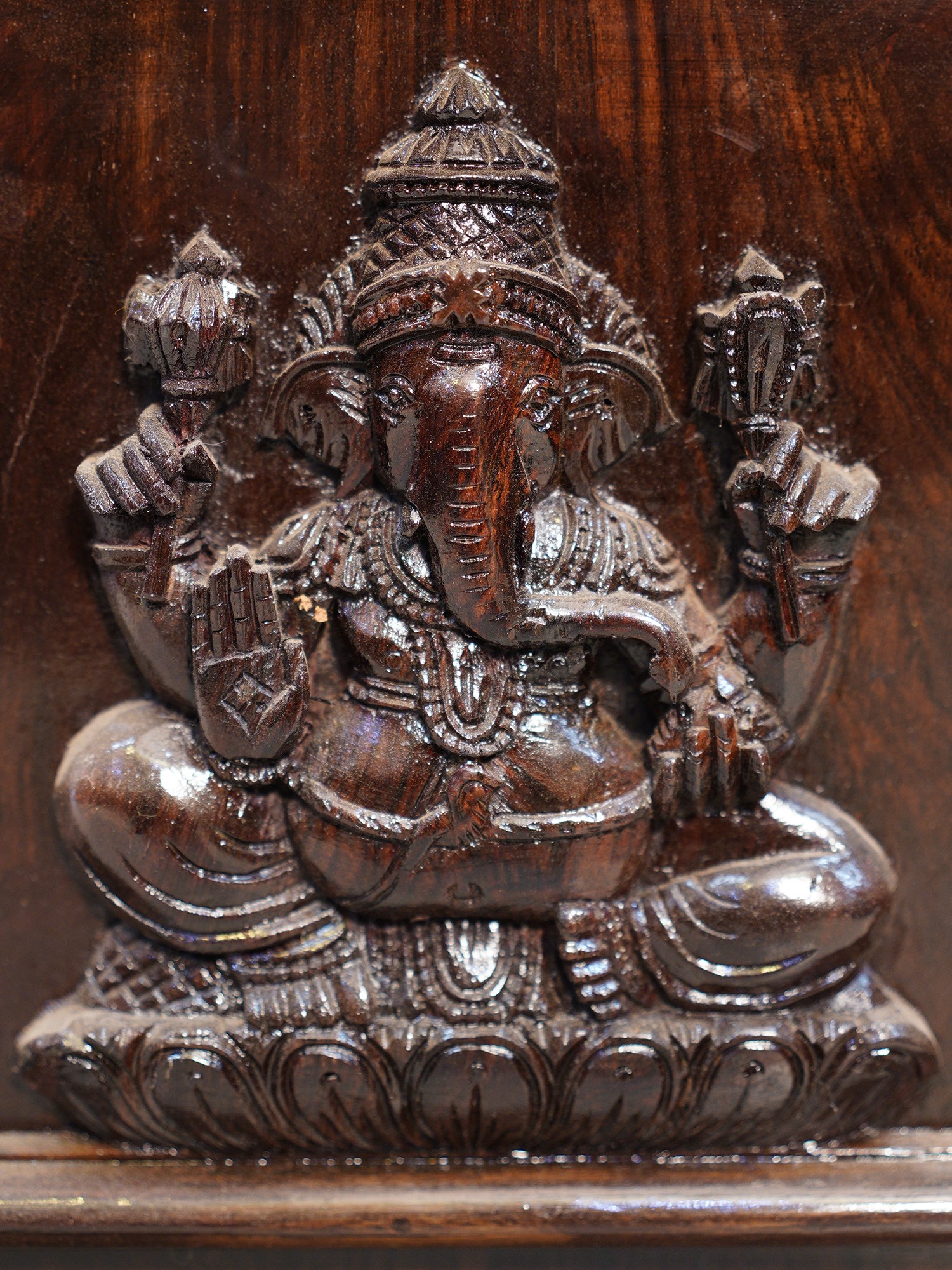 13" Lotus Ganesha in Brass | Wood Framed | Wall Hanging
