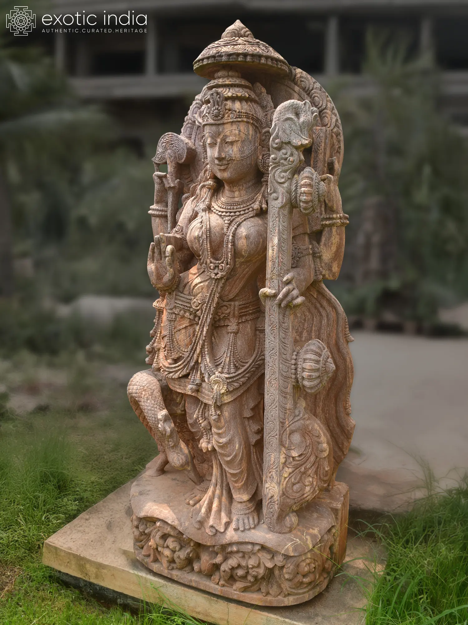 48" Goddess Saraswati | Sandstone Statue | Exquisite Handmade Indian Art