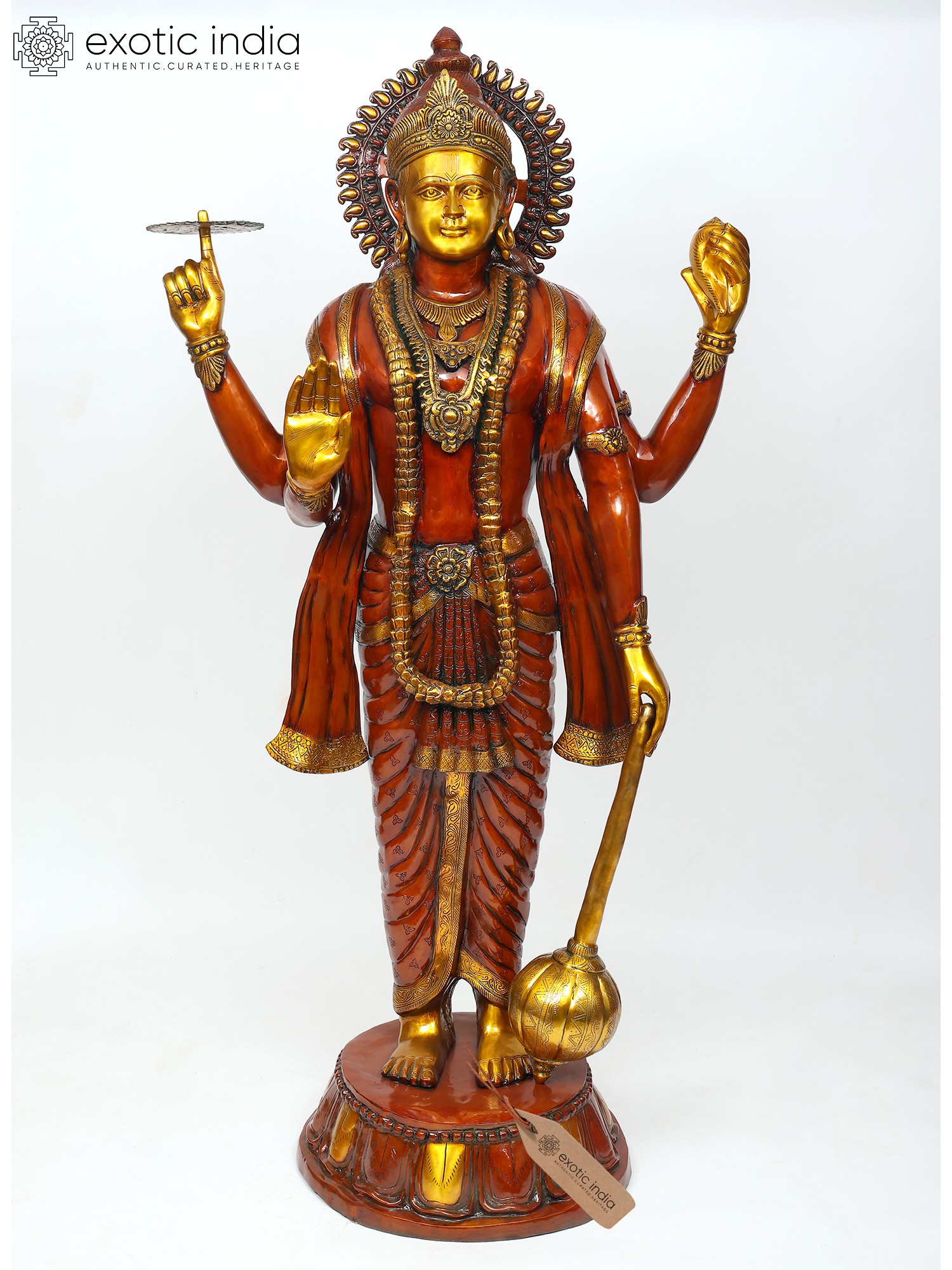 37" Large Size Sthanaka Vishnu In Brass | Handmade | Made In India