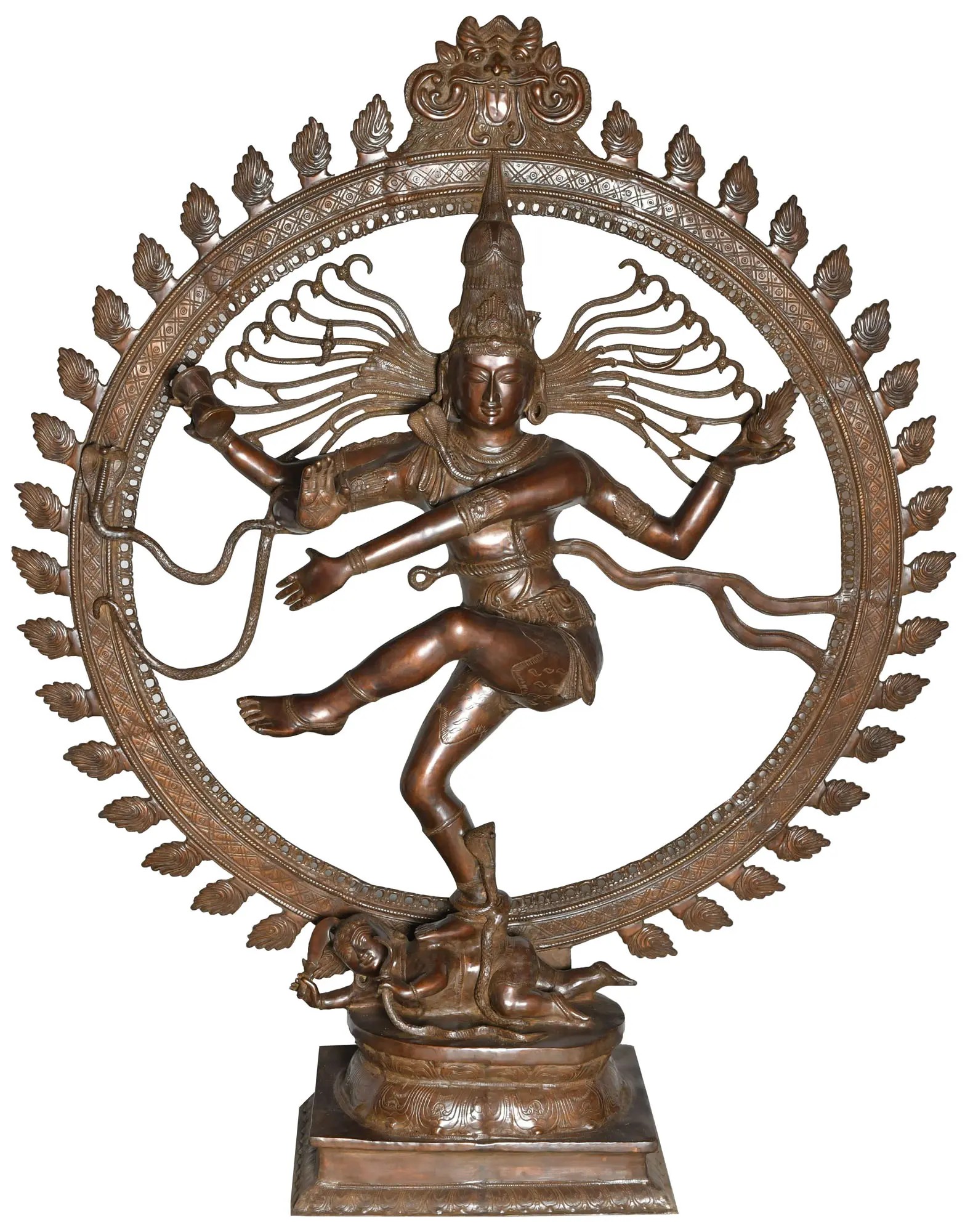 Whether you are a seasoned collector of religious artifacts, an admirer of Hindu art, or simply someone who appreciates the beauty of intricate craftsmanship, this magnificent Nataraja statue will be a cherished addition to your home or collection. Its imposing size commands attention, and its profound symbolism adds a layer of spiritual richness to any setting. This is more than just a statue; it's a piece of history, a work of art, and a powerful spiritual symbol that will captivate and inspire for generations to come. It's an heirloom piece, certain to enhance and elevate the ambiance of your environment.