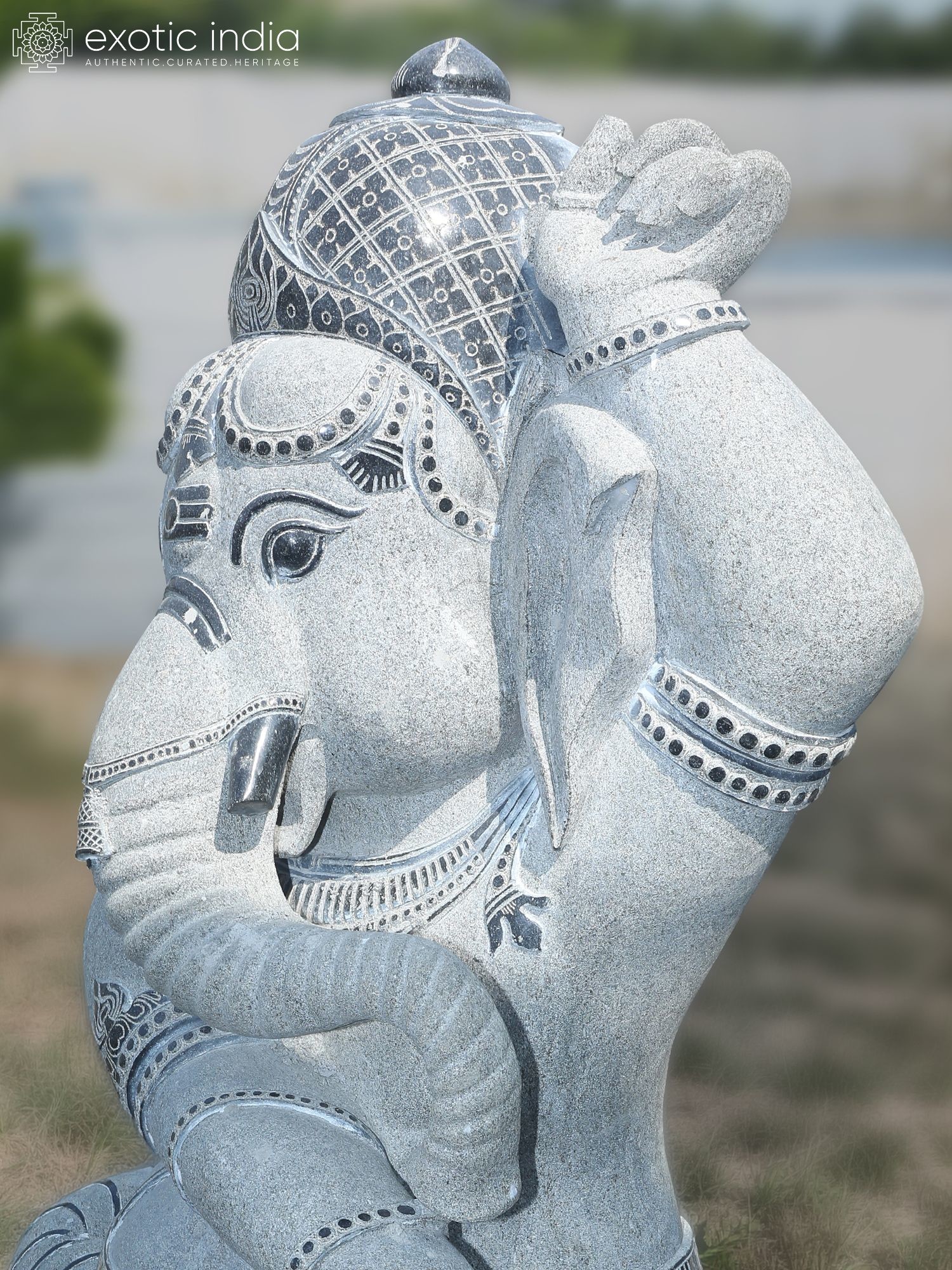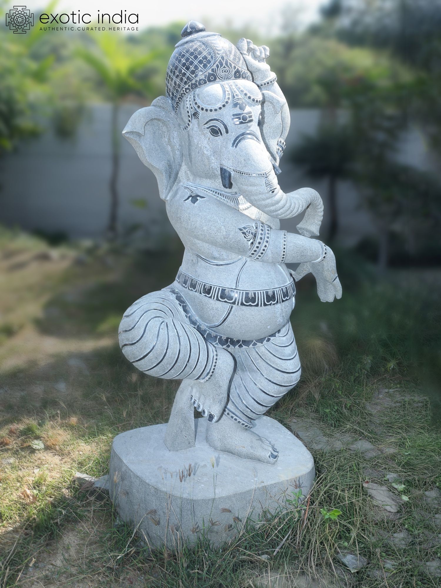 58" Large Size Dancing Lord Ganesha | Granite Statue | Handmade Indian Art