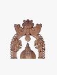 Goddess Lakshmi is revered as the consort of Lord Vishnu, the preserver of the universe. Her presence is believed to bestow material and spiritual wealth, good fortune, and overall auspiciousness. She is often depicted emerging from a lotus flower, symbolizing purity, beauty, and spiritual enlightenment. In this rendition, she stands upon a fully bloomed lotus pedestal, reinforcing her association with purity and divine grace. The Kirtimukha, a protective, monstrous face often depicted at the top of arched doorways or thrones, adorns her throne, signifying warding off evil and protecting the sacred space. The inclusion of peacocks, her sacred vehicle, further enhances the devotional significance of this piece. Peacocks are often associated with royalty, beauty, and immortality, aligning perfectly with Lakshmi's divine attributes. Tales abound of Lakshmi appearing to devotees in moments of great need or virtue, bringing with her not just material riches but also peace and happiness.