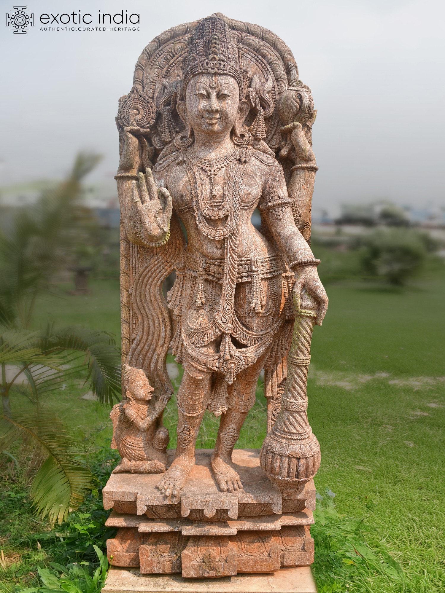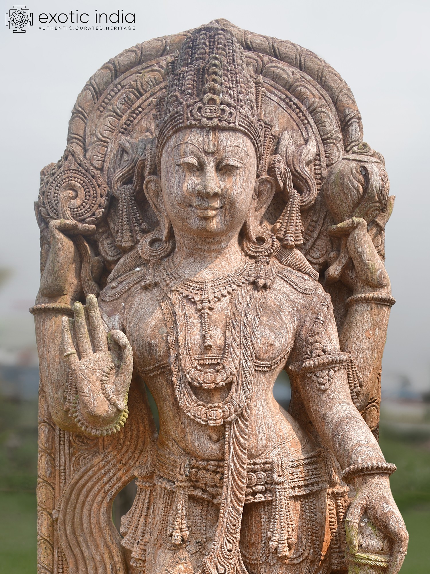 72" Goddess Lakshmi | Sandstone Statue | Exquisite Handmade Indian Art