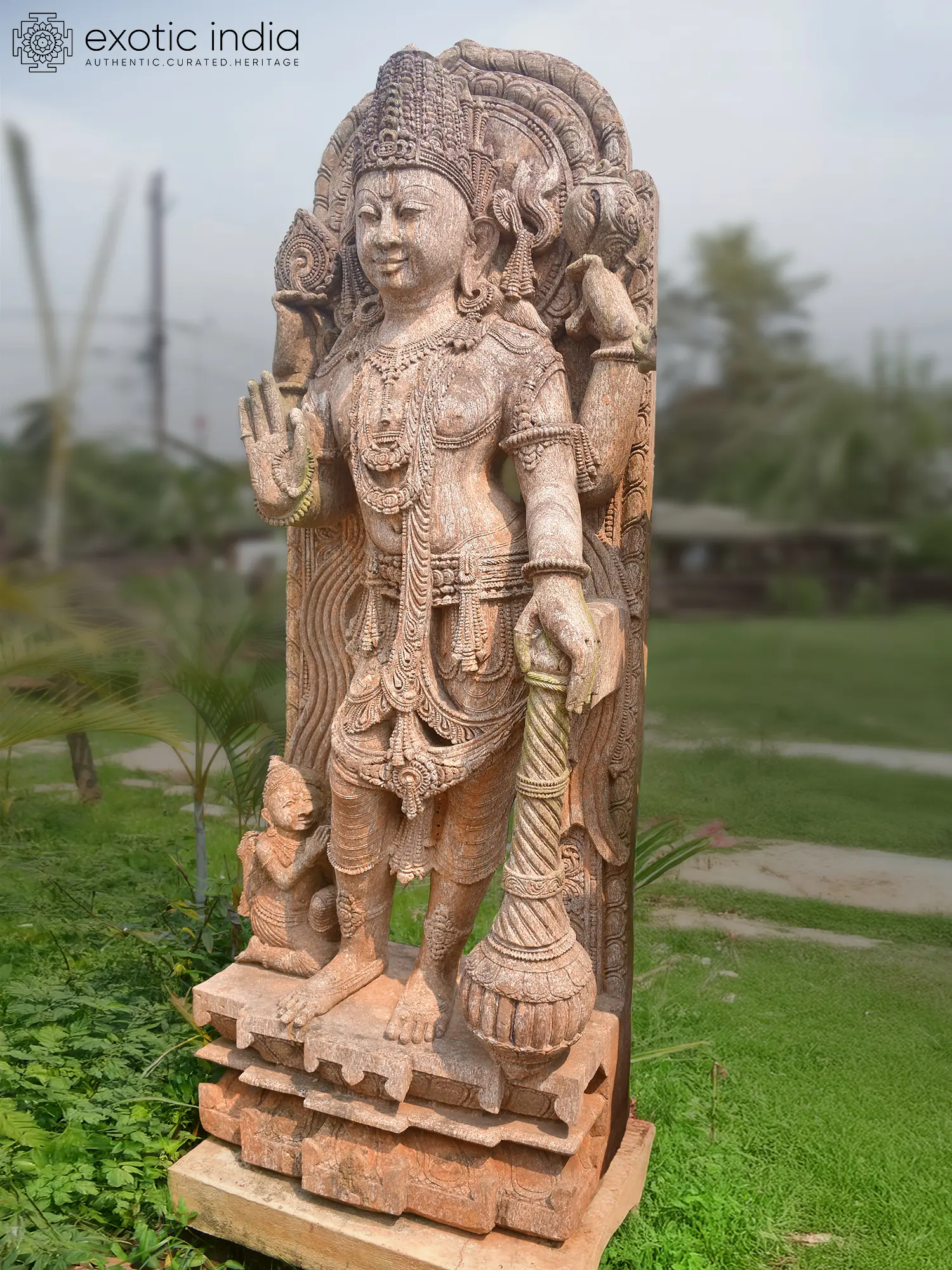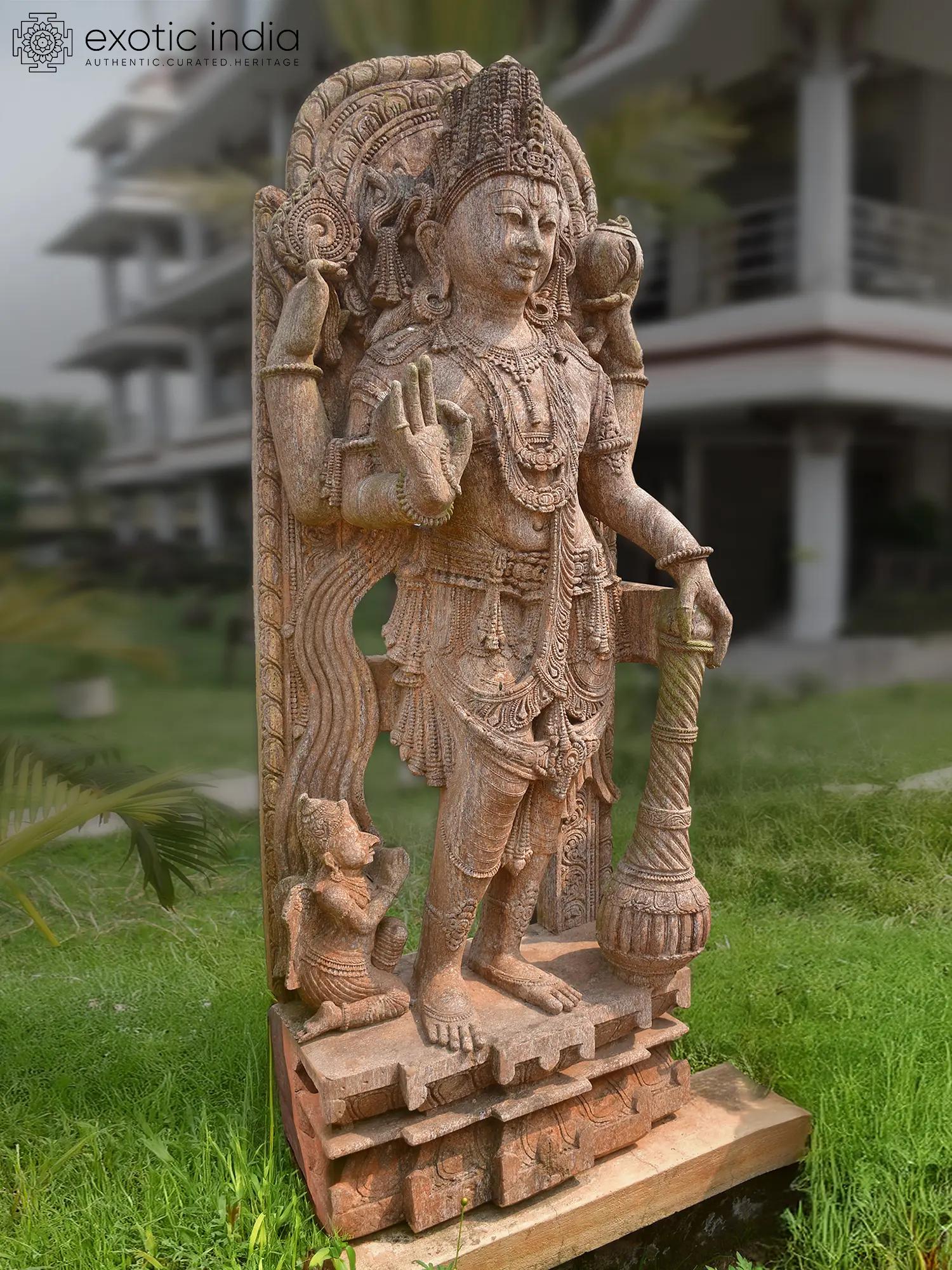 50" Four Armed Ganesha | Sandstone Statue | Exquisite Handmade Indian Art