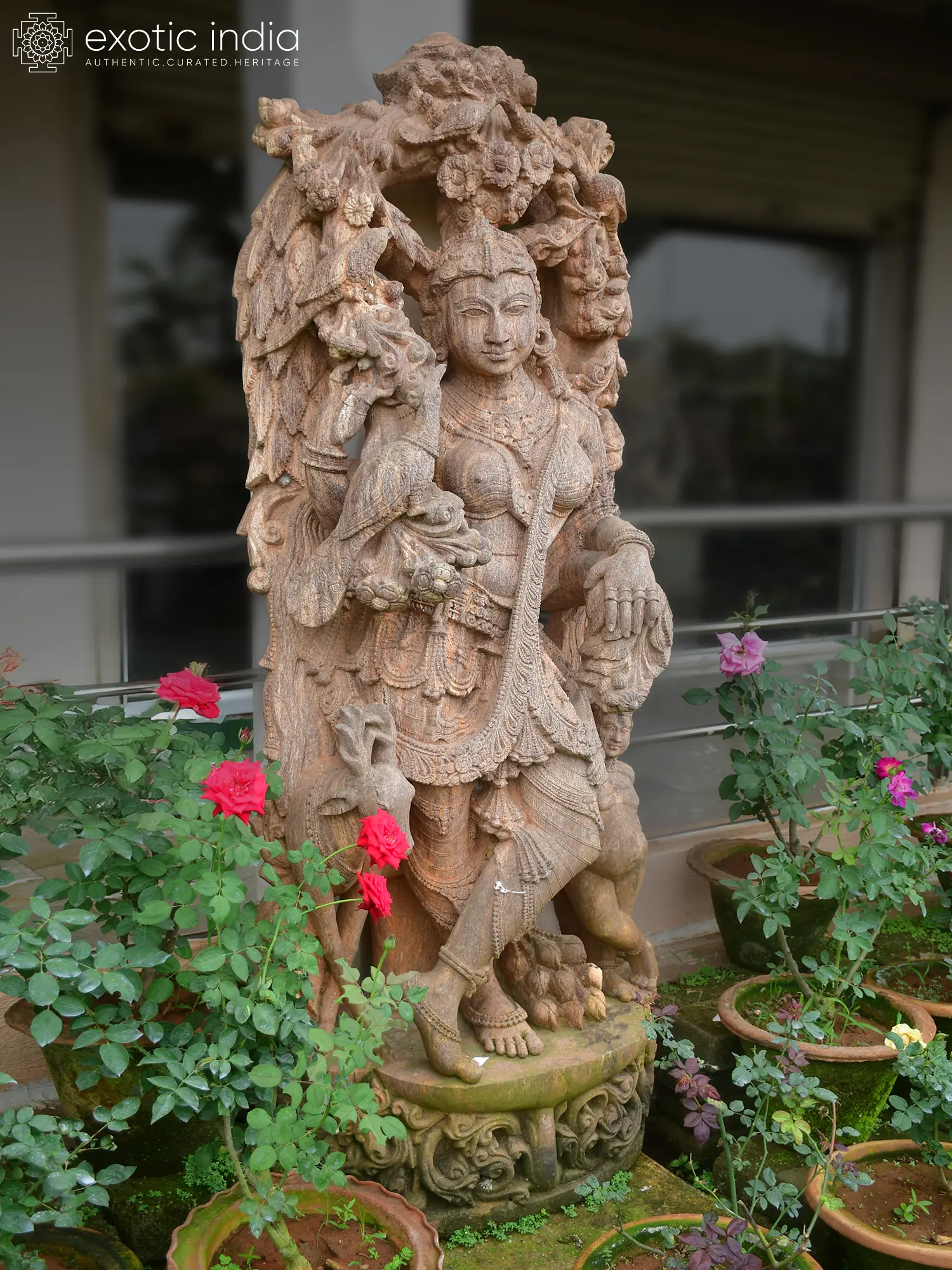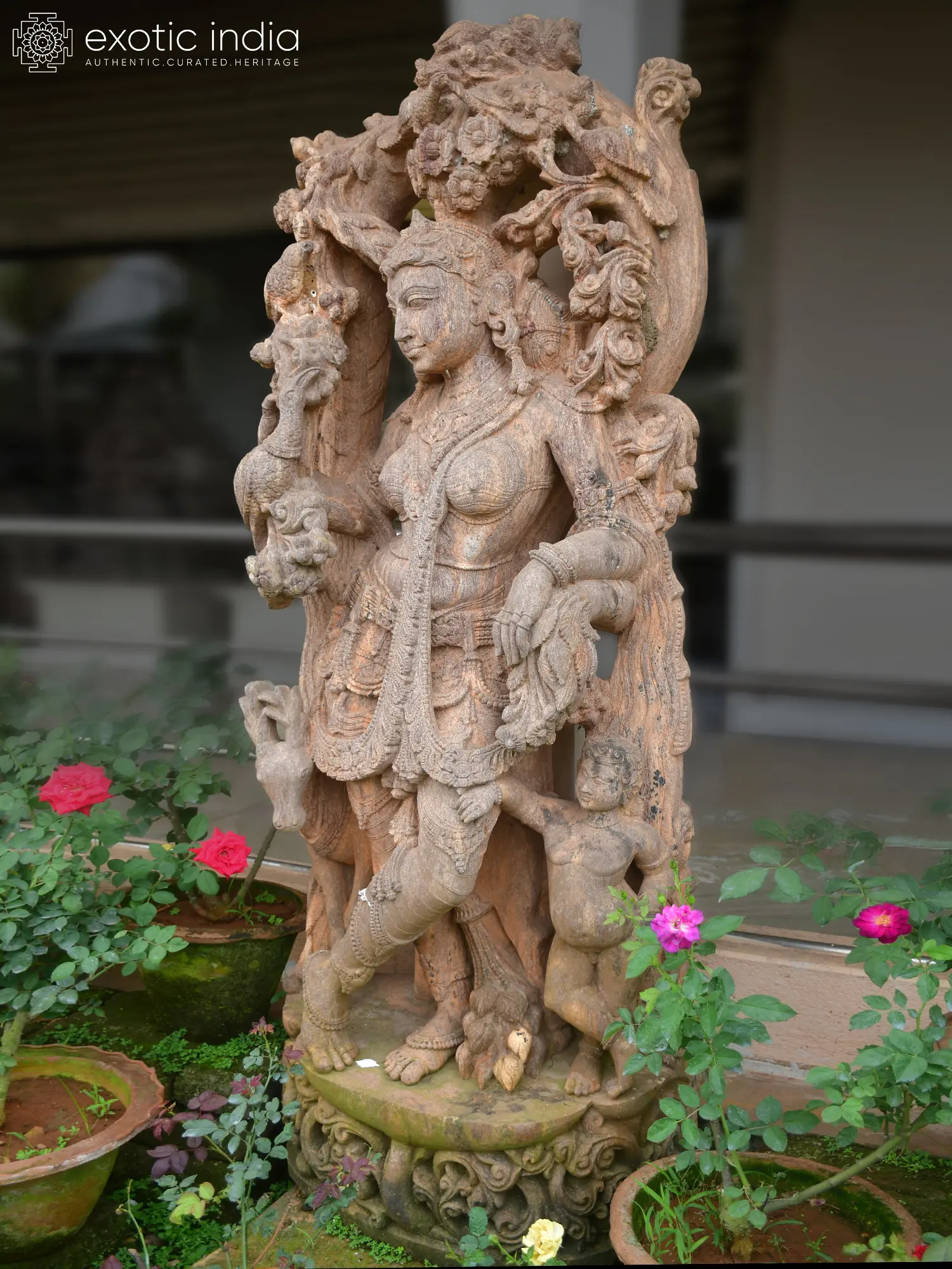 Crafted from durable Orissa sandstone, this sculpture is designed to withstand the elements and age with grace. To maintain its pristine condition, gentle cleaning with a soft brush and water is recommended. With proper care, this exquisite artwork will continue to enrich your surroundings with its timeless elegance for years to come.