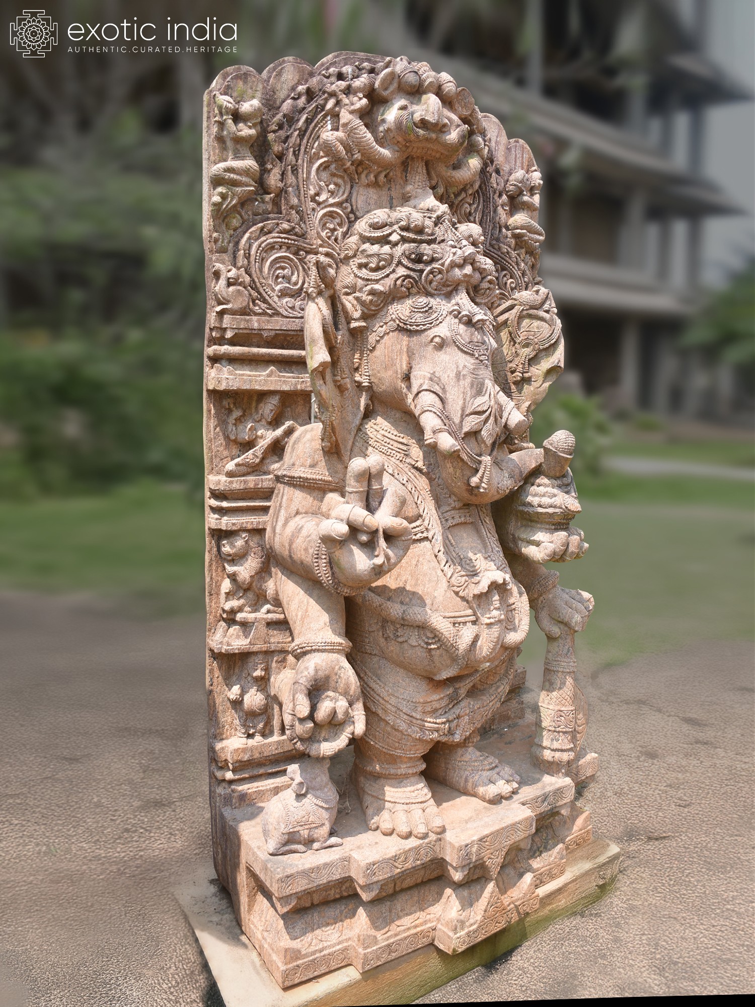 60" Six Armed Lord Ganesha | Sandstone Statue | Exquisite Handmade Indian Art