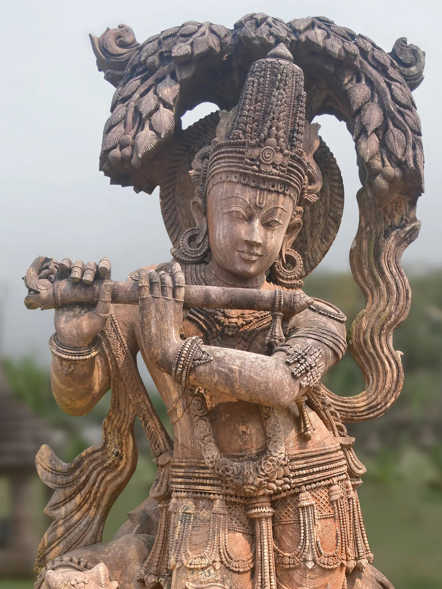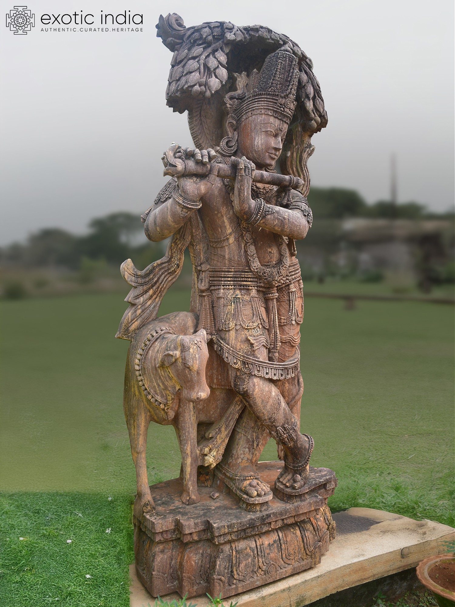 75" Lord Krishna Playing Flute | Sandstone Statue | Exquisite Handmade Indian Art