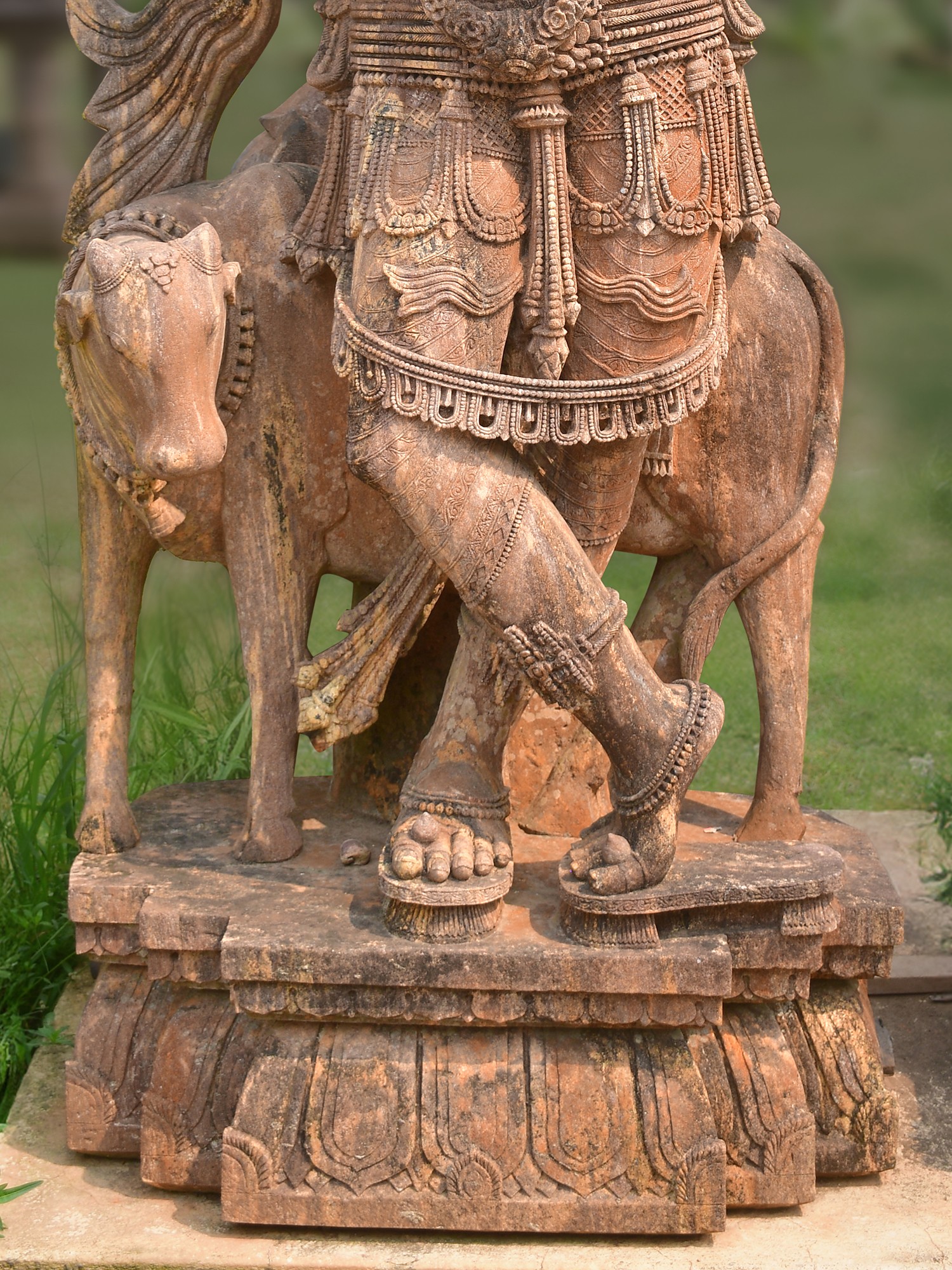 72" God with Cow | Sandstone Statue | Exquisite Handmade Indian Art