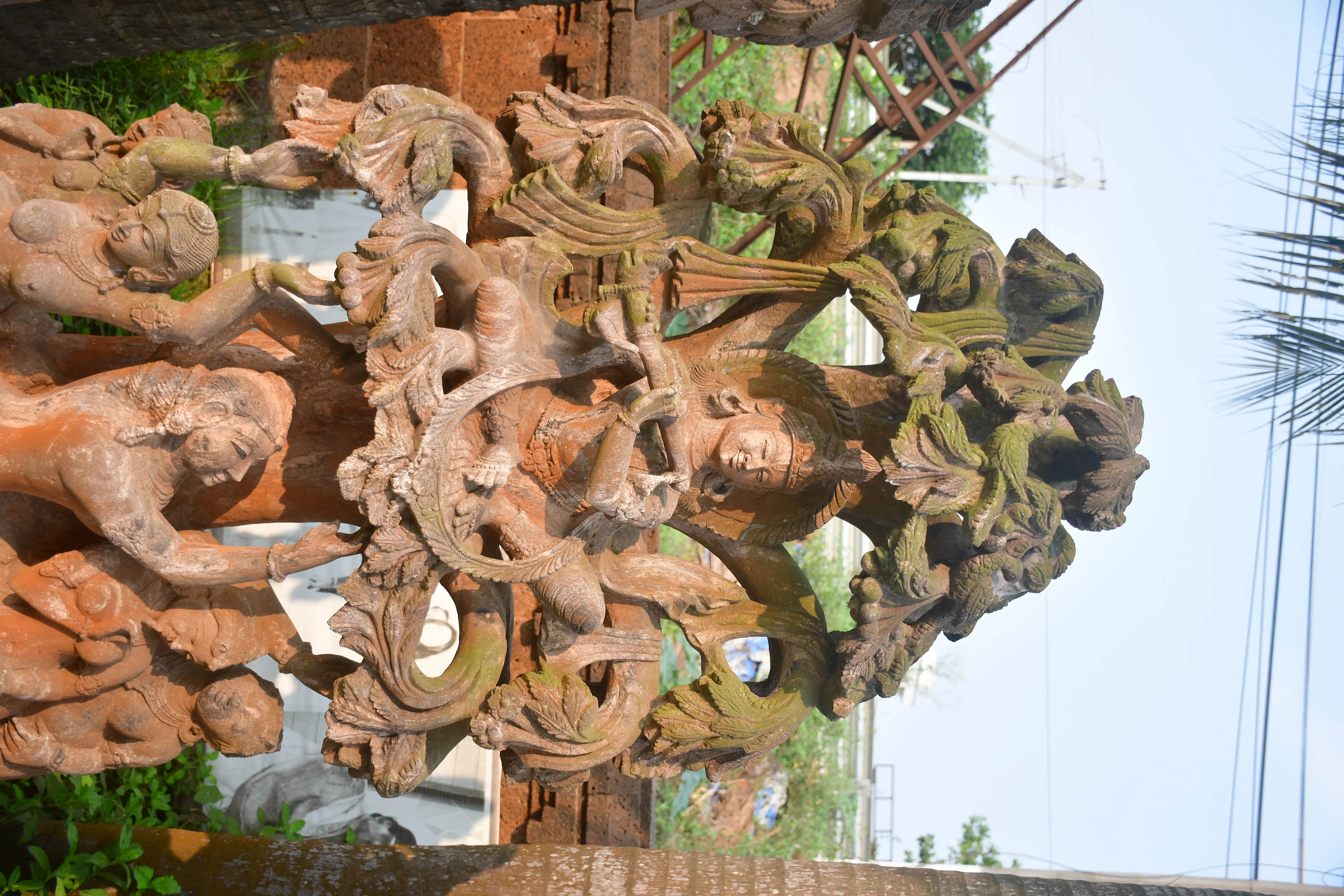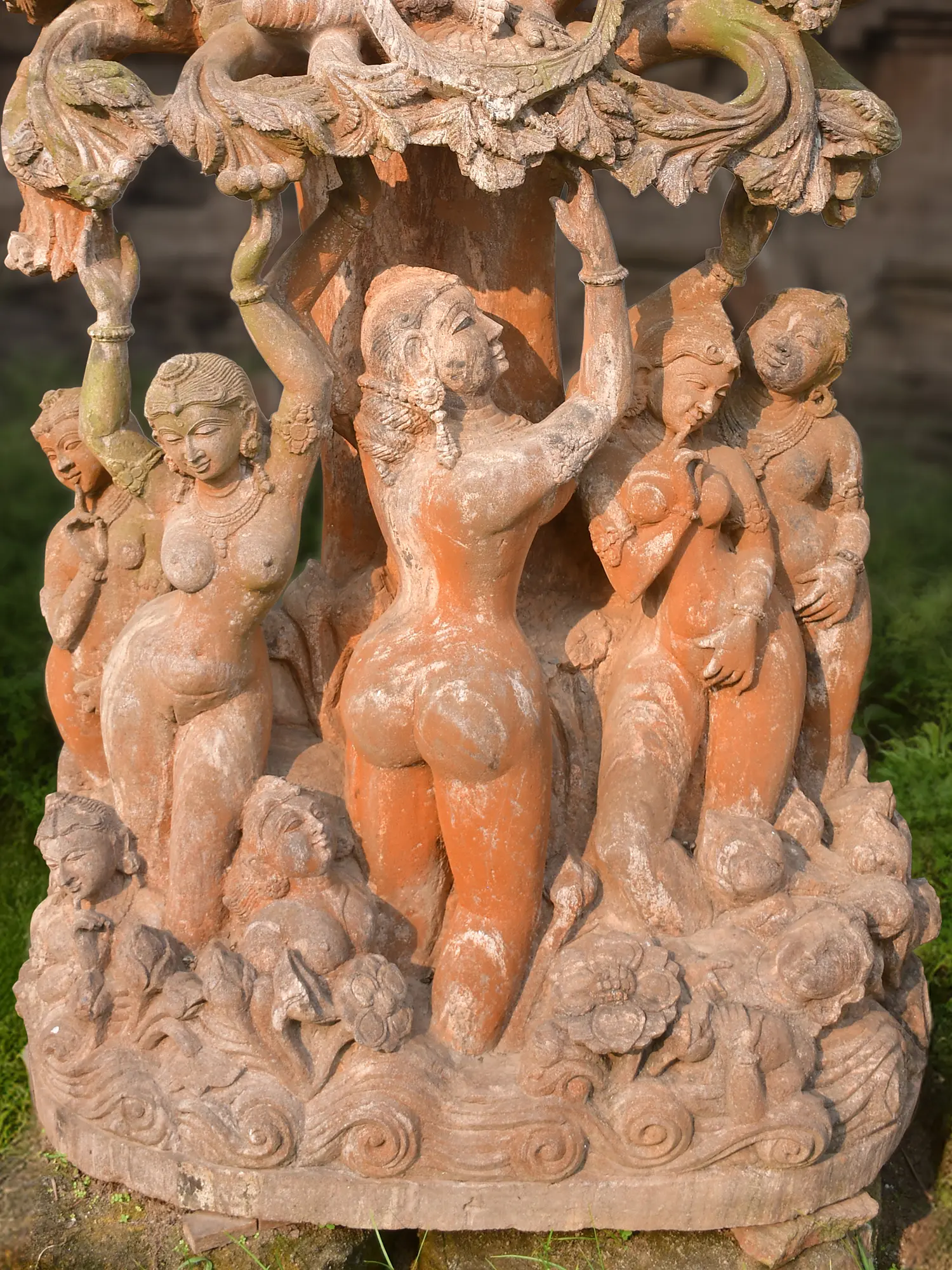 Crafted from the finest Orissa sandstone, each contour and detail is meticulously shaped by skilled artisans. They have breathed life into the stone, imbuing it with a spirit that resonates with centuries of artistic tradition. The subtle variations in the sandstone's natural hue and texture lend an unparalleled depth and character to the creation, a testament to its handmade origin.
