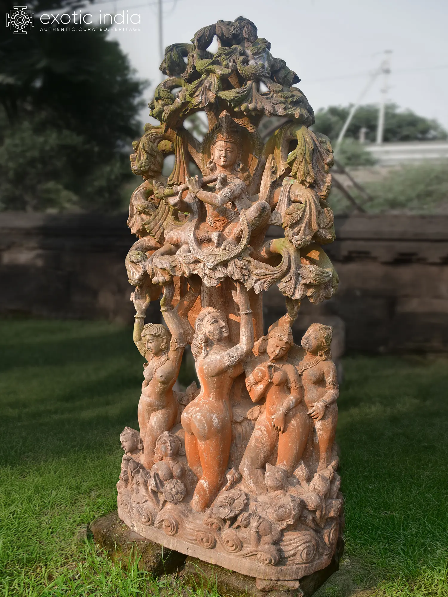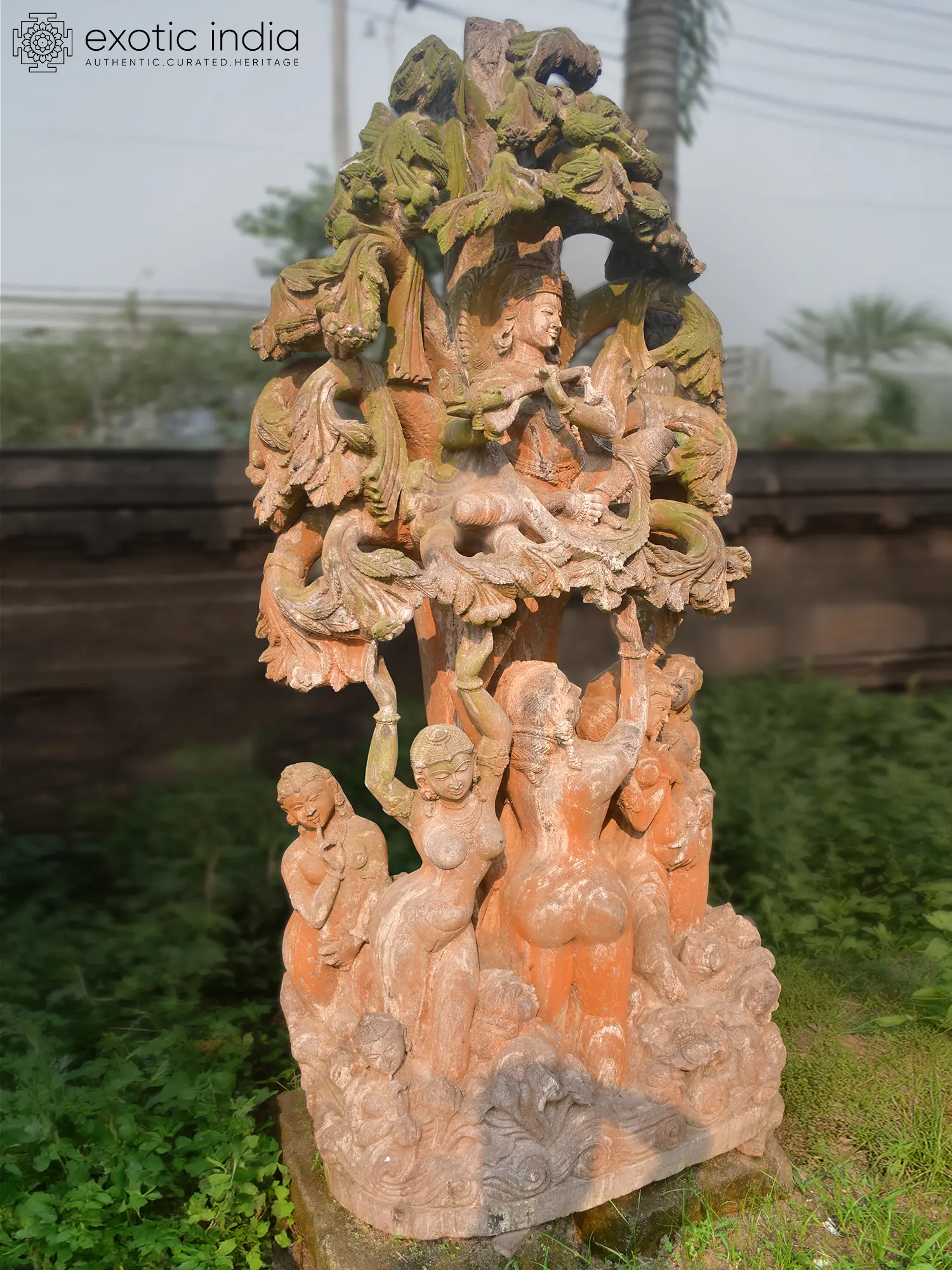 32" Large Standing Goddess Saraswati Playing Veena | Sand Stone Statue from the land of Lord Jagannath, Orissa