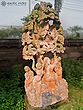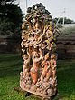 The arresting composition features a central figure nestled amidst the branches of a majestic tree, serenely playing a flute. Below, a gathering of figures reaches upwards, their forms rendered with graceful fluidity and expressive poses. The intricate carving of the foliage and the delicate drapery further enhance its visual richness. Its substantial presence, measuring seventy-five inches in height, makes it a commanding yet elegant centerpiece, with a width of thirty-eight inches and a depth of eighteen inches.