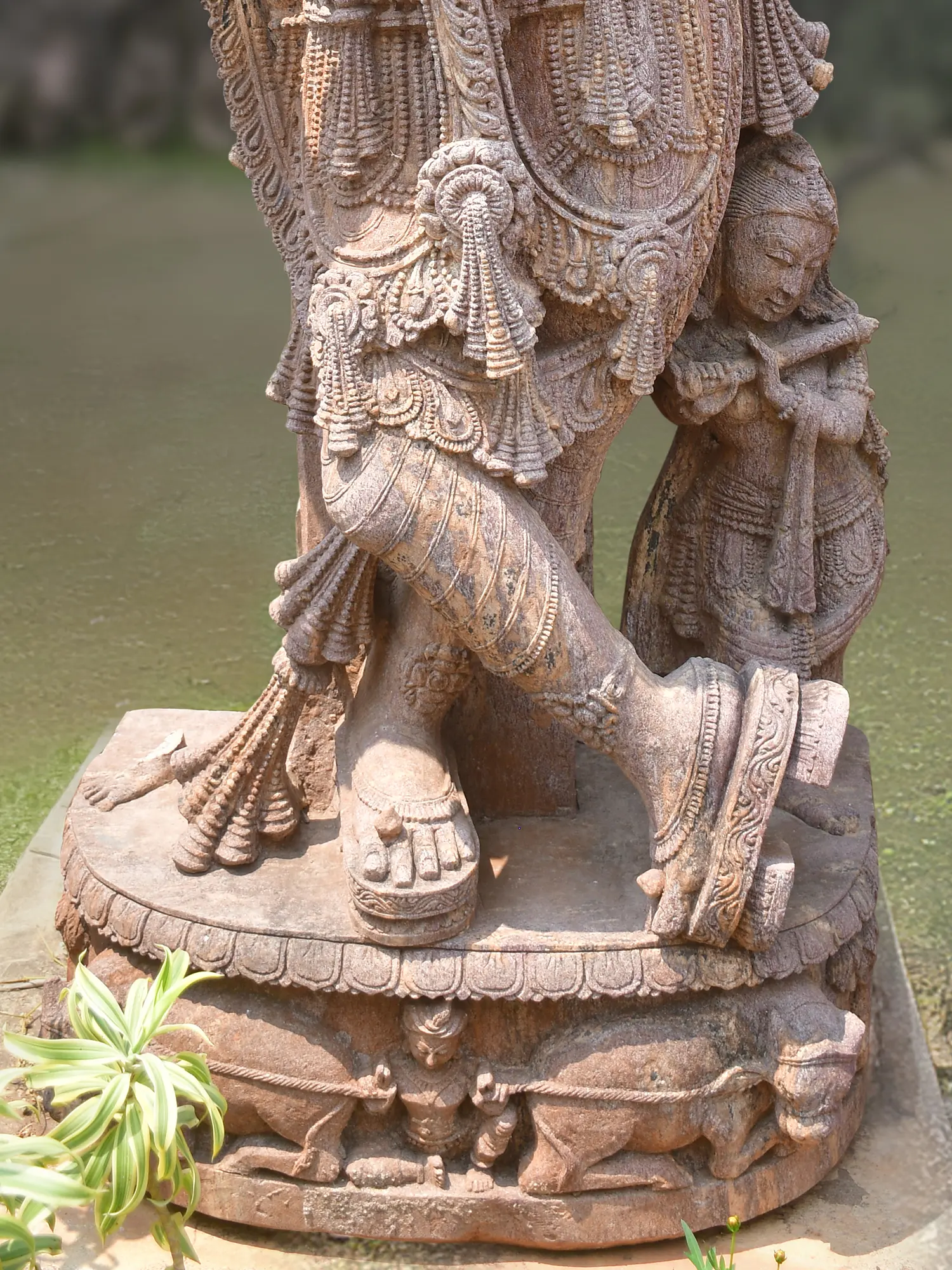 72" God with Cow | Sandstone Statue | Exquisite Handmade Indian Art