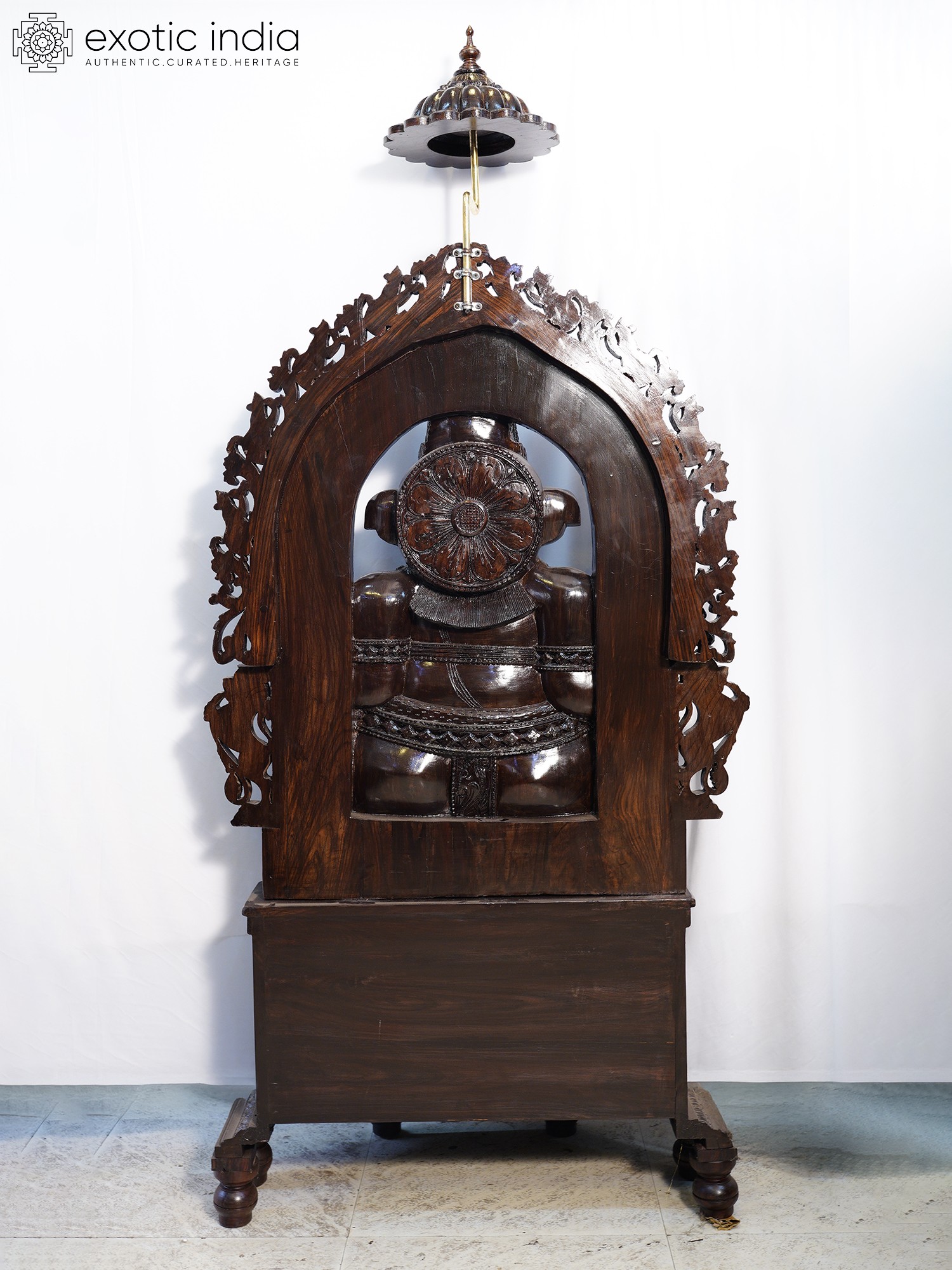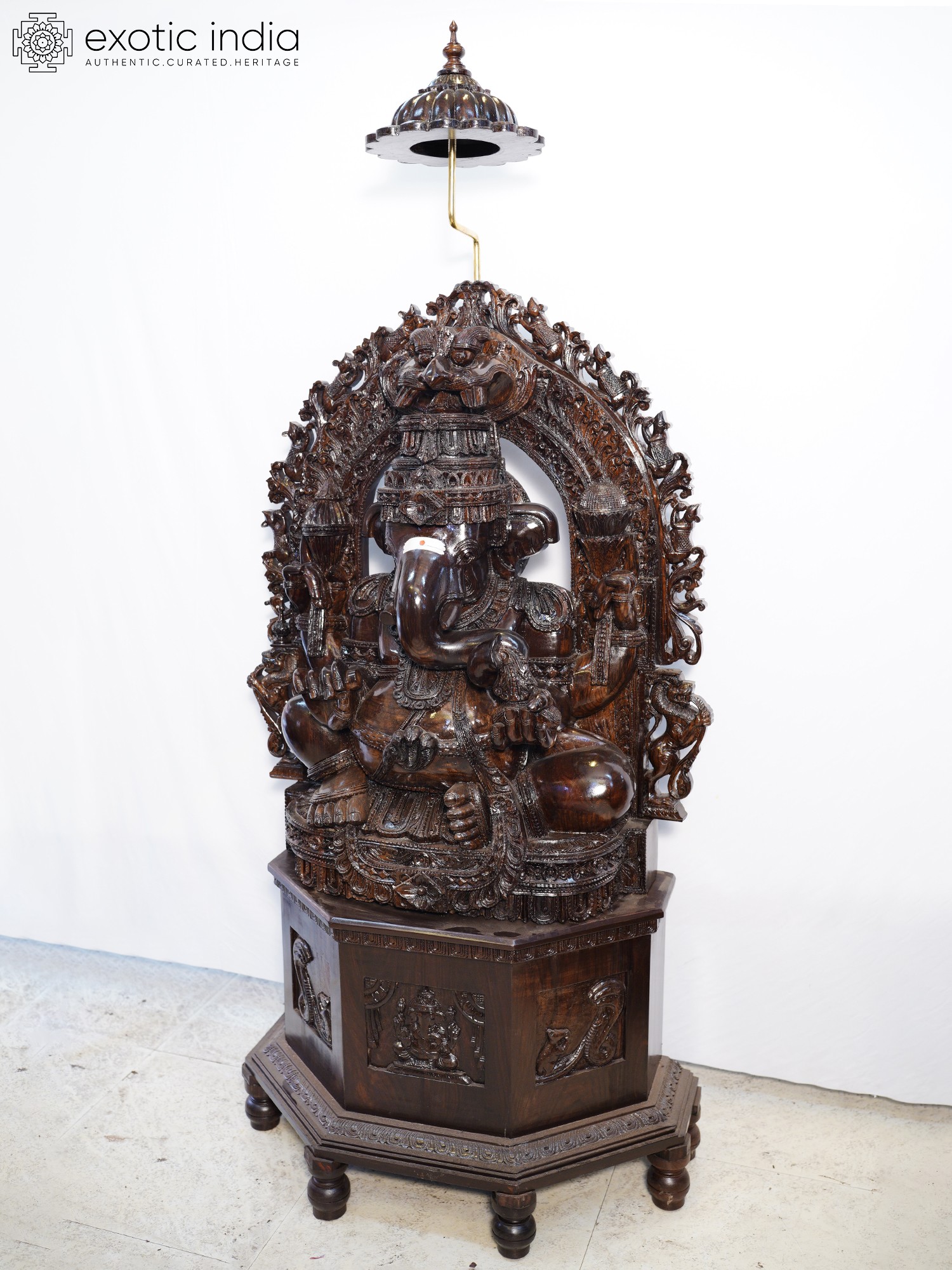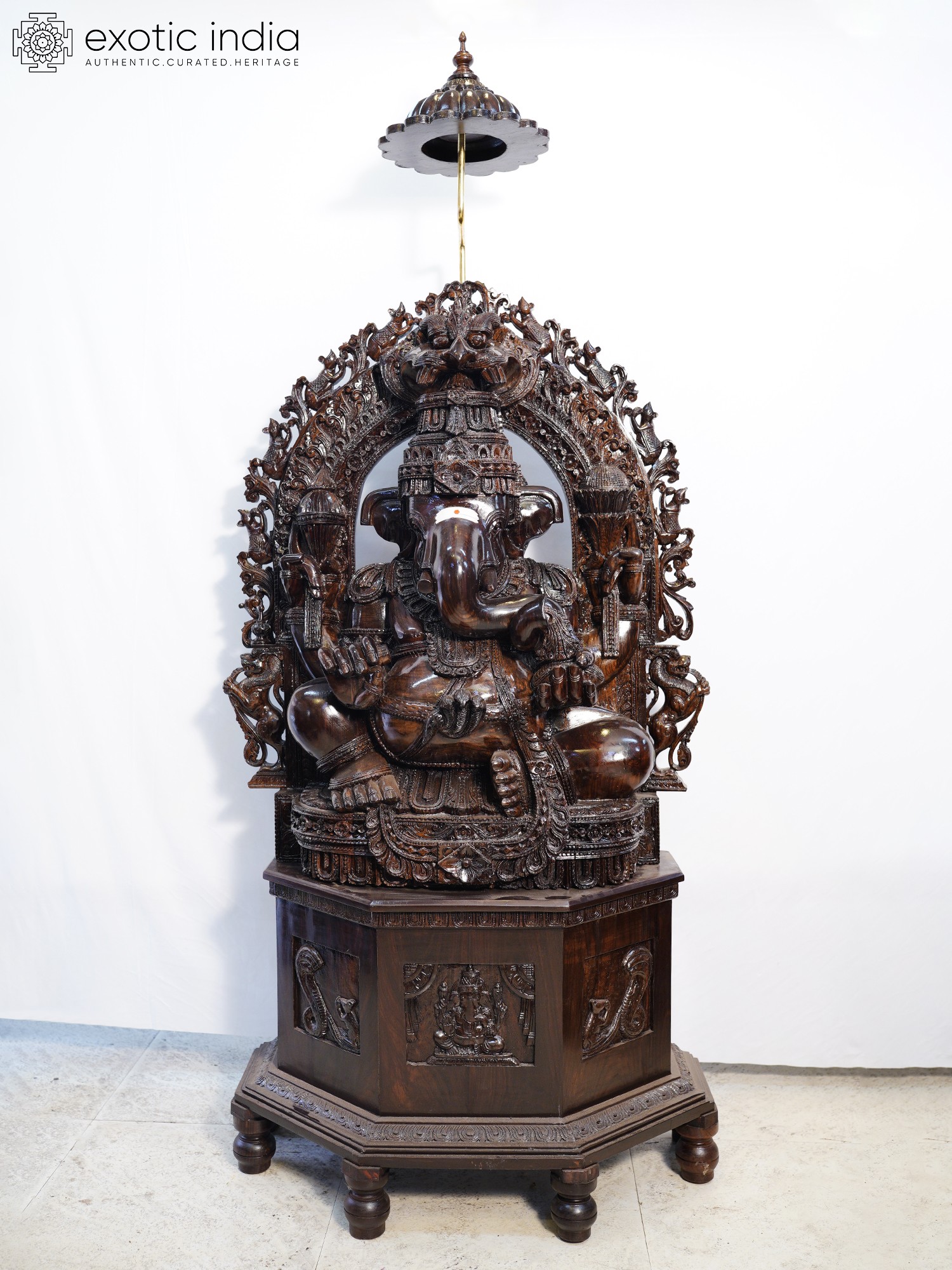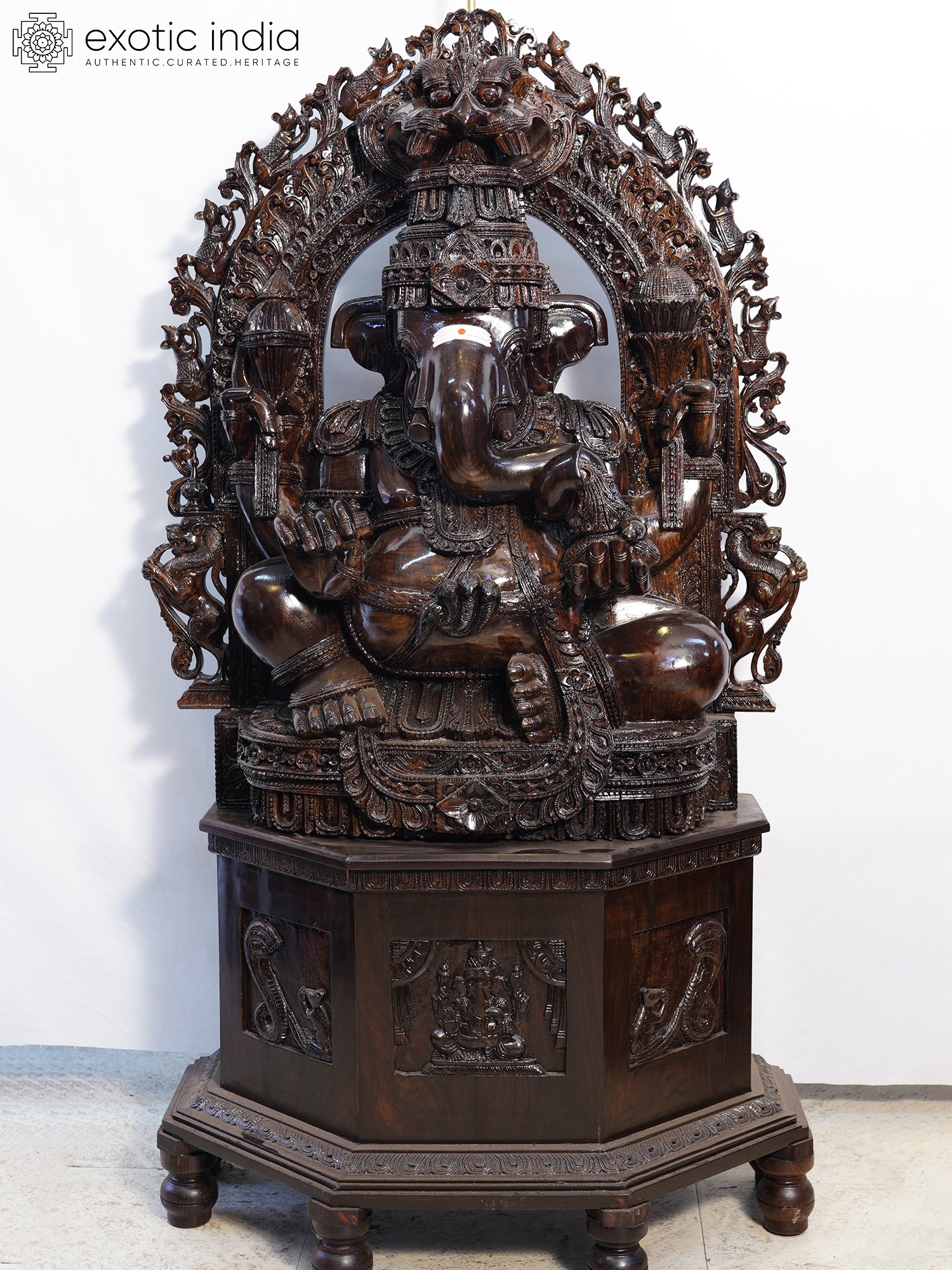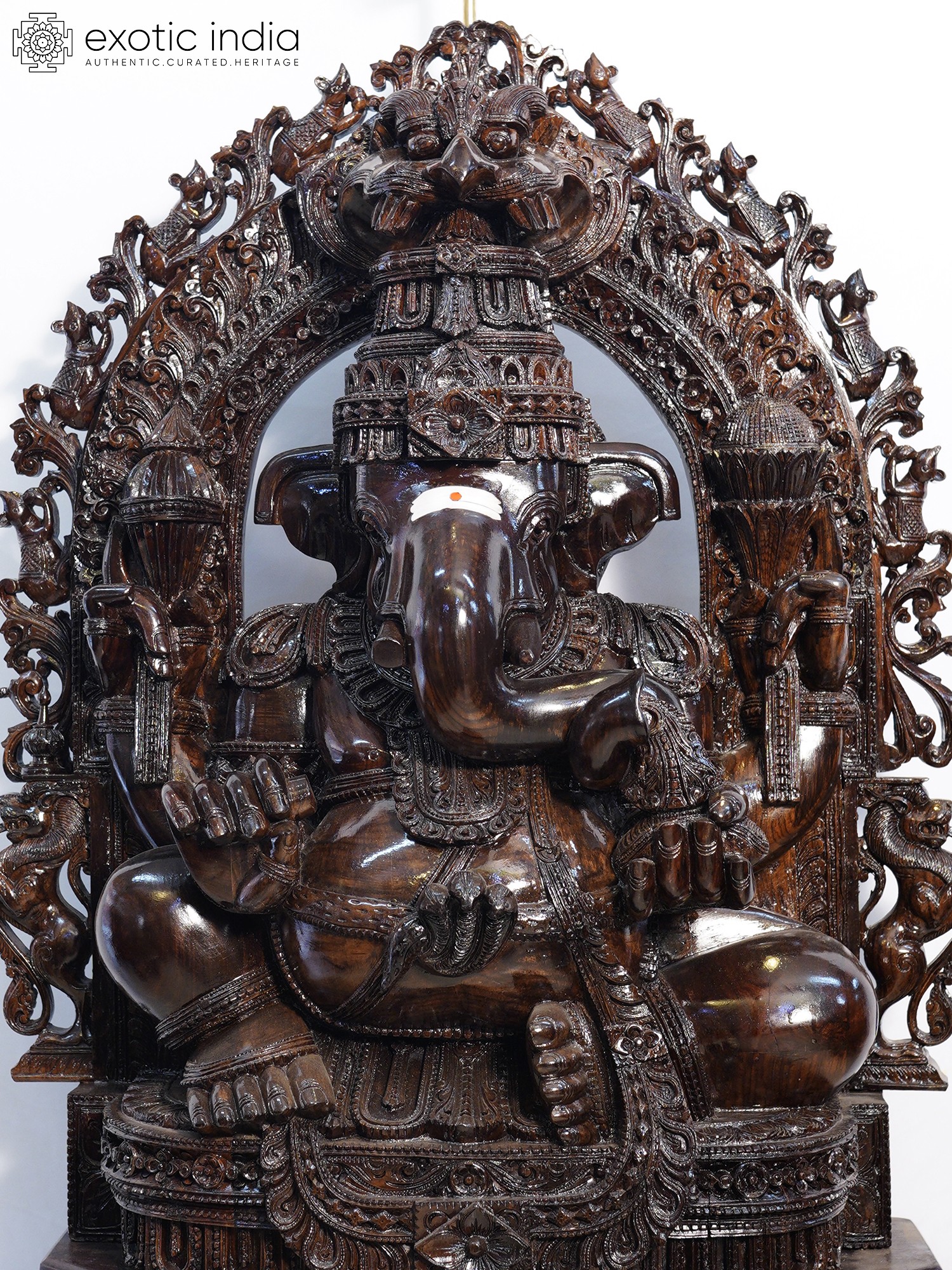 48" Trimukha Ganesha Seated on His Rat with Kirtimukha Arch