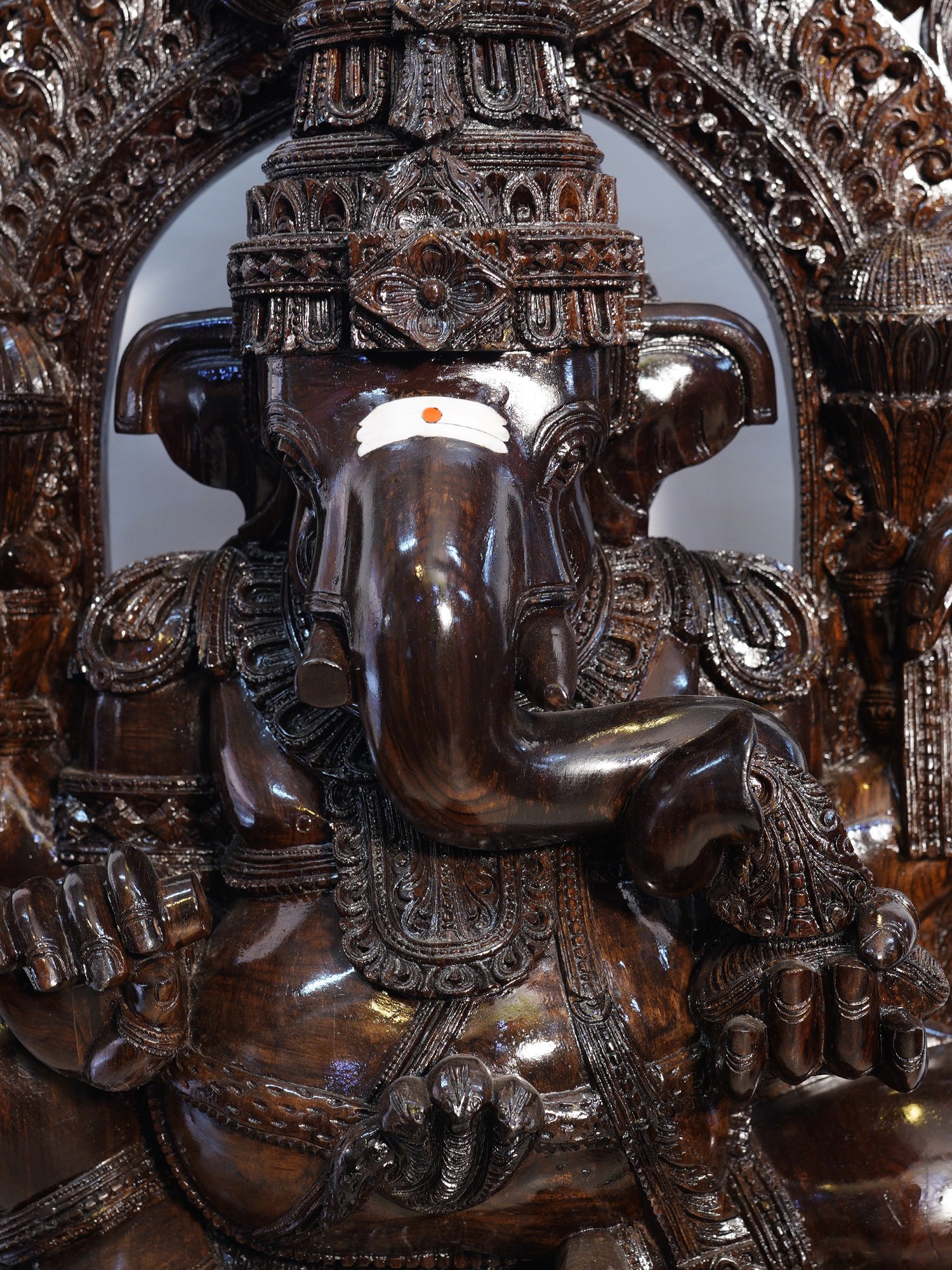 Large Size Lord Ganesha Wooden Statue Seated atop His Vahana