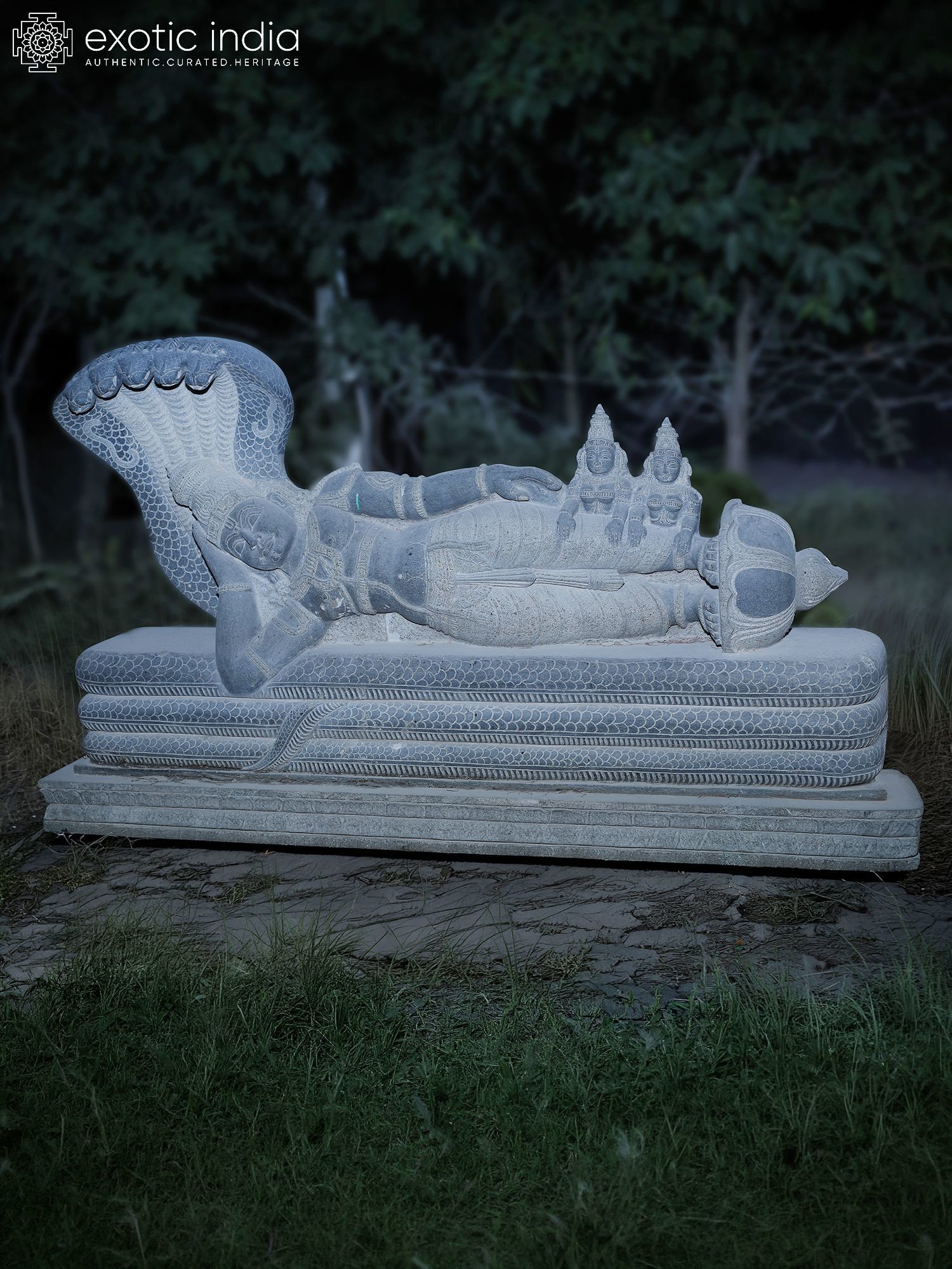 Features Lord Vishnu in his Ranganatha form, reclining on a cosmic serpent.