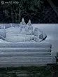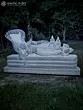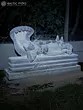 A substantial stone sculpture that embodies divine serenity and cosmic presence.