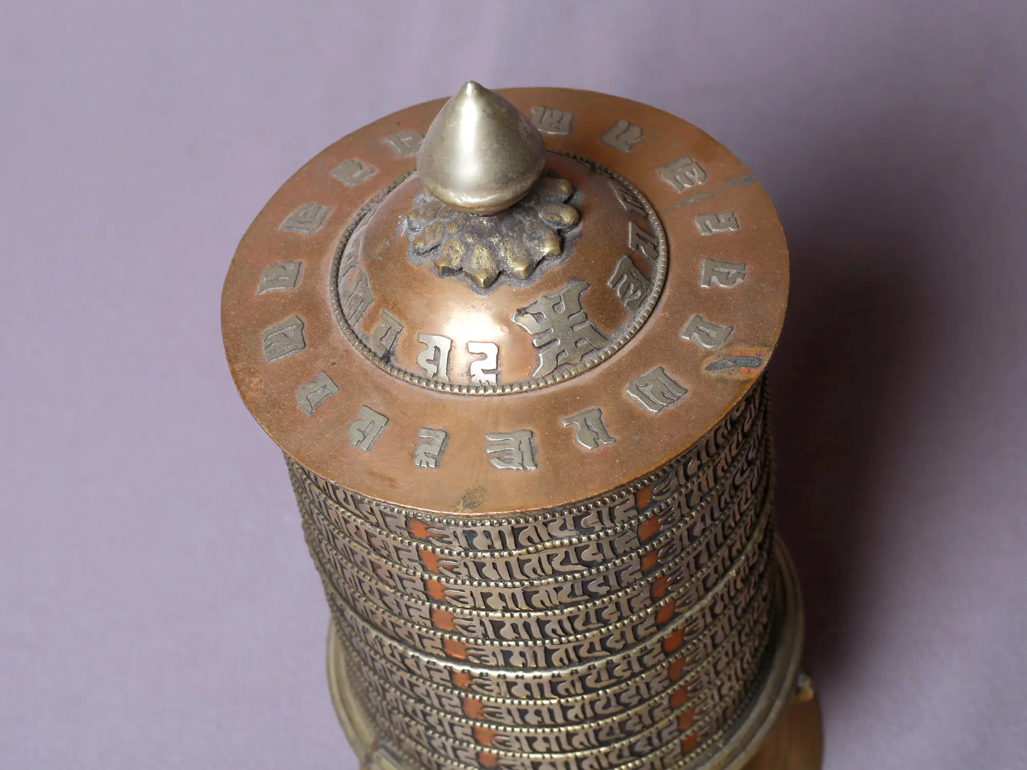 4" Small Tibetan Buddhist Prayer Wheel with Stone Work | Table Piece | Made in Nepal