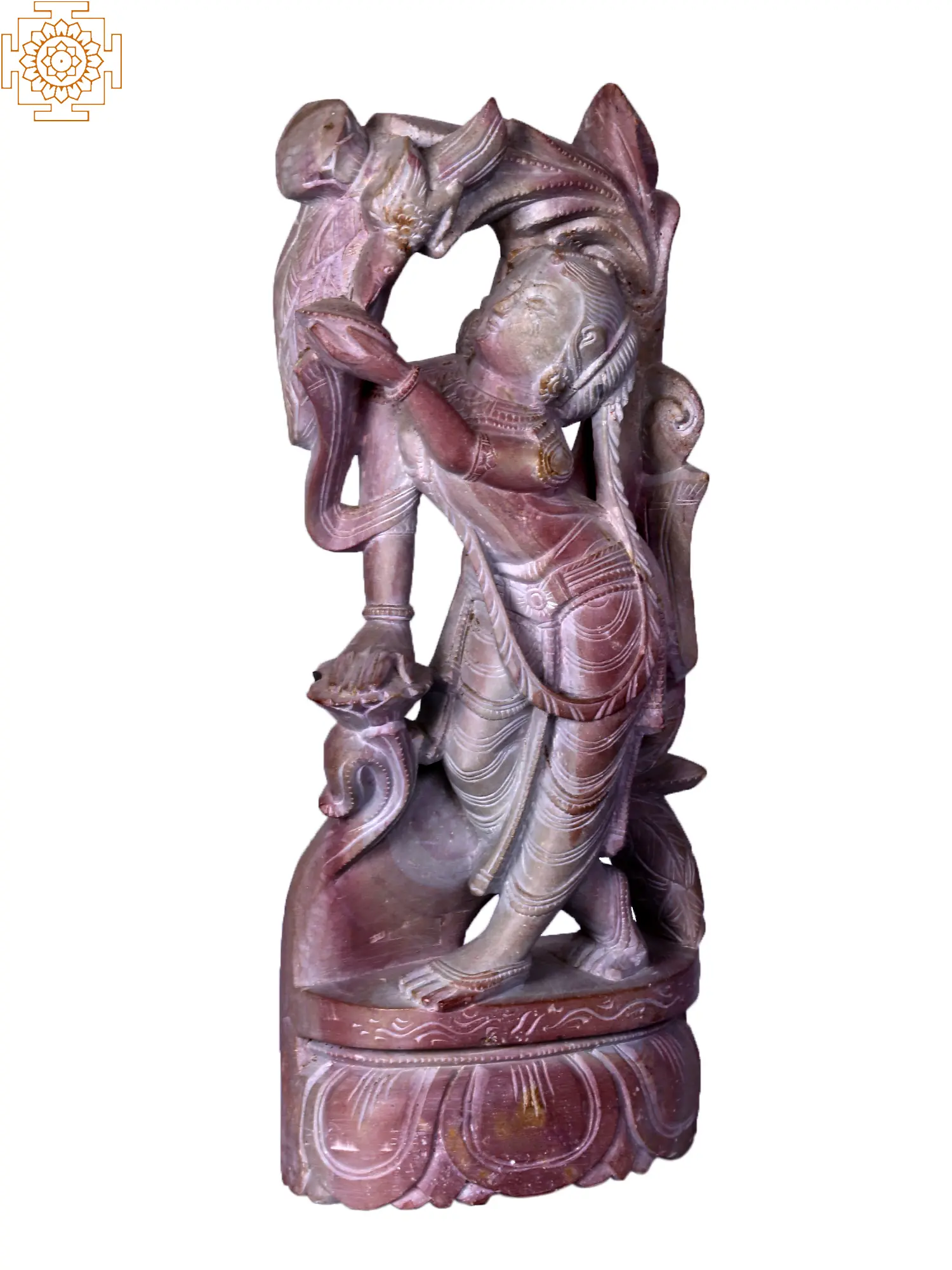 22" Seated Apsara in Namaskar Mudra | Granite Carved Stone Statue