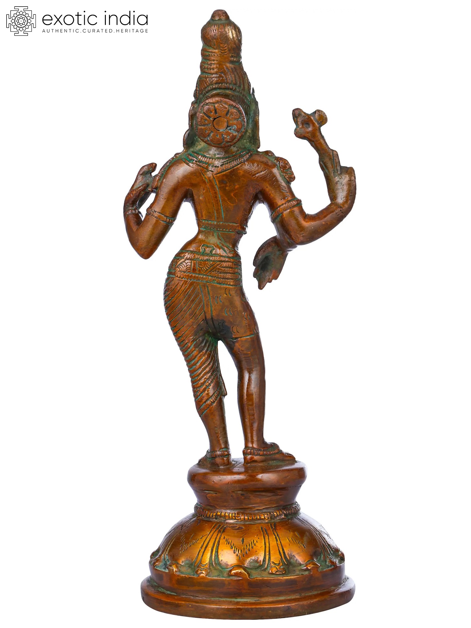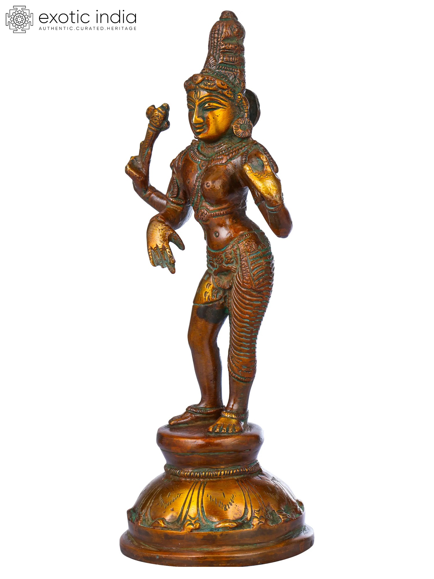 The feet rest on a gorgeously sculpted lotus that has been inverted to form a pedestal. This composition comes in a variety of finishes from natural and metallic to ones infused with colours, which have been done to suit wide-ranging spaces and moods. From the point of view of iconography, Ardharishvara stands for the undifferentiated identity of the two entities in question, and for the mutual complementariness of man and woman.