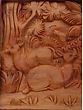 This piece showcases the rich artistic heritage of India's master woodcarvers. Crafted from premium sandalwood, a wood renowned for its fragrant aroma and luxurious texture, this artwork represents generations of inherited skill and meticulous craftsmanship. The deep, warm tones of the sandalwood, combined with the intricate detailing of the carving, reflect the dedication and artistry that has gone into its creation. The use of sandalwood itself is significant; it has long been prized in India for its spiritual significance and use in religious ceremonies and practices. Owning this piece allows you to bring a piece of this heritage into your home.