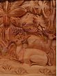 This exquisite 8" sandalwood carving depicts a serene scene of deers nestled within a lush jungle. The intricate detailing brings the scene to life, capturing the gentle grace of these creatures and the vibrancy of their natural habitat. The rich, warm tones of the sandalwood create an aura of peace and tranquility, making it a beautiful addition to any home or office. This piece is more than just a decorative item; it's a testament to the artistry and craftsmanship of skilled artisans who translate nature's beauty into timeless art. The deers, rendered with exquisite precision, evoke feelings of serenity and harmony with nature.