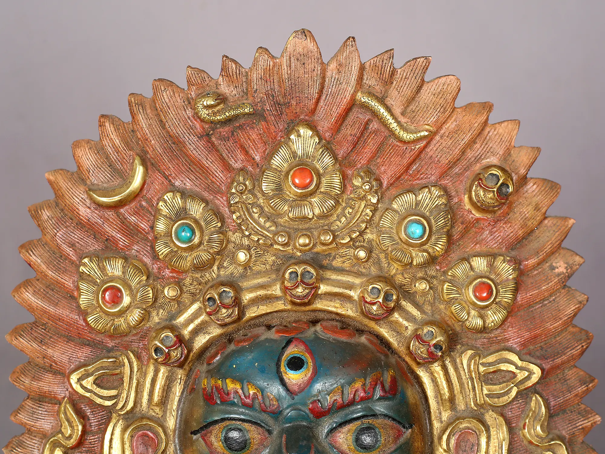 12" Bhairava Mask In Copper Wall Hanging | Handmade