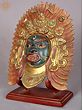 28'' Fierce Hindu God Crowned Bhairava Face From Nepal | Copper Gilded With Gold