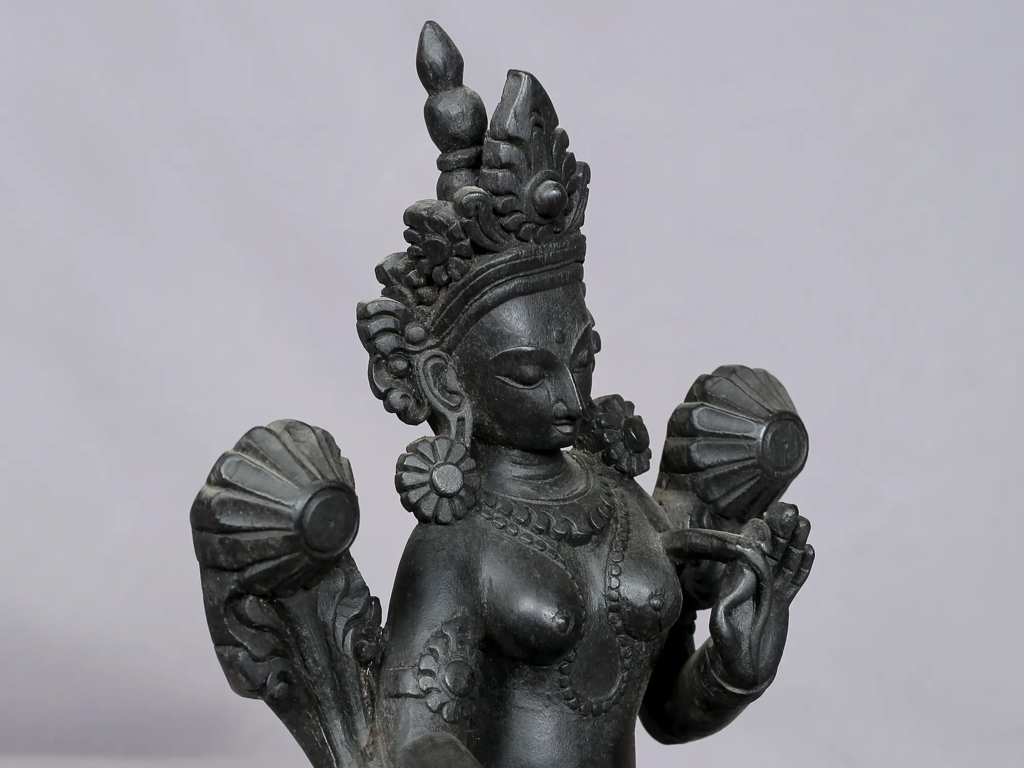 Sapta-Lochani Buddhist Goddess White Tara Wooden Sculpture