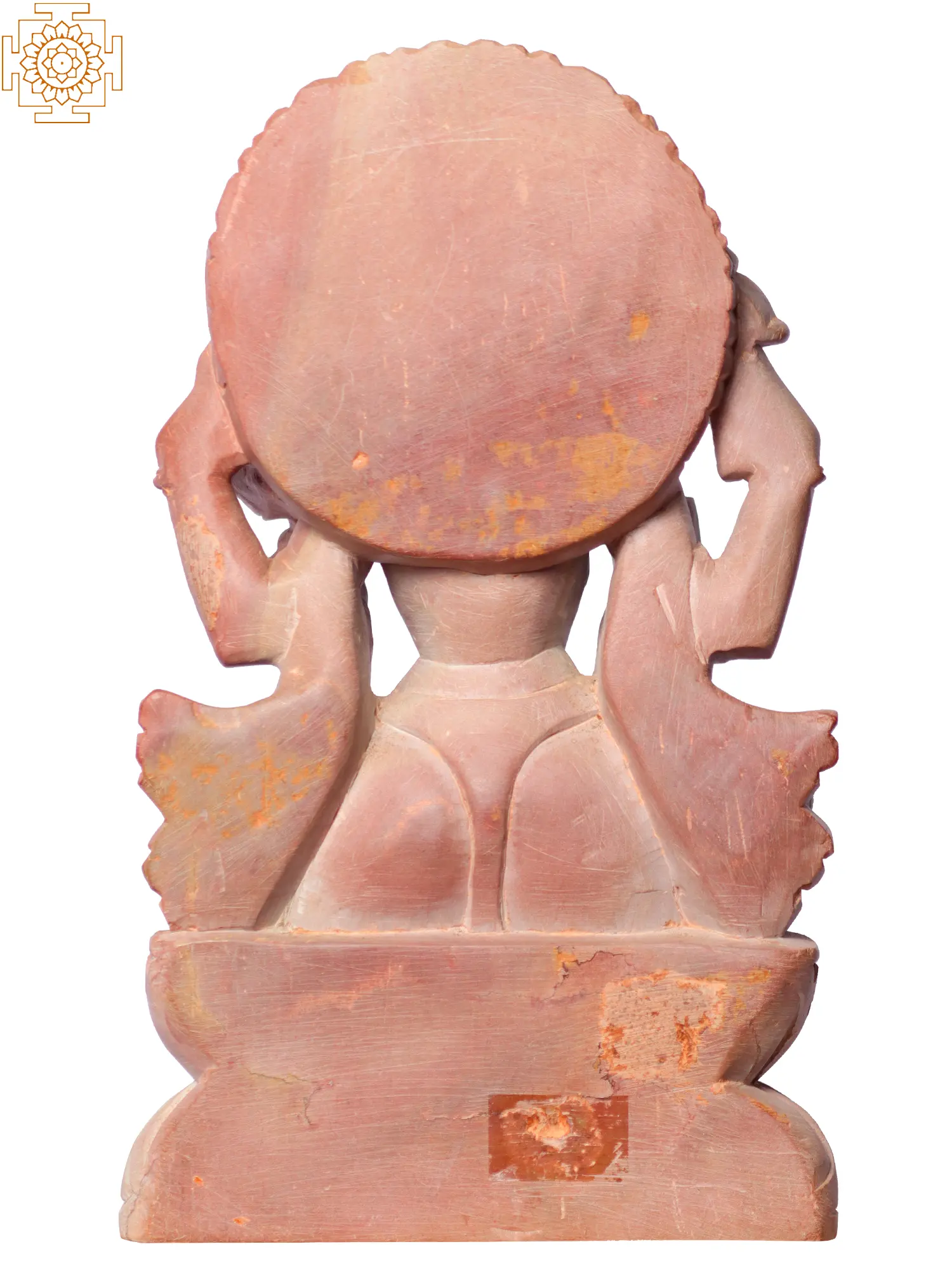 8" Goddess Saraswati Holding Veena | Red Stone Statue | Hand Carved