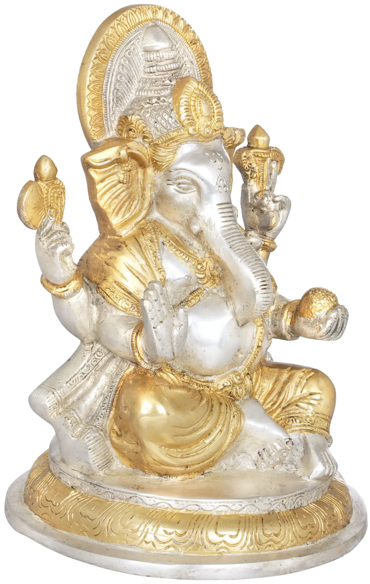 Invite the benevolent presence of Lord Ganesha, the remover of obstacles and the patron of arts and sciences, into your home or sacred space with this exquisite brass statue. Crafted with meticulous detail by skilled artisans in India, this piece is more than just an idol; it's a conduit for divine energy and a testament to the rich artistic heritage of the subcontinent. Ganesha, with his elephantine visage and pot belly, embodies wisdom, prosperity, and auspicious beginnings. He is revered as the god who overcomes hurdles, making him the ideal deity to invoke for success in any endeavor.