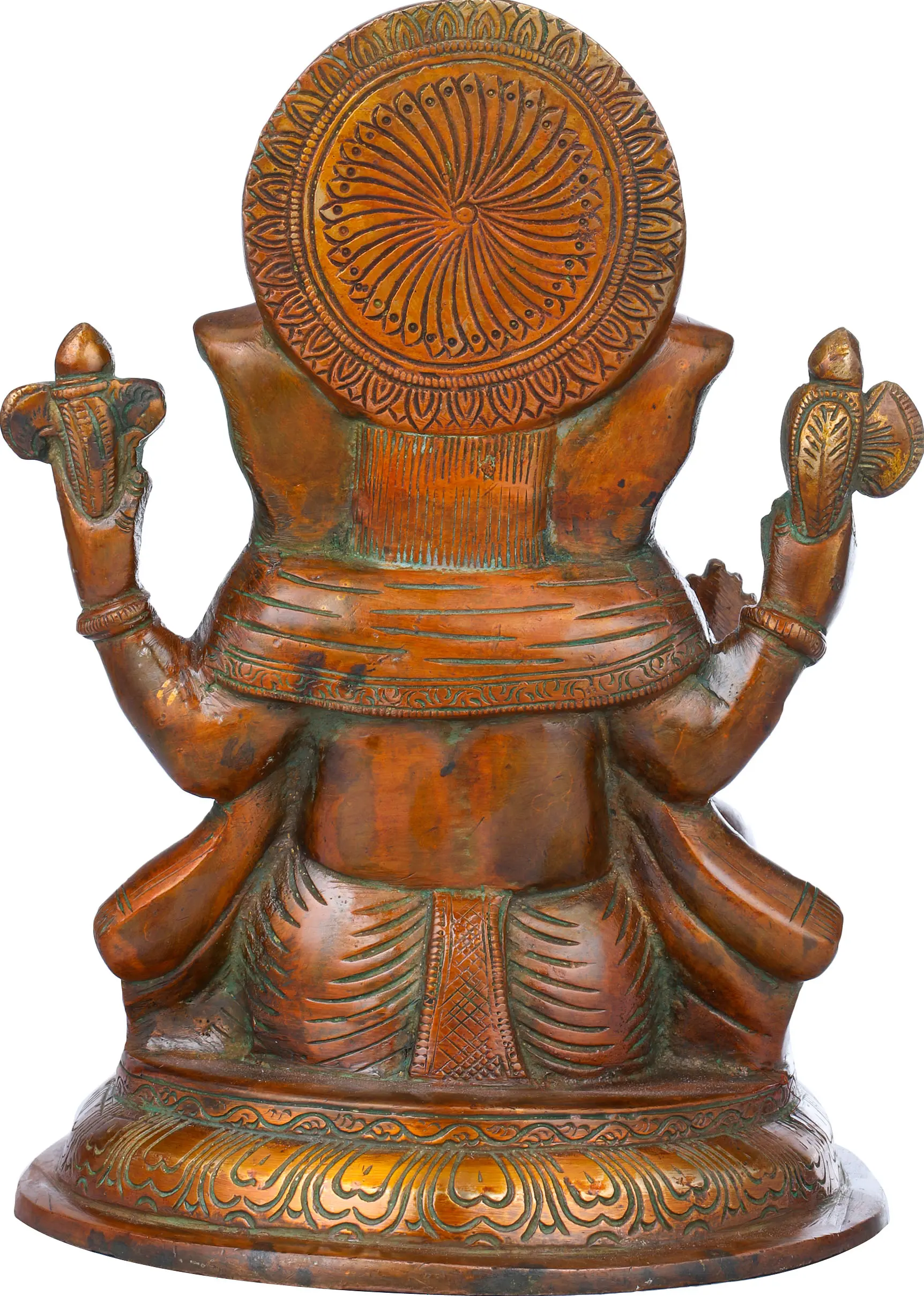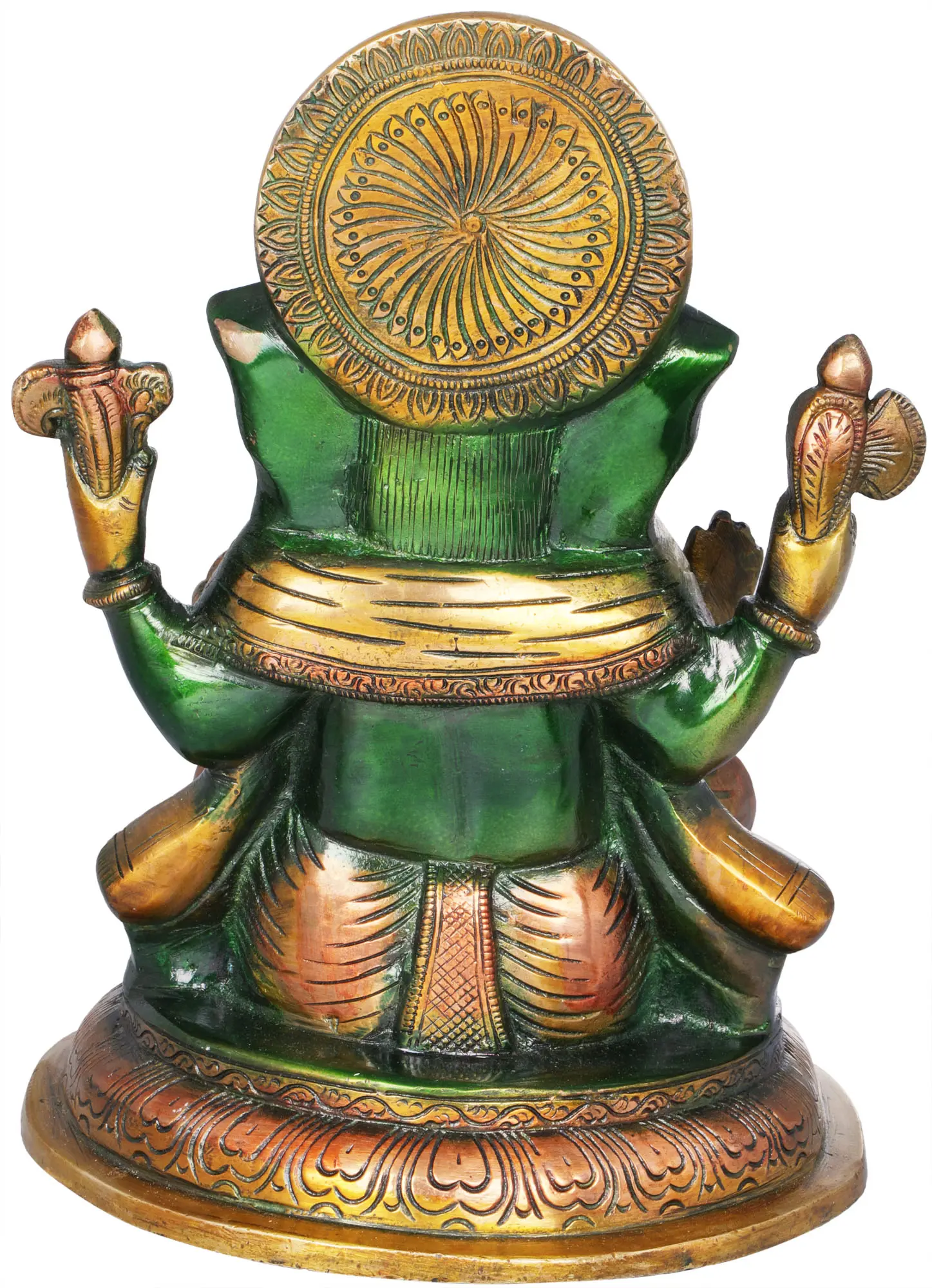 Each statue is meticulously handcrafted from high-quality brass, a metal revered for its purity and durability. The artisans have poured their skill and devotion into every curve and detail, from the intricate patterns on his crown and adornments to the gentle expression on his face. The striking blend of green and gold hues is achieved through a traditional patination process, giving the idol a unique and timeless appeal. This piece is a perfect embodiment of Indian craftsmanship, where art and spirituality intertwine seamlessly. Whether placed in your puja room, meditation corner, or as a statement piece in your living area, this Ganesha statue is sure to radiate positivity, wisdom, and good fortune. It also makes for an exceptional and meaningful gift for loved ones embarking on new journeys or seeking divine guidance.