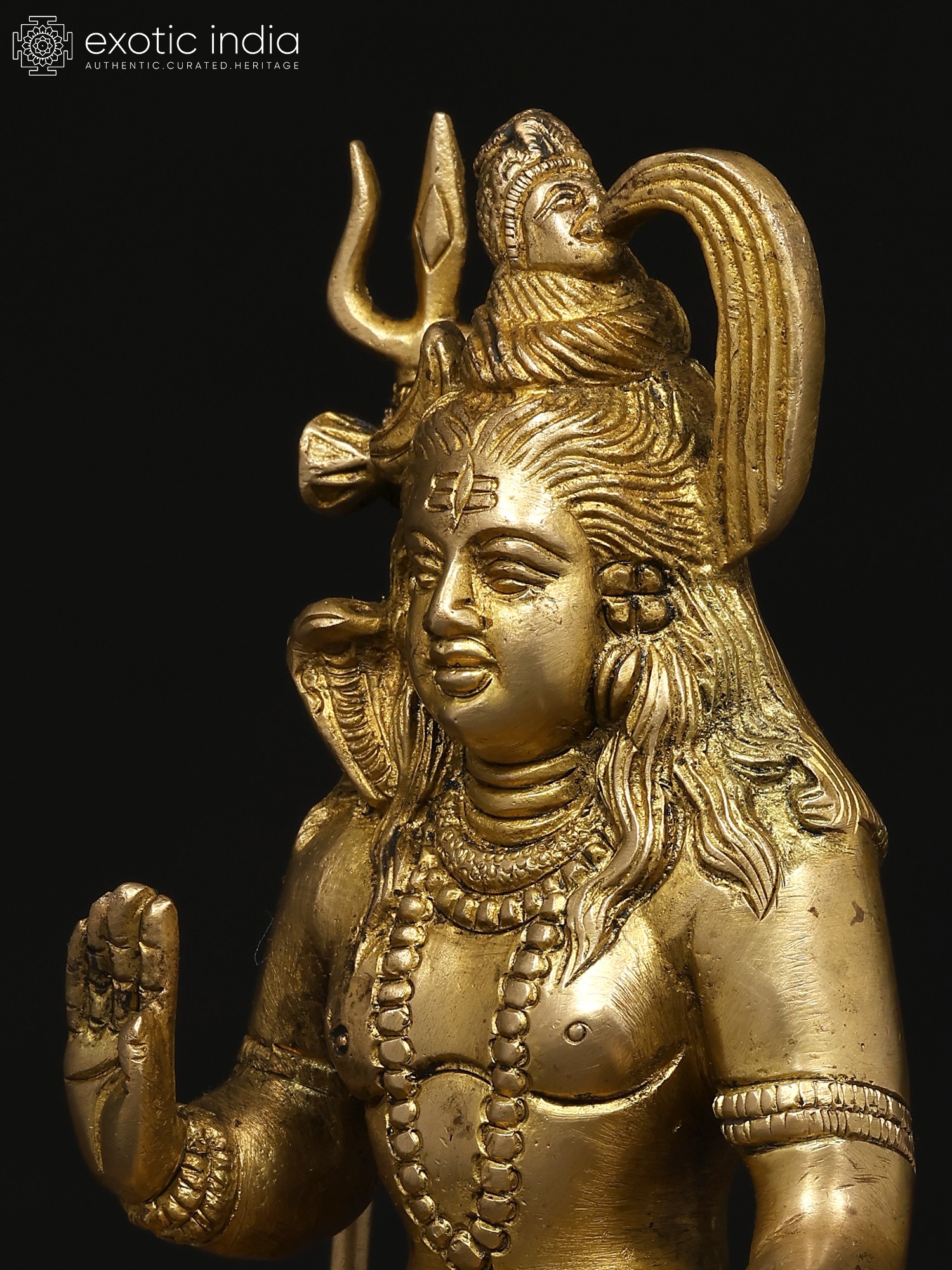 12" Standing Shiva Parvati Idol in Blessing Gesture | Set of Two Brass Statues