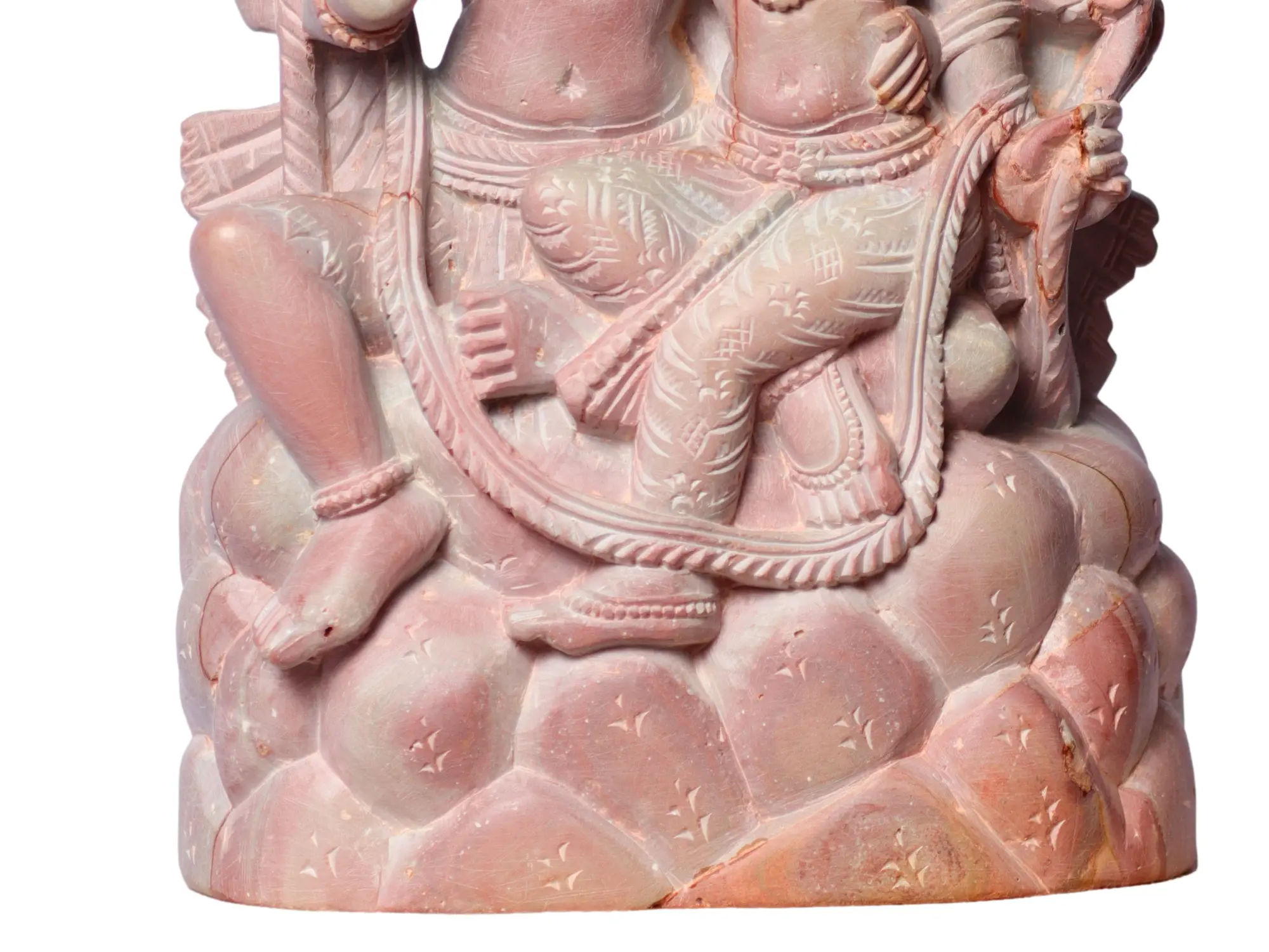 This magnificent piece originates from Odisha, a state in eastern India with a profound and ancient lineage of stone carving. The artisans of Odisha have been transforming raw stone into divine expressions for centuries, carrying forward a tradition deeply intertwined with the region's spiritual and cultural heritage. The pink stone itself, often sourced from local quarries, possesses a unique warmth and texture that lends itself beautifully to intricate carvings. The style of carving seen in this statue reflects the distinctive artistic conventions of Odisha, known for its graceful figures, elaborate ornamentation, and a sense of inherent divinity. Each stroke of the chisel is imbued with devotion and skill, passed down through generations of master craftsmen. This statue is not merely a decorative item; it is a tangible piece of living history, a connection to the artistic soul of a land where devotion and artistry are one.