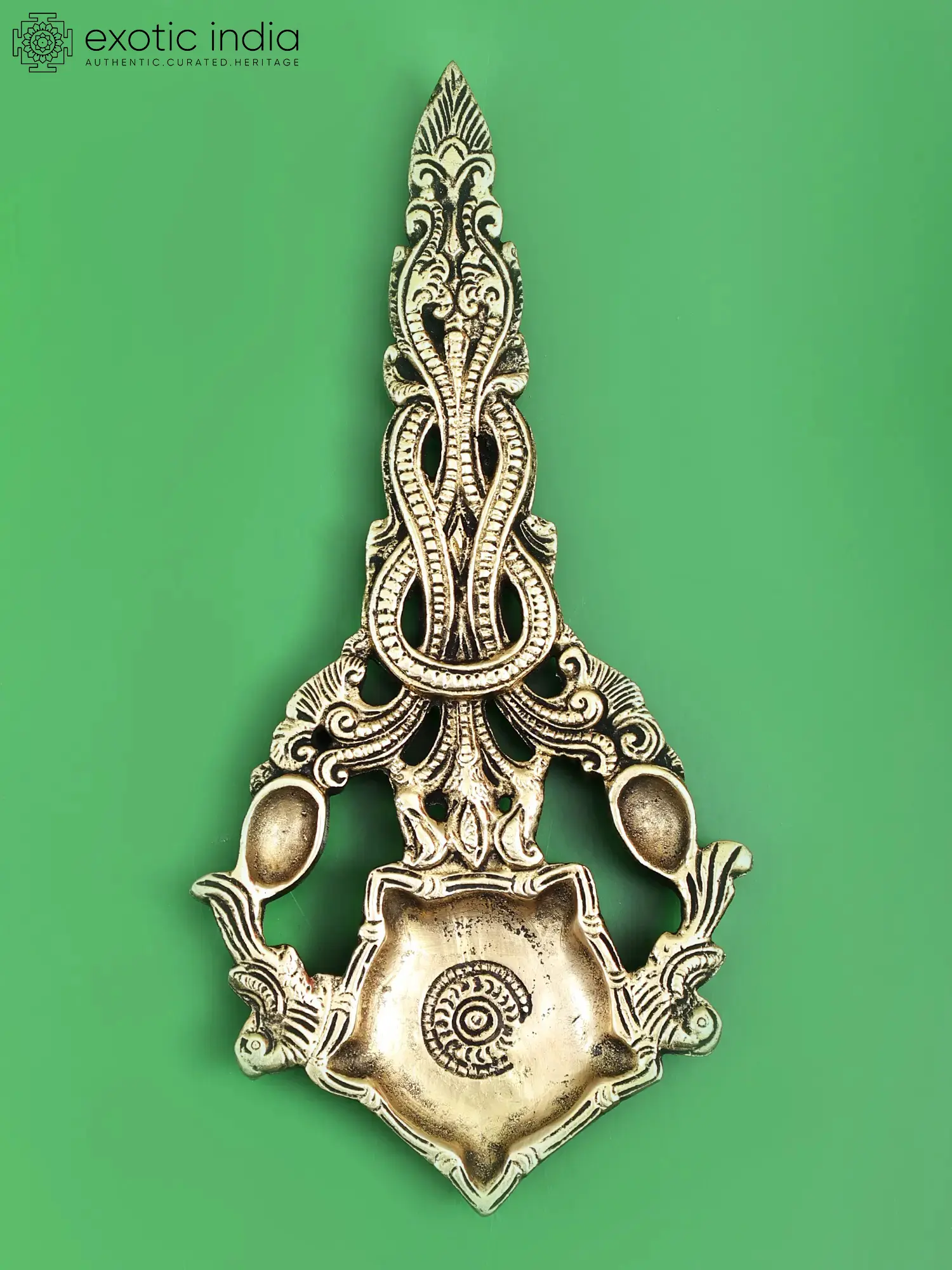 The Salabhanjika and Madanika sculptures of Belur's Chennakesava temples have impacted millions of works of art throughout the world. The handle of this wonderful lamp, which was inspired by art, features a theme of coiled vines. The peaceful and relaxing light of a single wick lamp is provided to the deities by this hand-held brass Aarti Diya. The Diya is made of brass, a costly metal that lends weight to the event. Because of the combination of a metal container and a solid grip, the devotee may give devotion comfortably. Incorporating this component into daily worship sessions will help to guarantee that the respect process works properly.