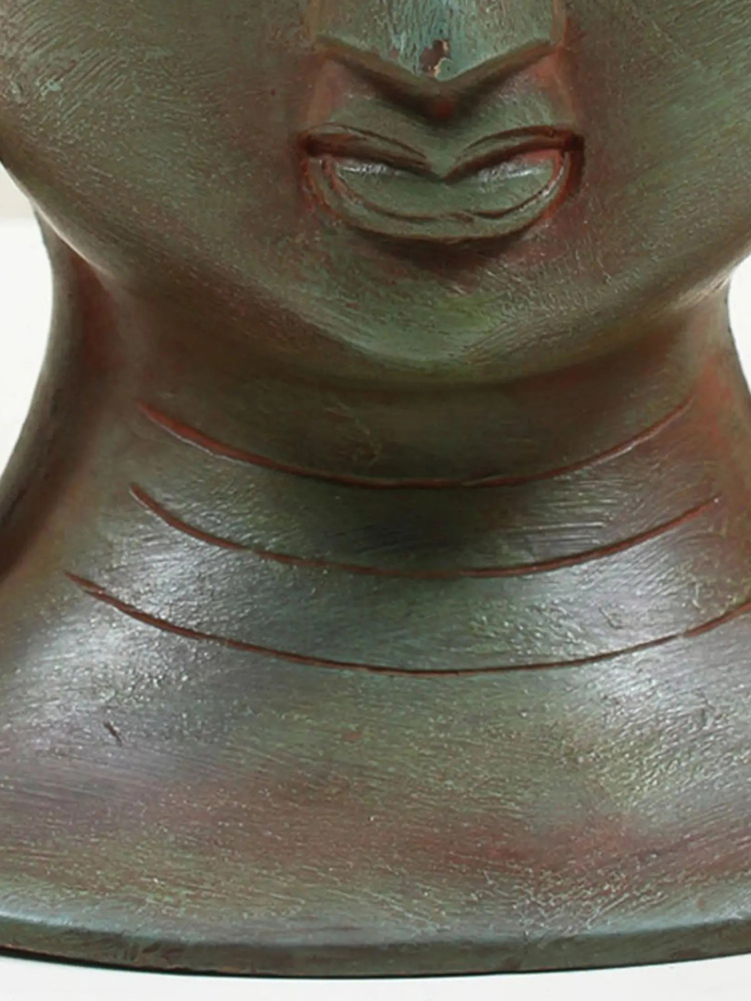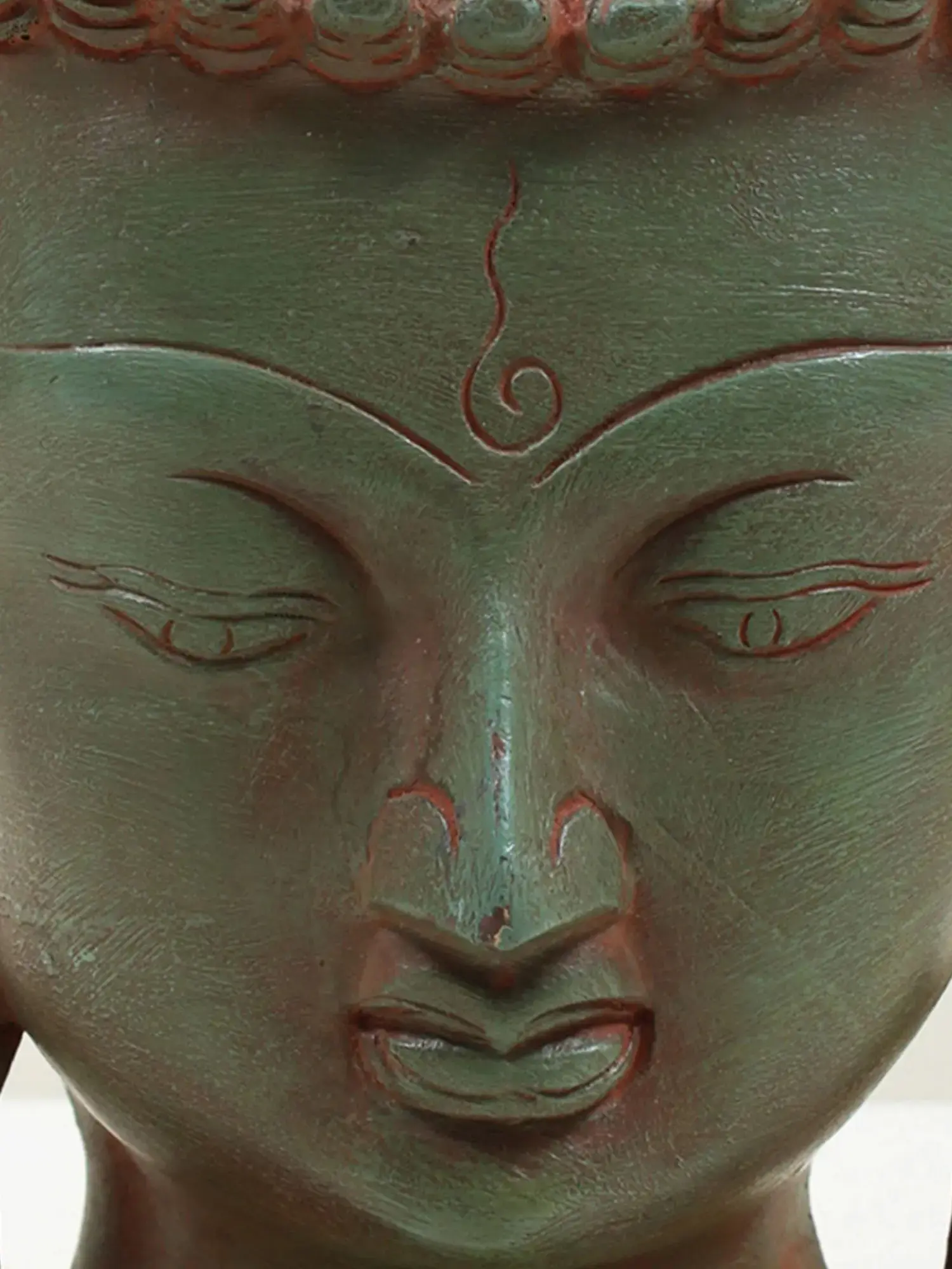 Crafted from brass, the hanging Buddha Head is a remarkable art piece that emanates a profound sense of tranquility. This sculpture encapsulates the essence of serenity and spiritual calmness, making it a captivating addition to any space. The brass material not only ensures durability but also carries symbolic significance in Buddhist culture, representing strength and devotion. The Buddha's expression, with closed eyes and a serene smile, exudes an inner peace that resonates deeply.