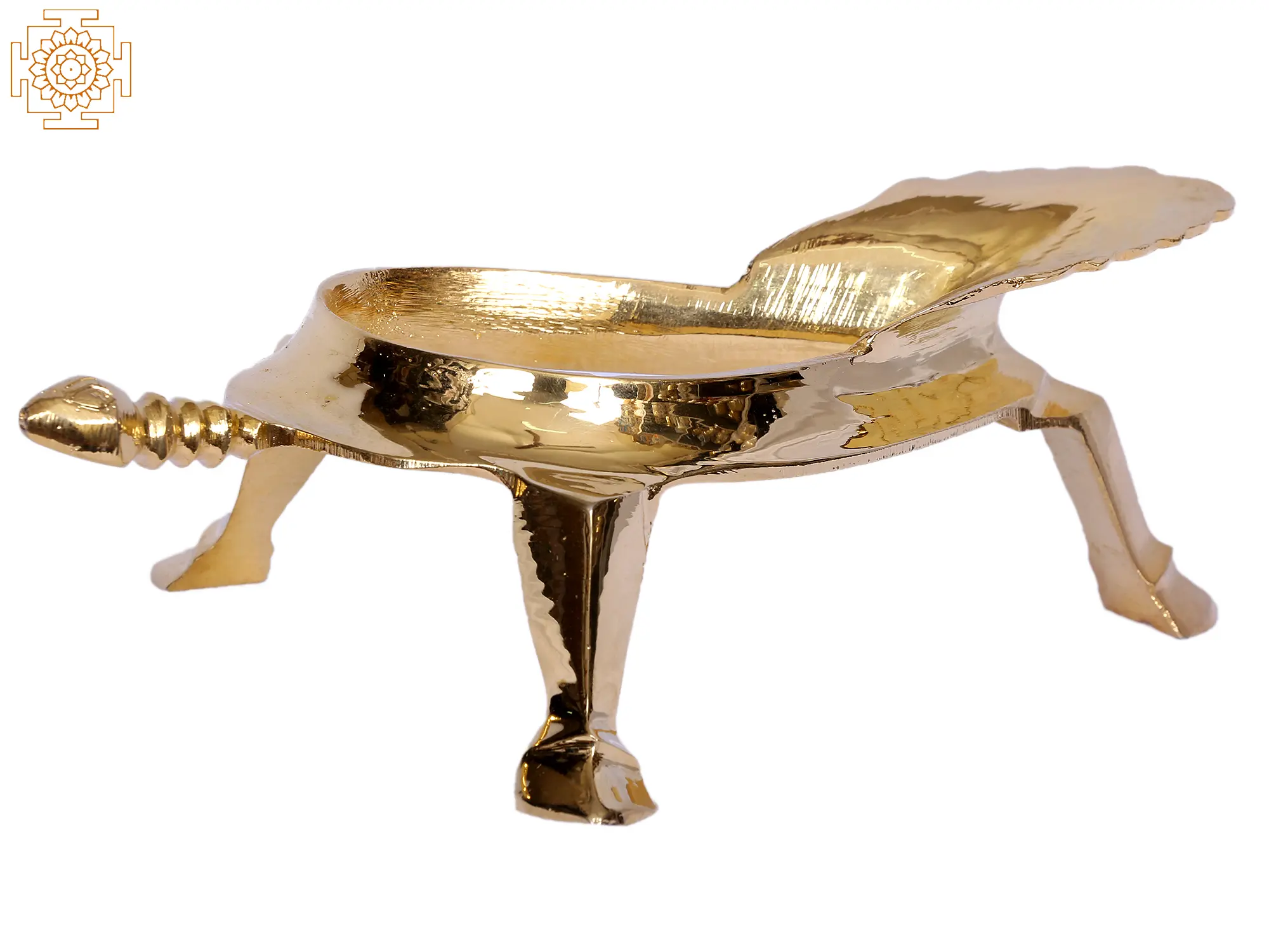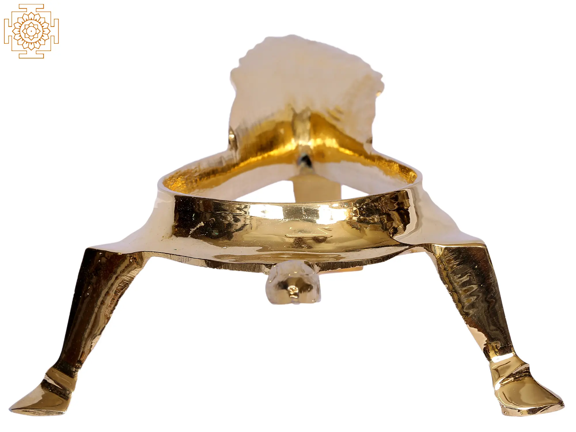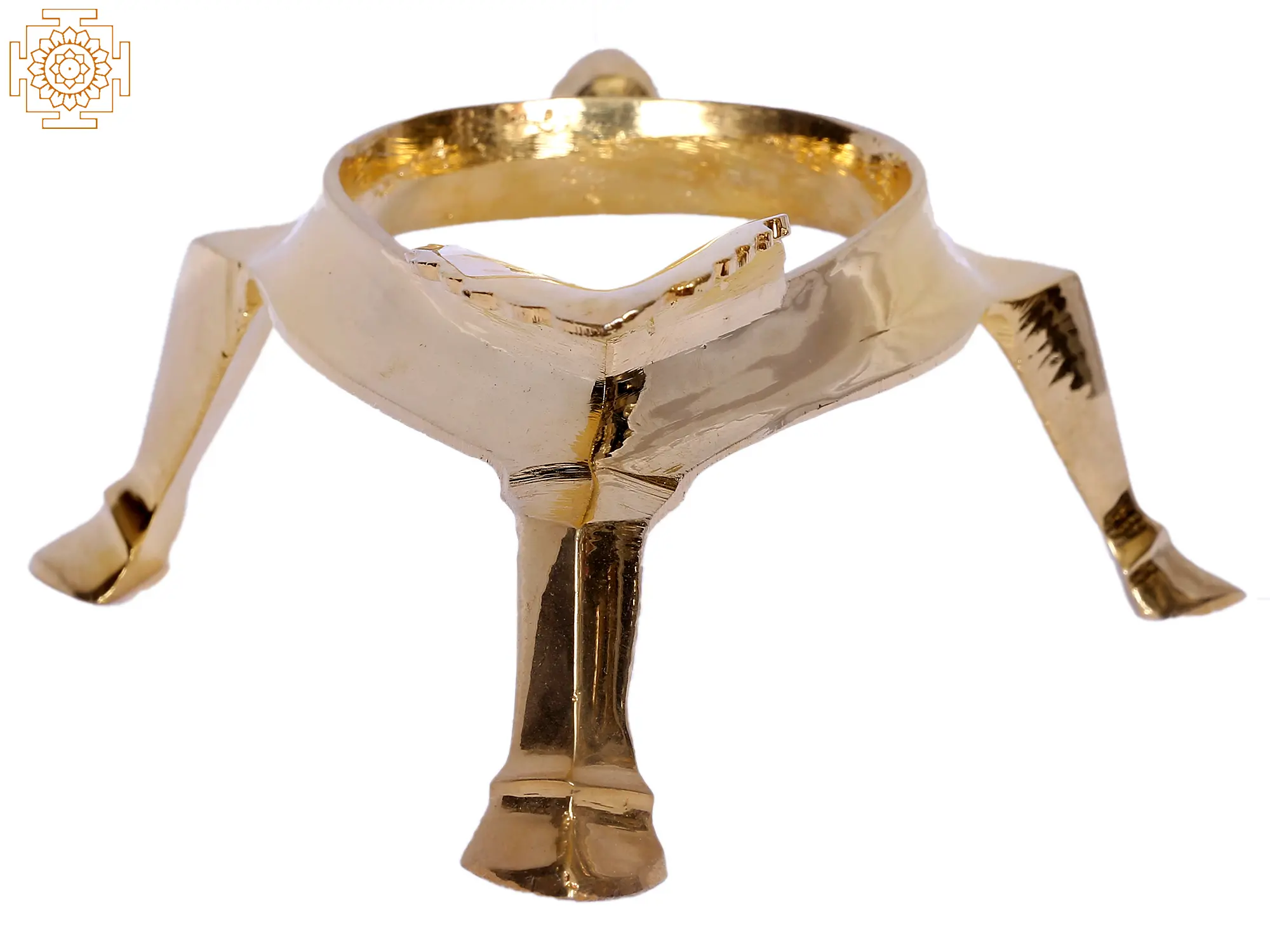 This brass Shankha stand is designed to hold the Shankh or holy conch. It comes with a hollow body balanced on three stands. The Shankha is spiritually significant. It is one of Lord Vishnu's powerful weapons. It is also revered as a sin cleanser and the home of Lakshmi, the goddess of riches and Vishnu's spouse. This Shankha stand may hold a variety of Shankhs and should be placed at the home's east corner with the Shankha residing on it. In certain rites, the Shankha is filled with water and held on the stand to prevent the holy water from overflowing.