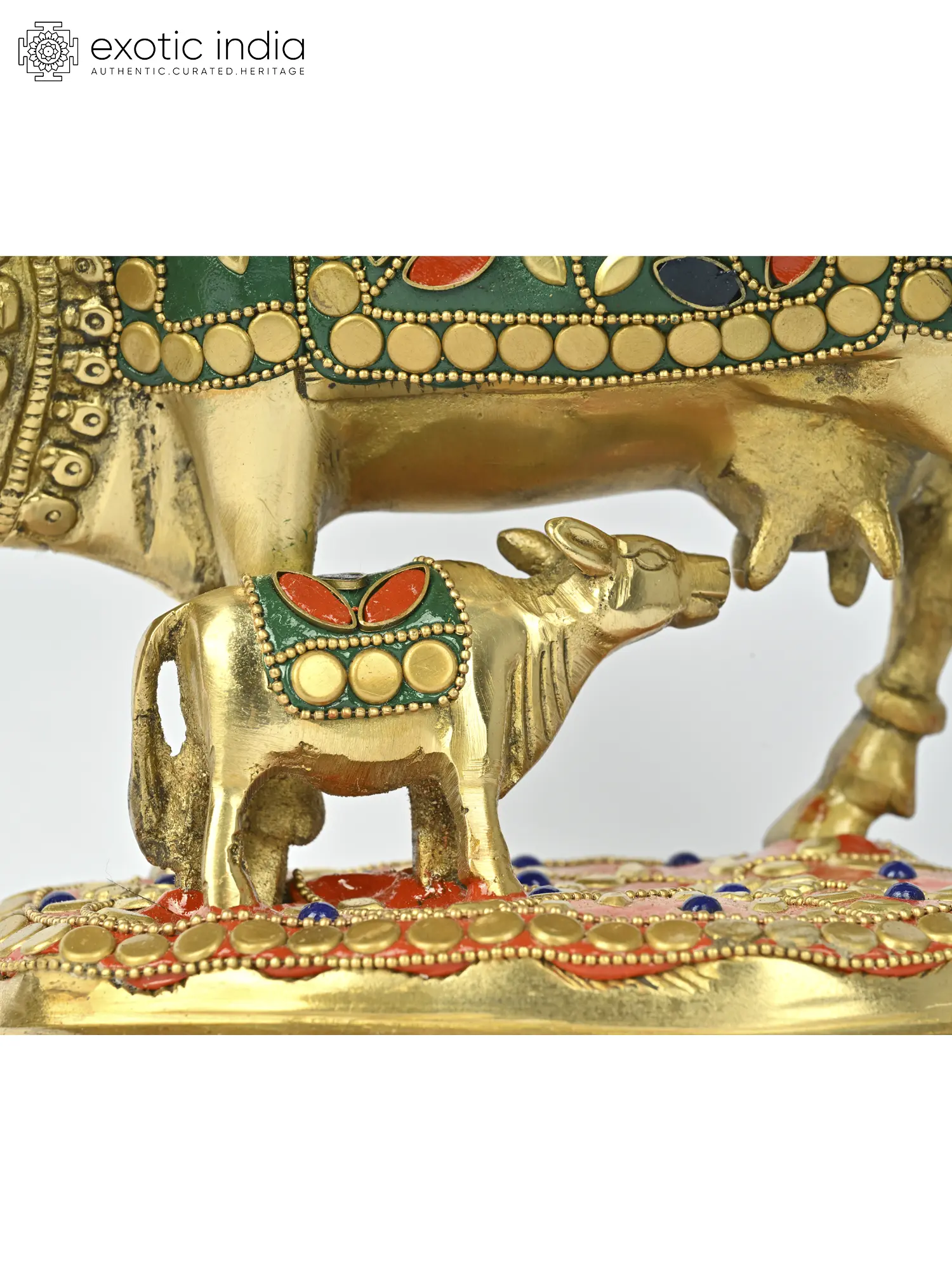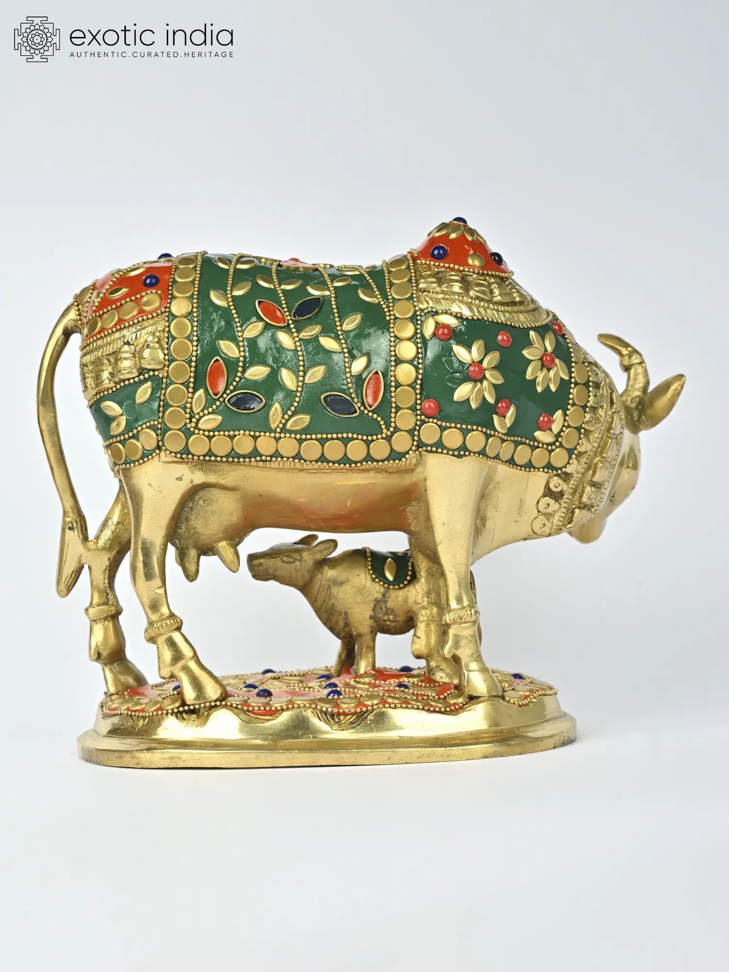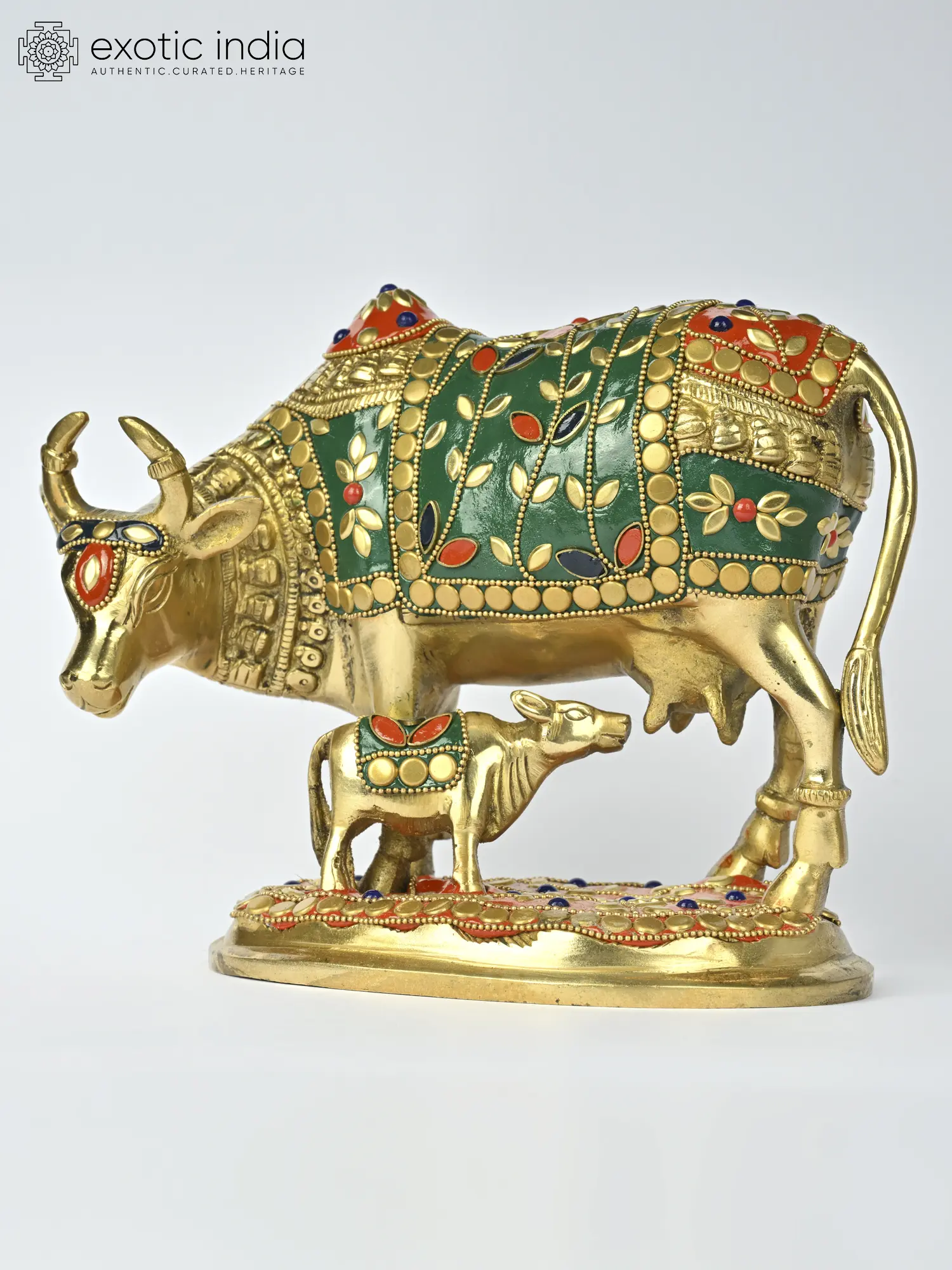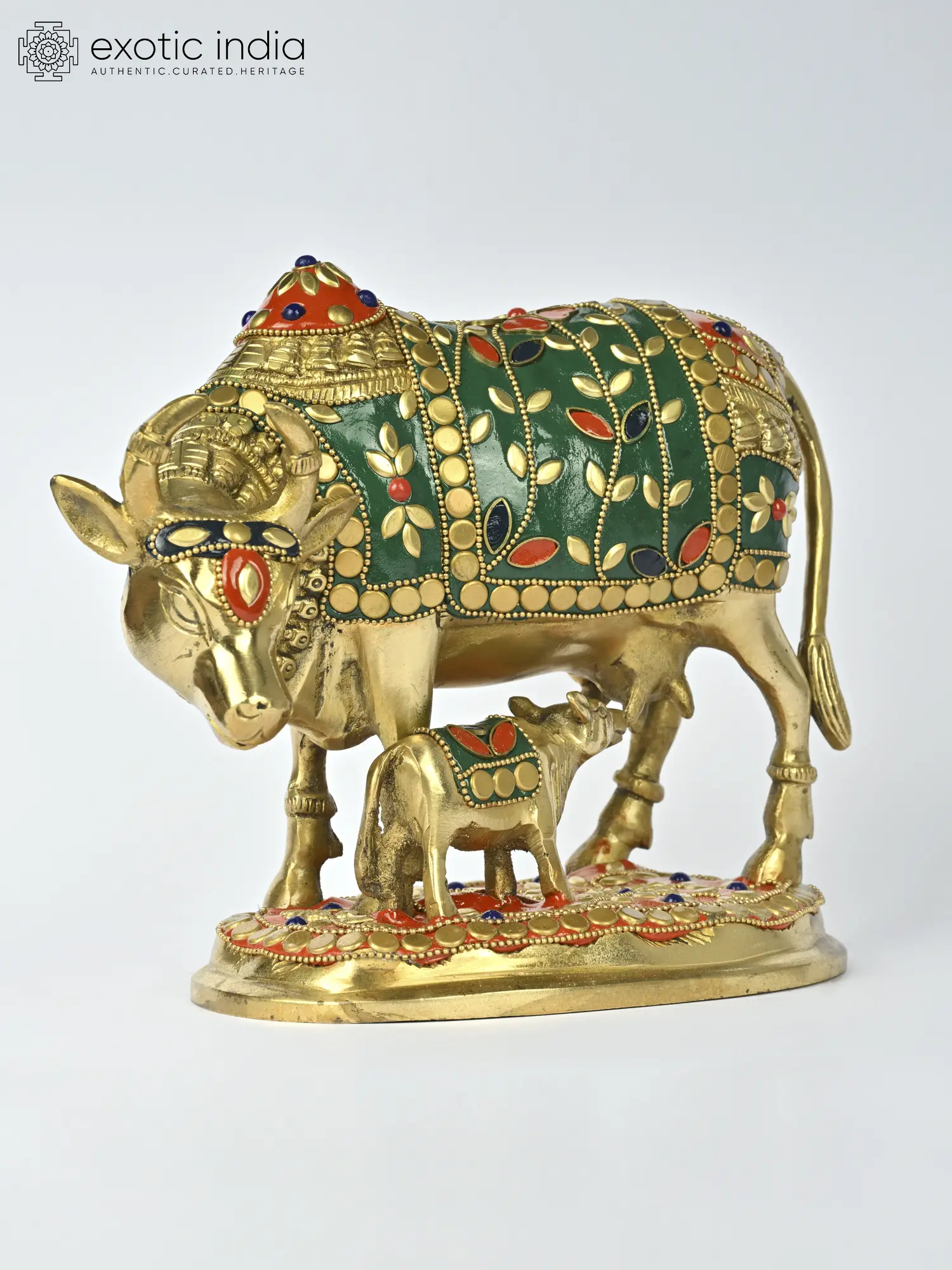 In Vaastu, Kamadhenu with her calf is revered as a symbol of abundance, prosperity, and good fortune. This brass statue captures the divine essence of this sacred pair.