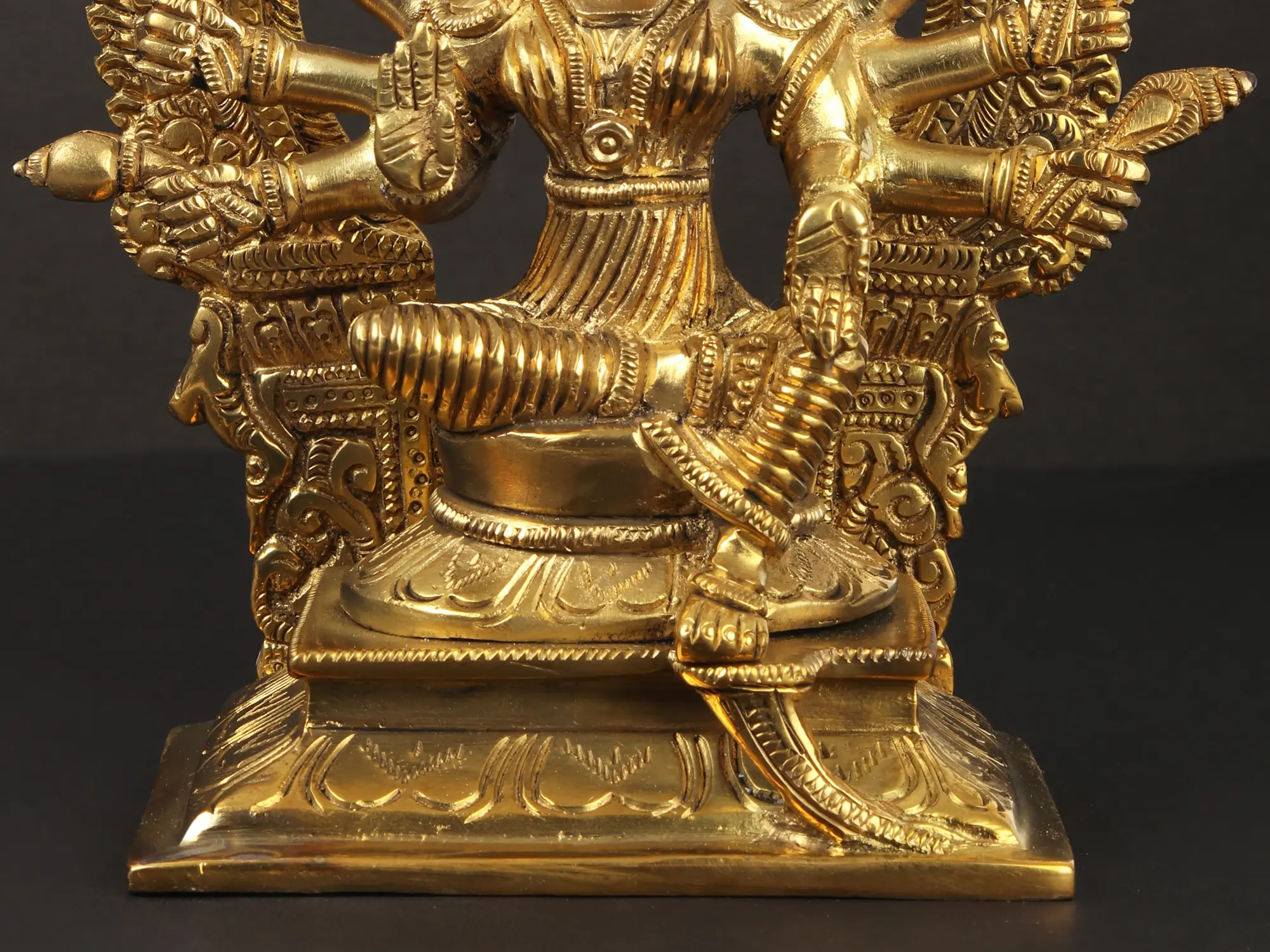 Discover the embodiment of divine feminine strength with this Handmade Brass Ashtabhuja Goddess Varahi. This unique sculpture, crafted with care, showcases the power and grace of the goddess. Goddess Varahi, an incarnation of Devi, is revered for her protection and the power to overcome obstacles. Her "Ashtabhuja" or eight-armed form symbolizes her capacity to multitask, reinforcing the concept of Shakti, the divine cosmic energy. This brass idol serves as a visual representation of the interconnectedness of strength and grace. Having Goddess Varahi in your sacred space ensures not just divine protection but also the balance of power and compassion, echoing the core tenets of Shakta Pujan.